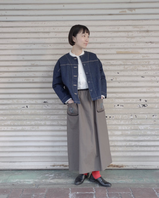 Linen/Polyester double cocoon no collar ジャケット | yuni