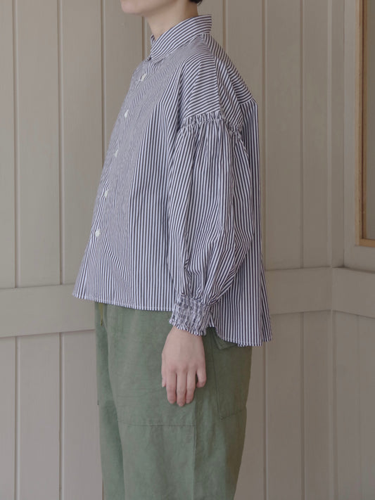 コットンシルク ストライプ moe sleeves バックリボン シャツ | yuni