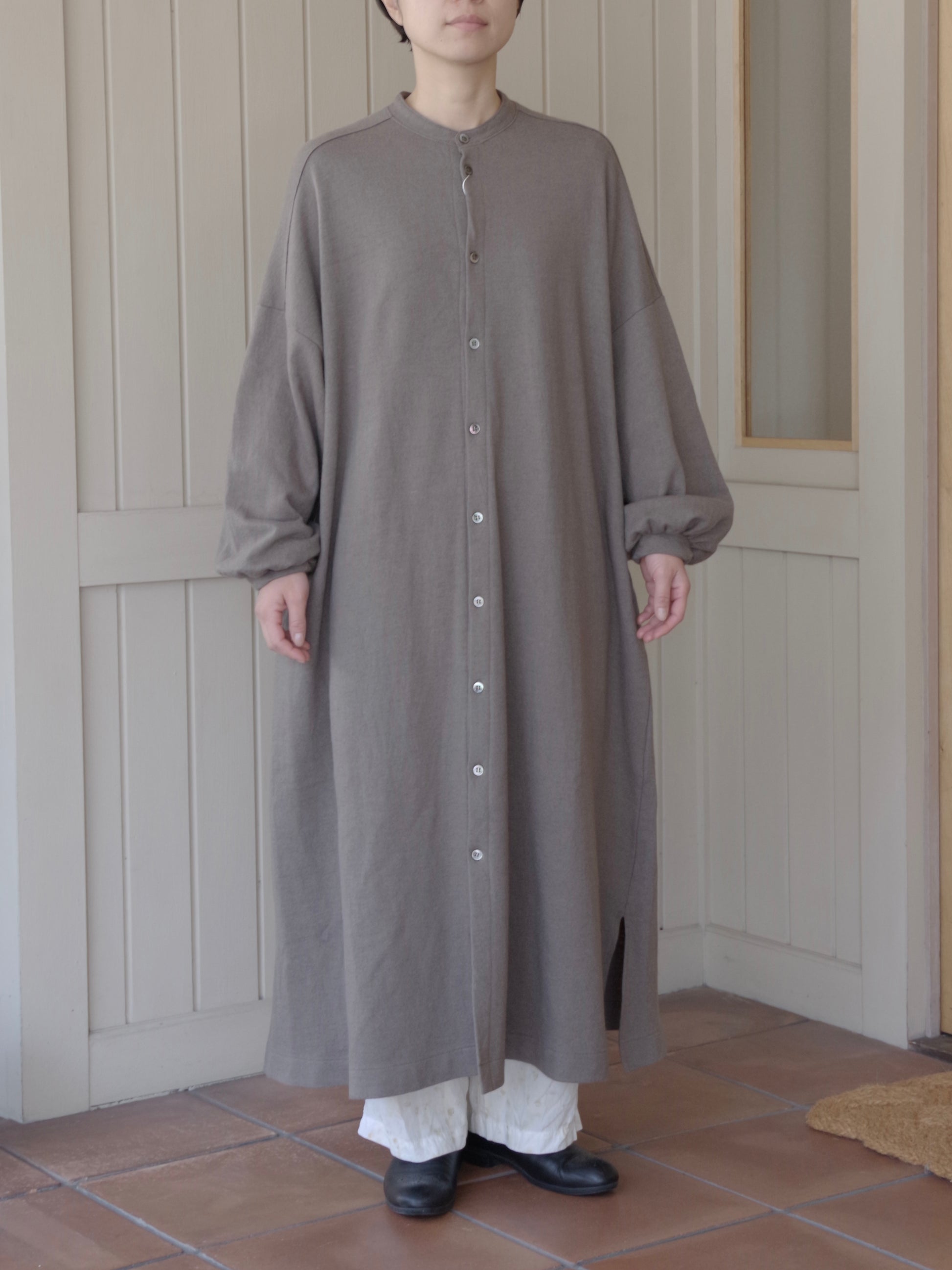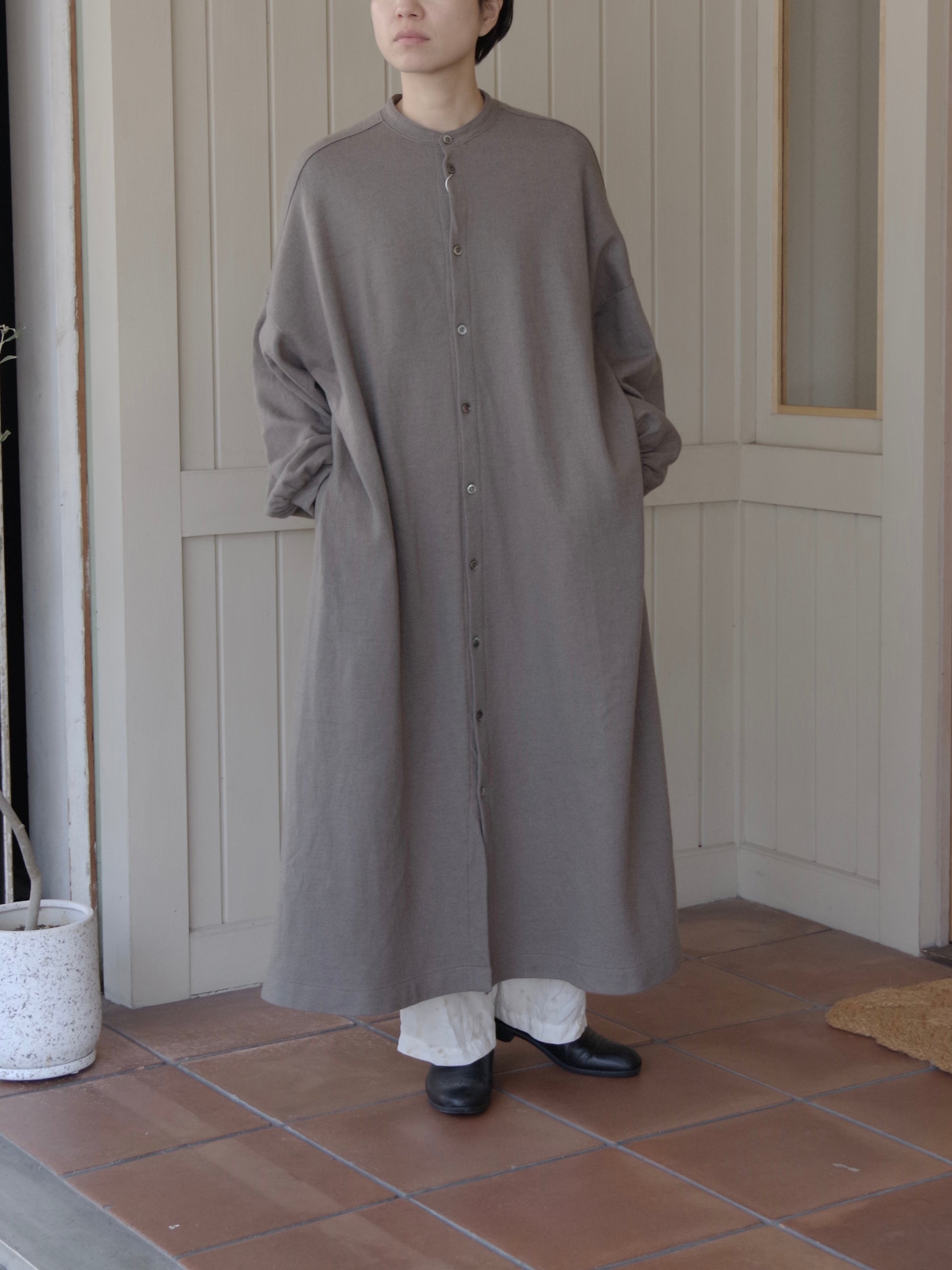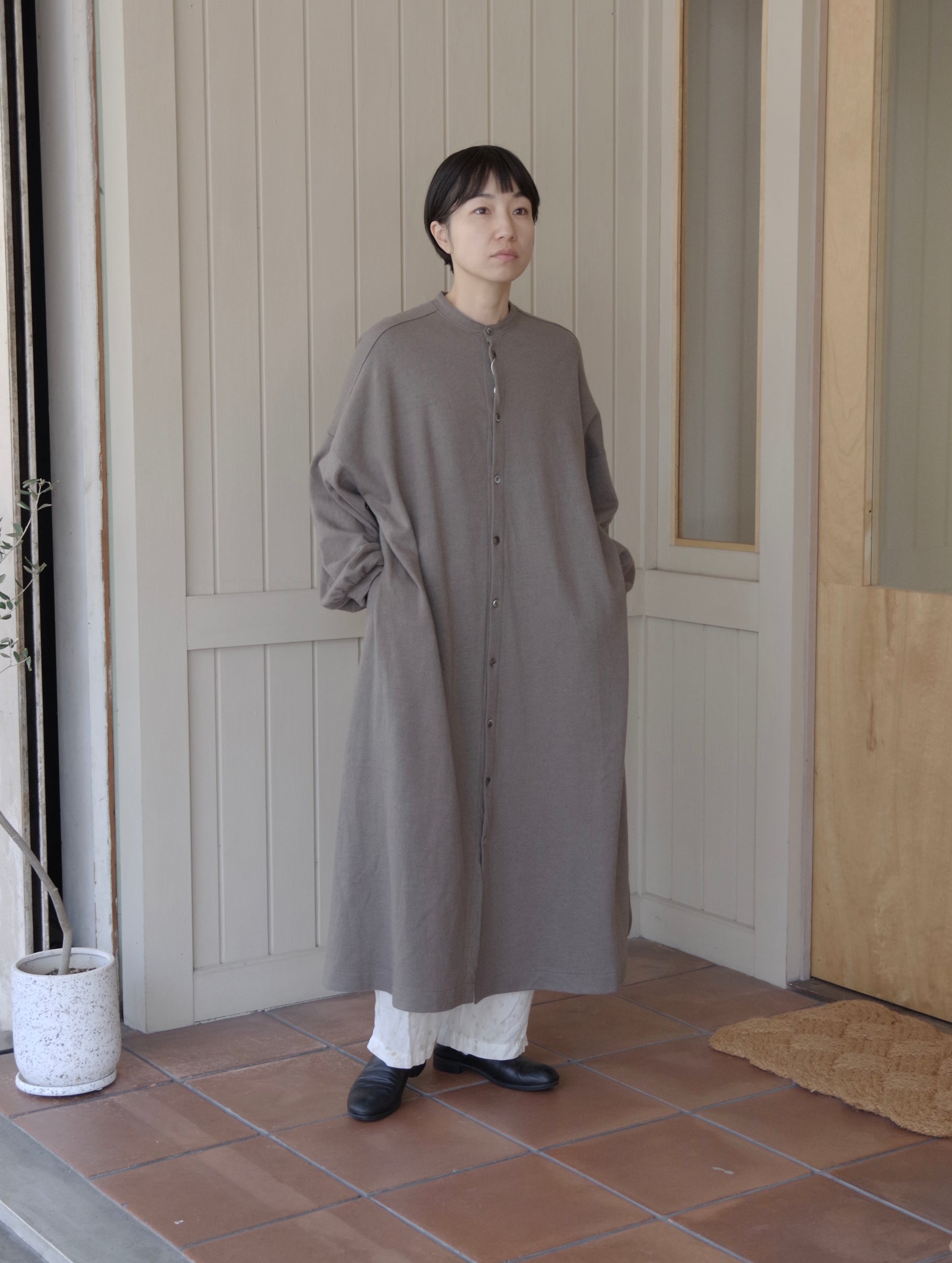 重ね着もしやすくあたたかなワンピースは、ボタンを開けてコートのように羽織るアイテムとしても着ていただけます。