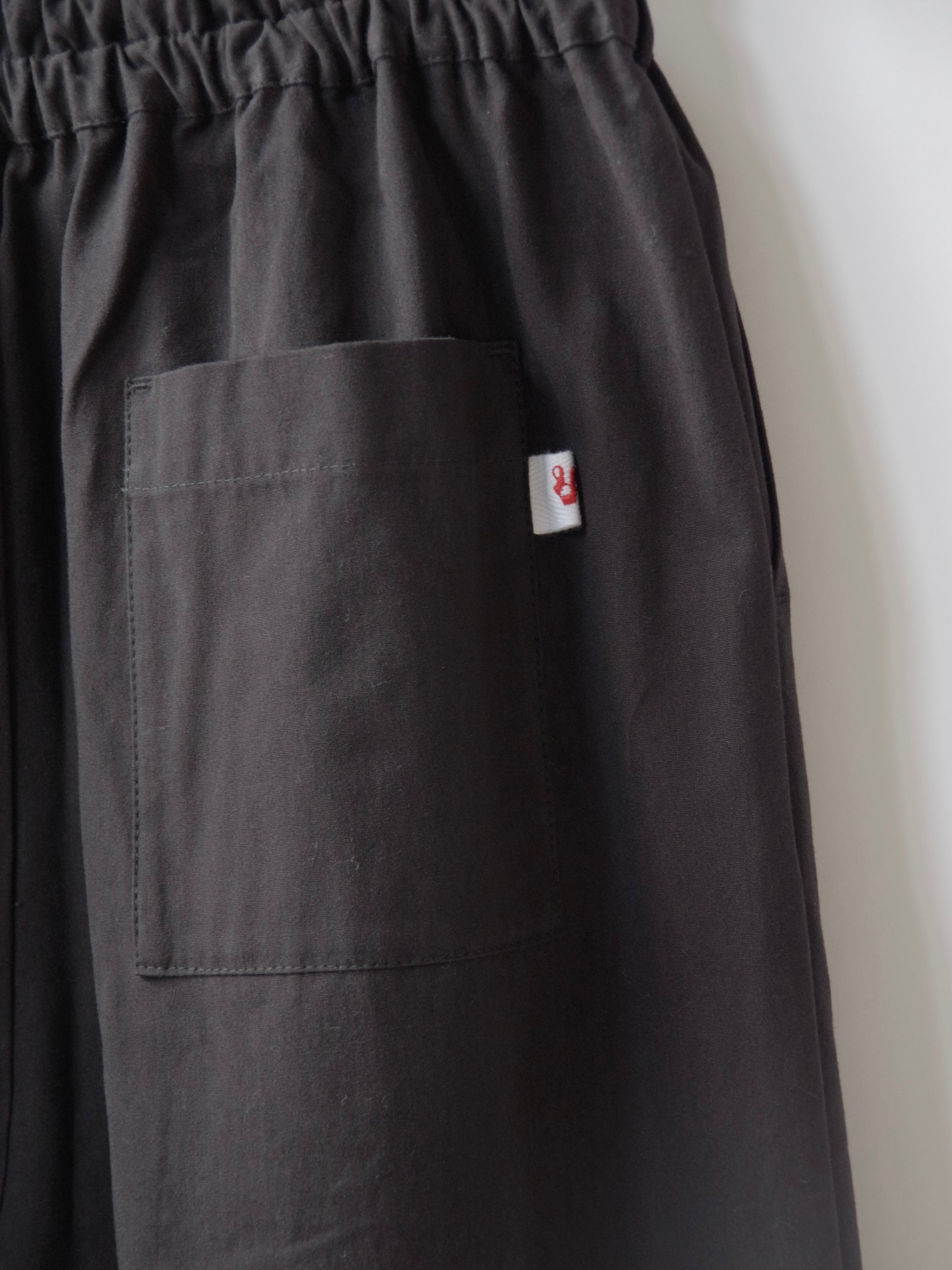 両サイドスラッシュポケット、後ろパッチポケット。後ろポケットのピスネームは赤刺繍糸で「S」のロゴが刺繍されています。