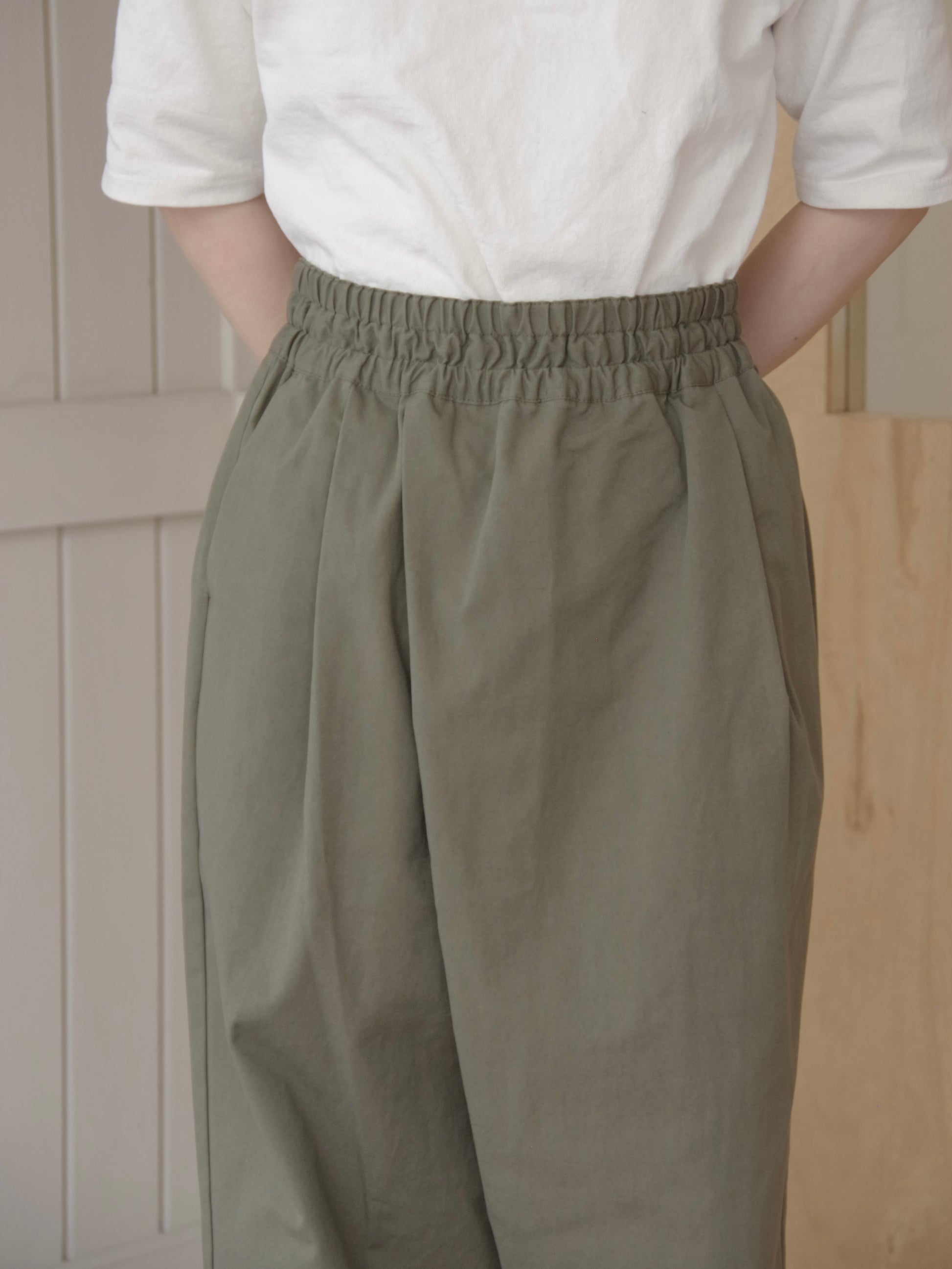 程よいハリ感のある生地を使用したゆとりのあるシルエットのタイパンツ。