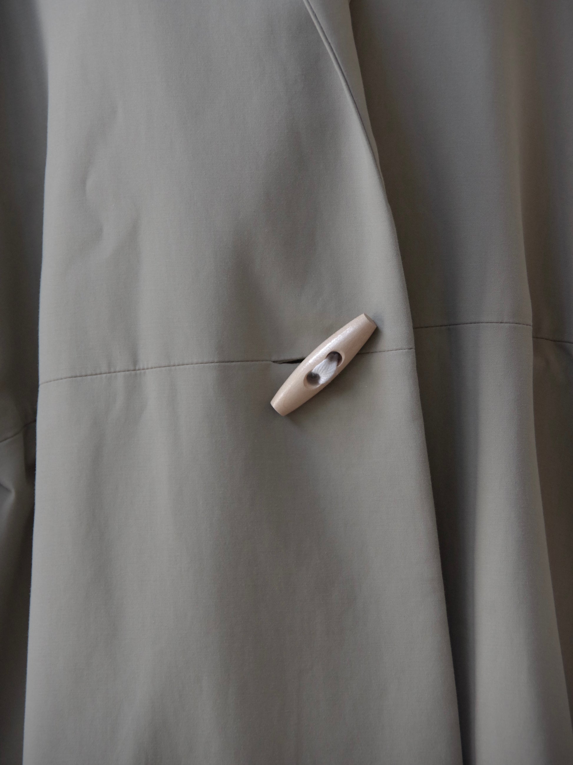 ゆったりしたオーバーサイズに、トグル風のボタンがアクセントになっています。