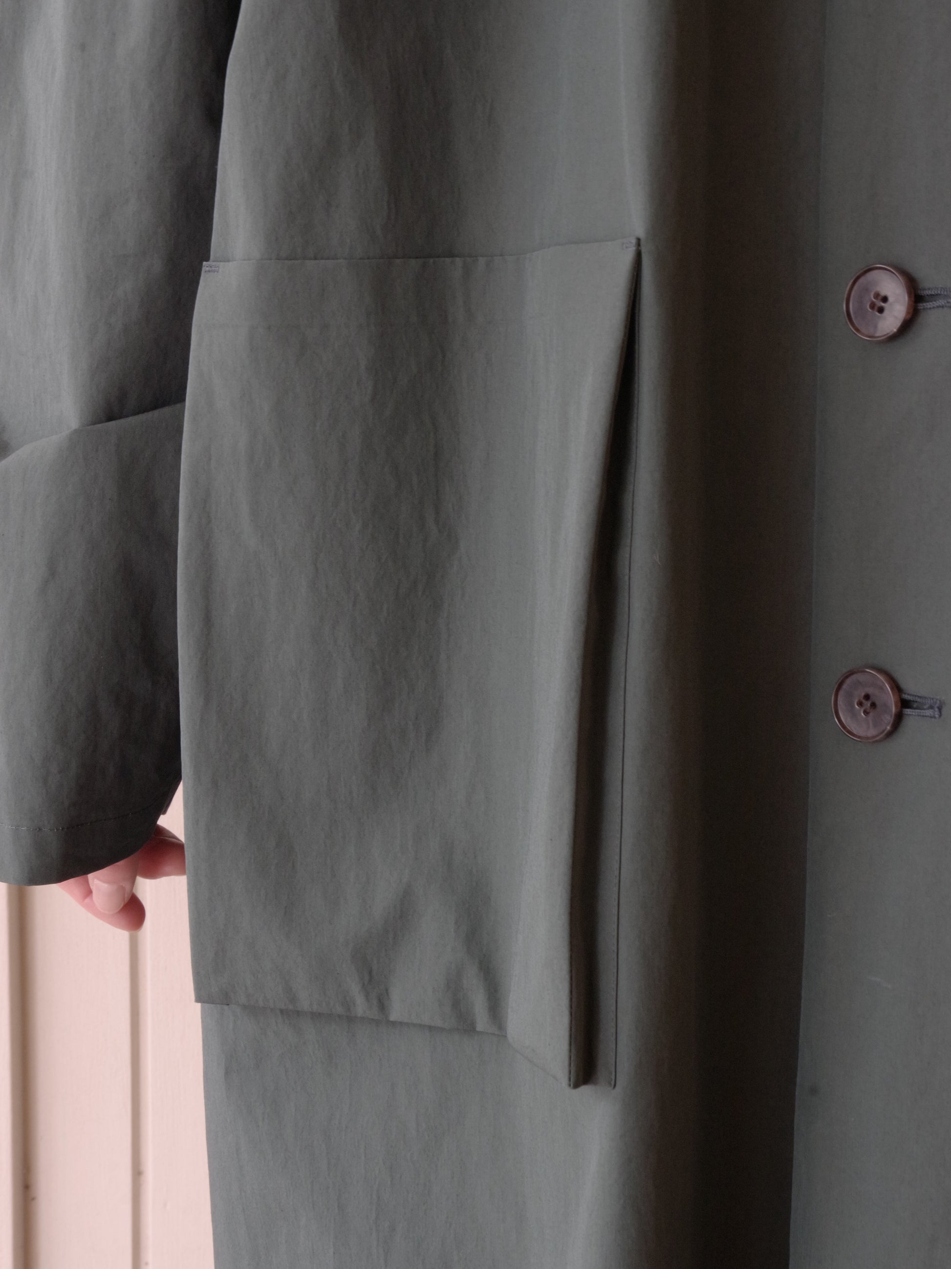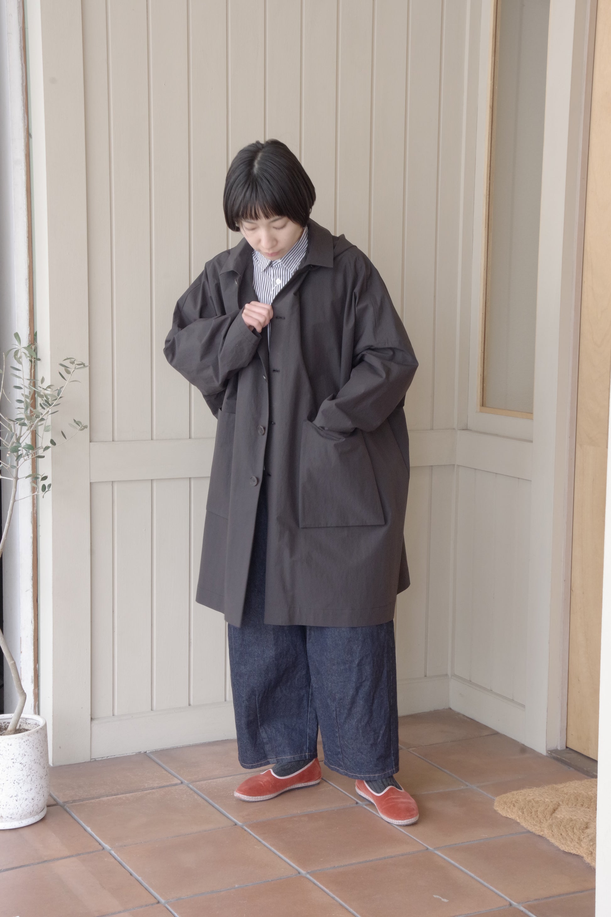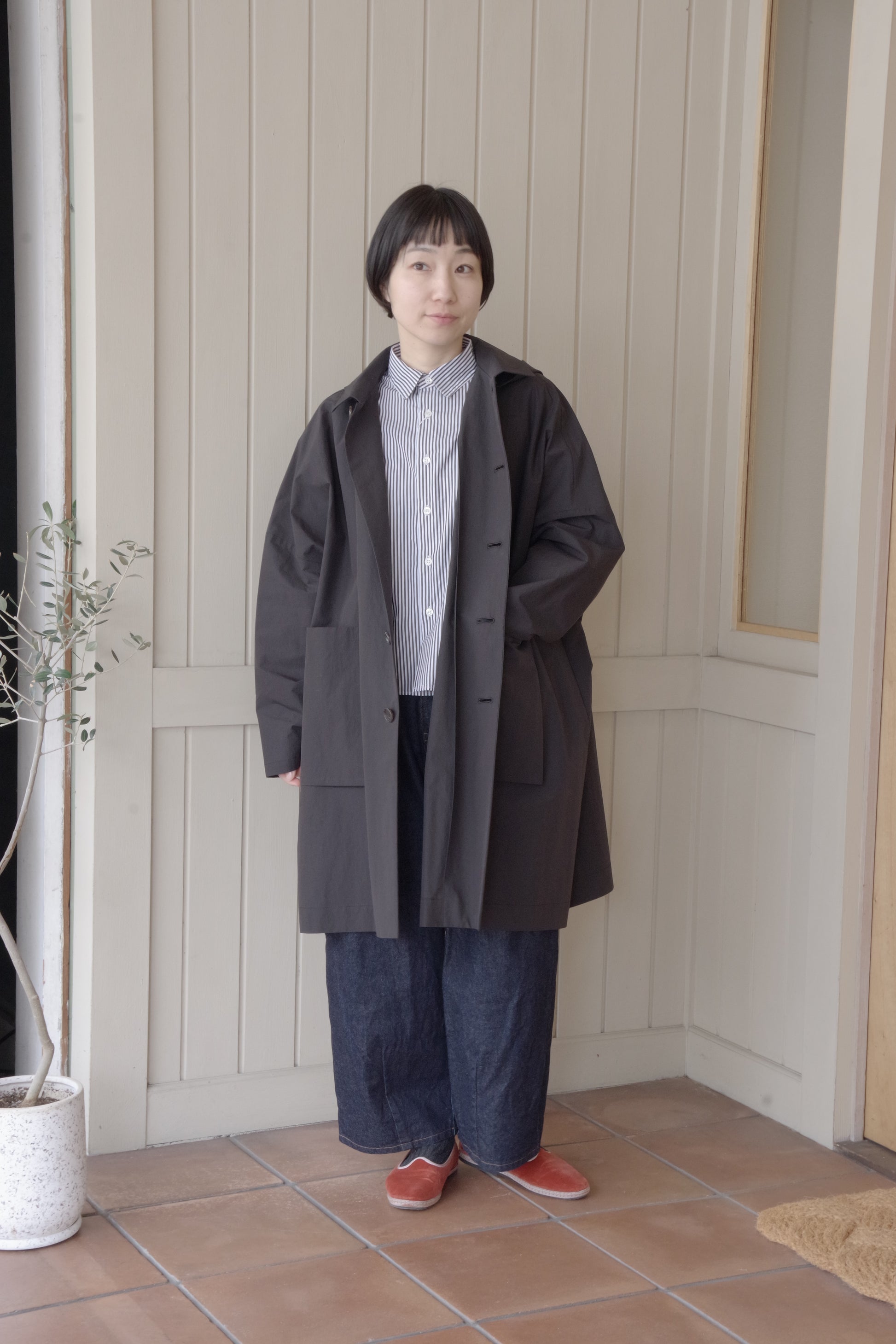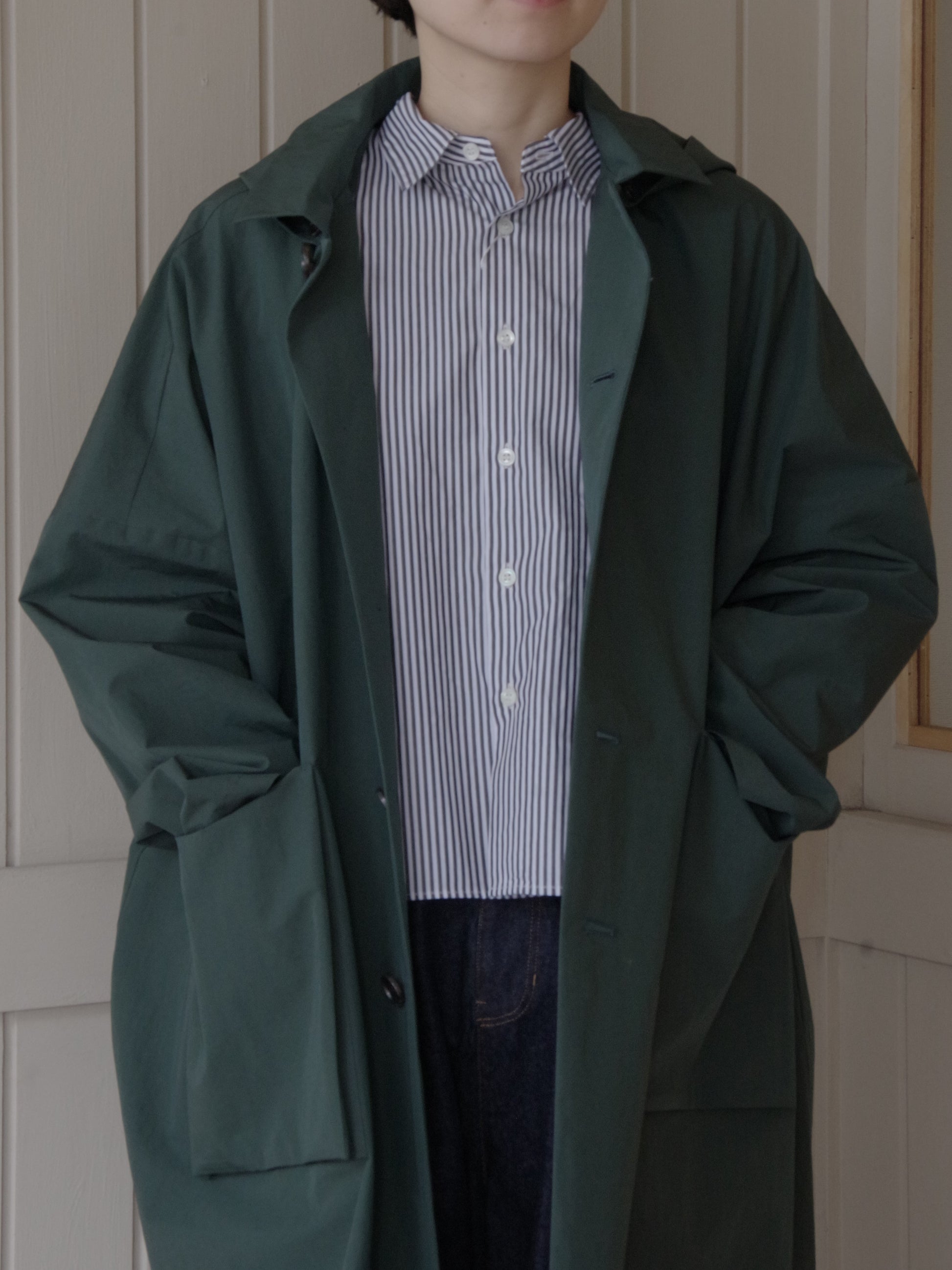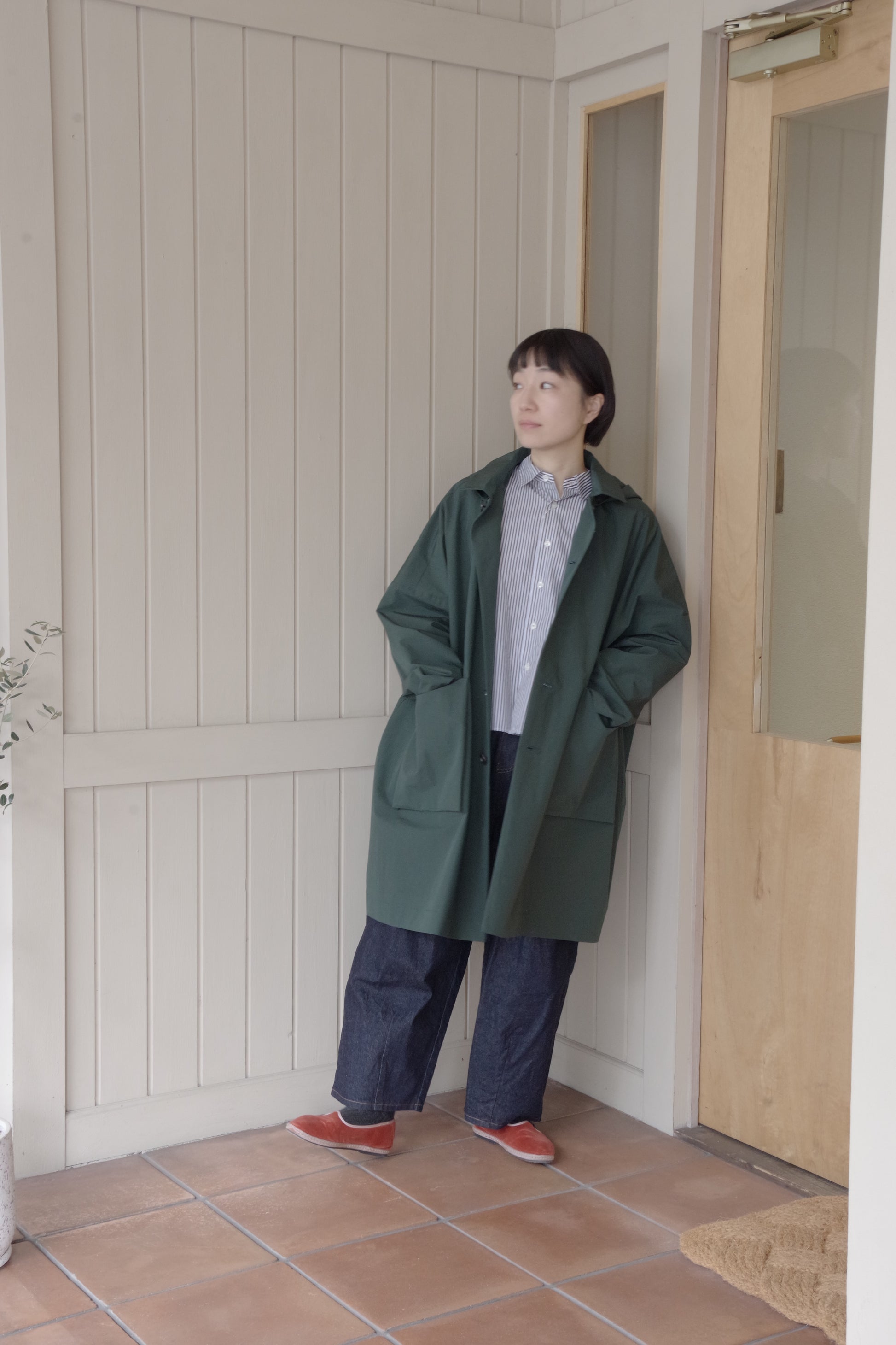 落ち着いた光沢感と、奥行きのある色合いが、その機能性を超えてモードな風合いを生んでいます。 サッと羽織って街へ。