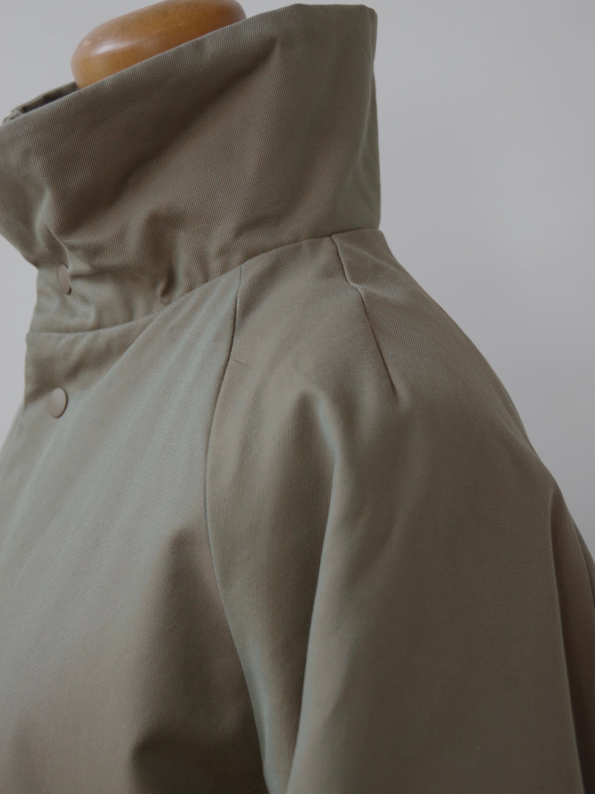 少し高めのスタンドカラーは、折り返すことで衿のようにできます。