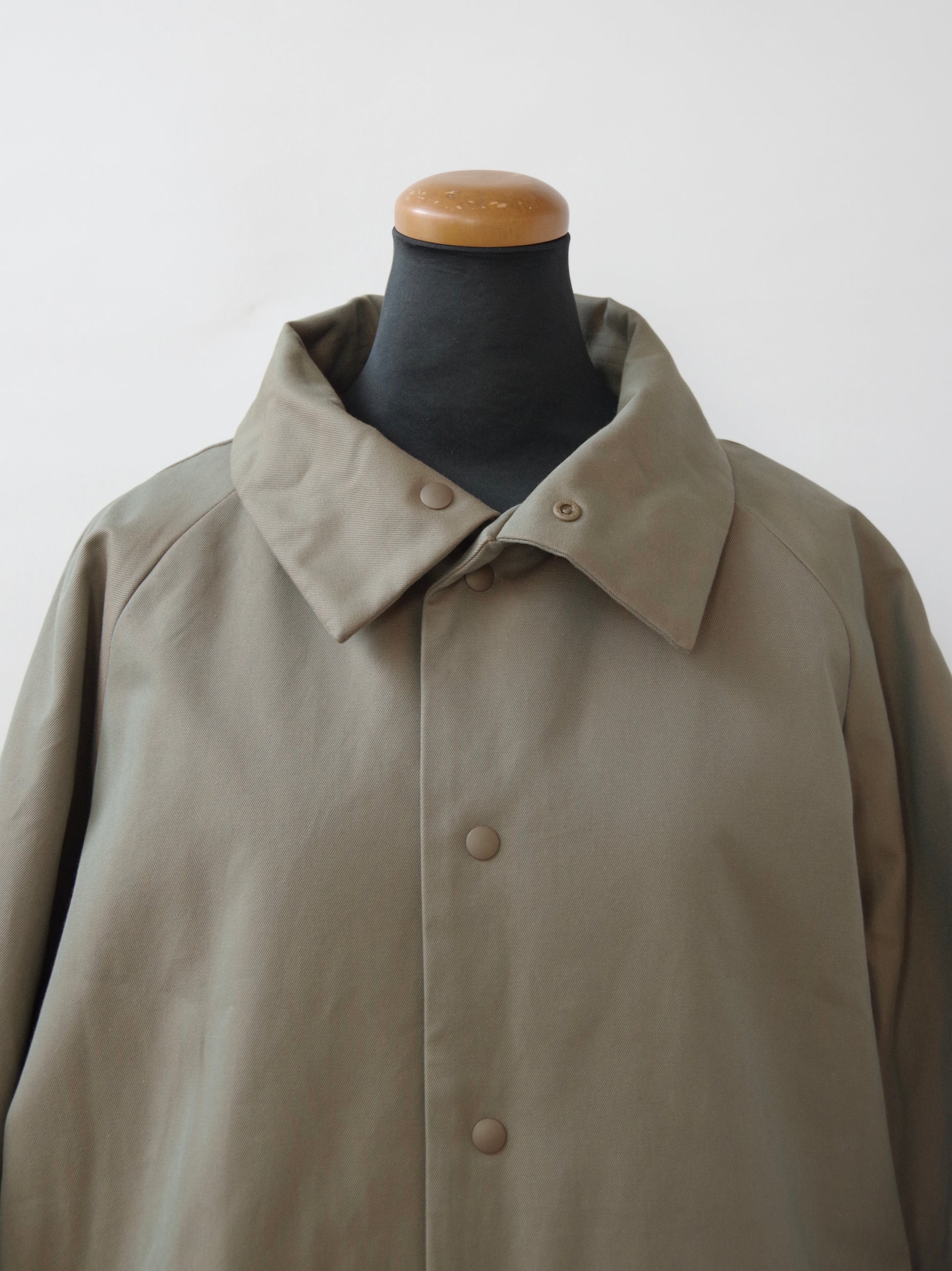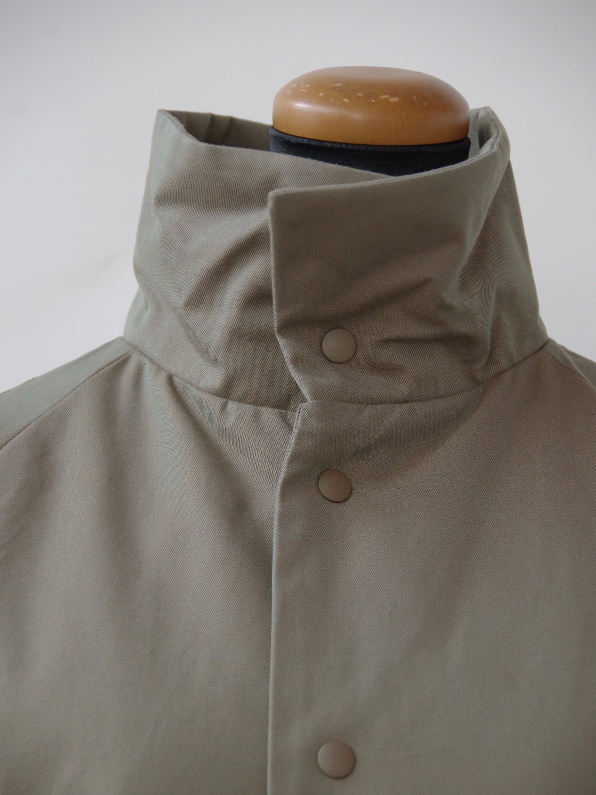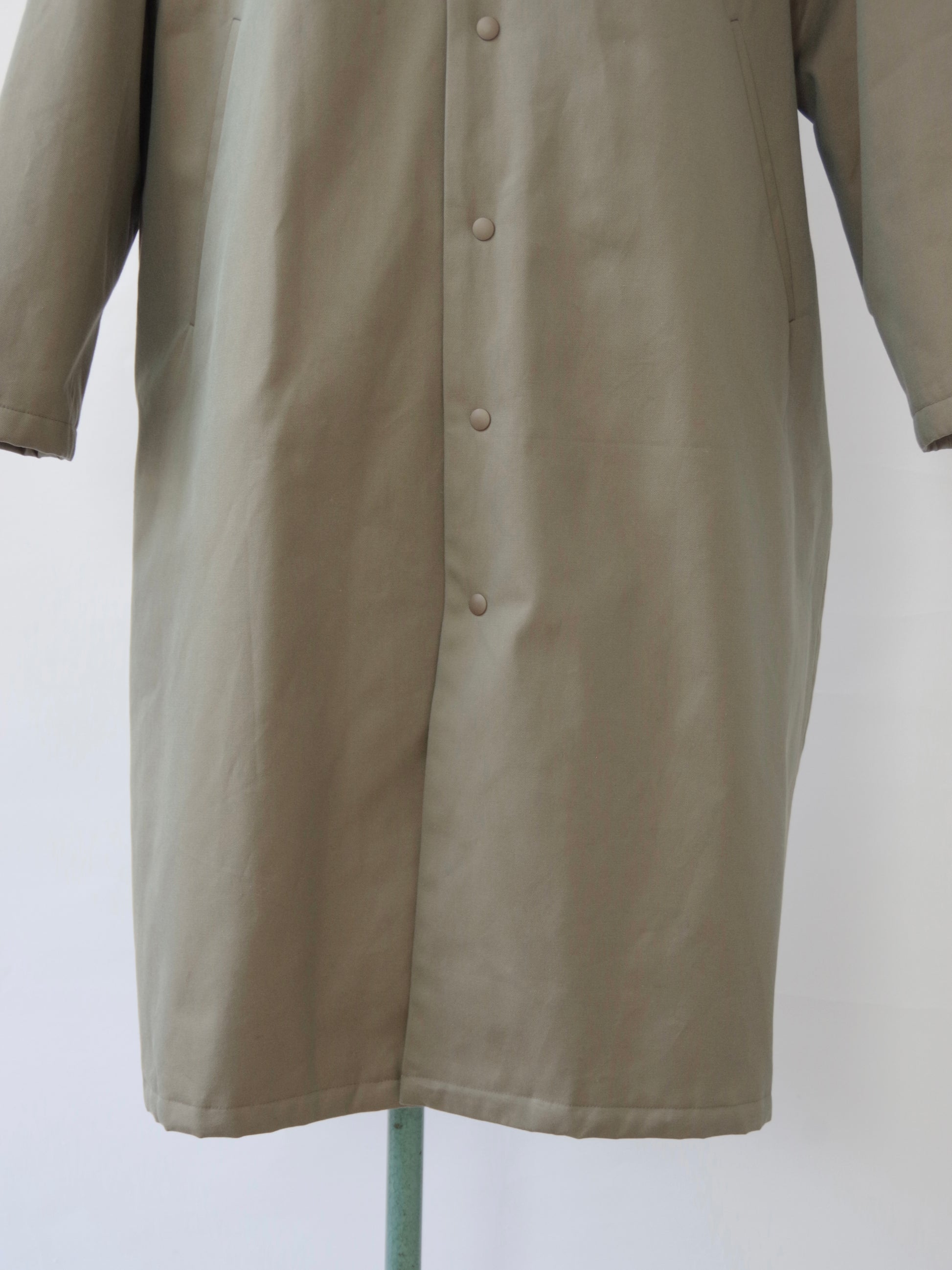 先染めコットンを高密度に織り上げ、撥水加工を施したツイルコットン生地を使用した中綿のコートです。