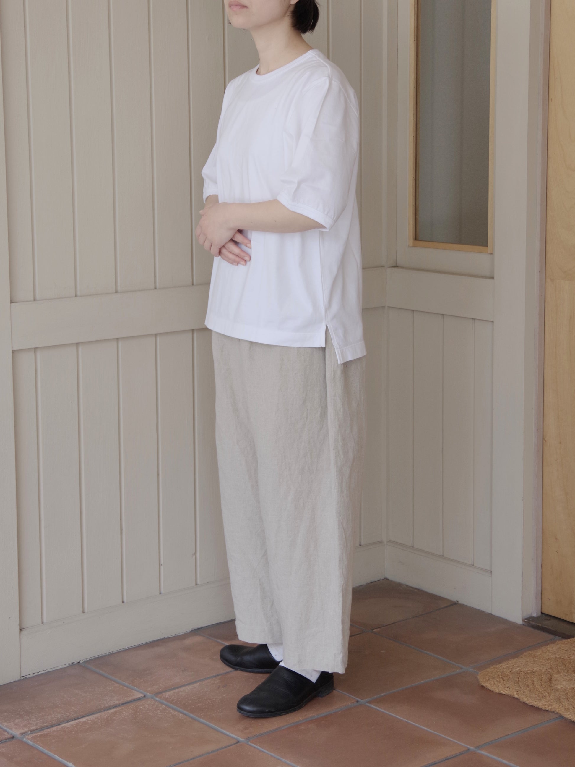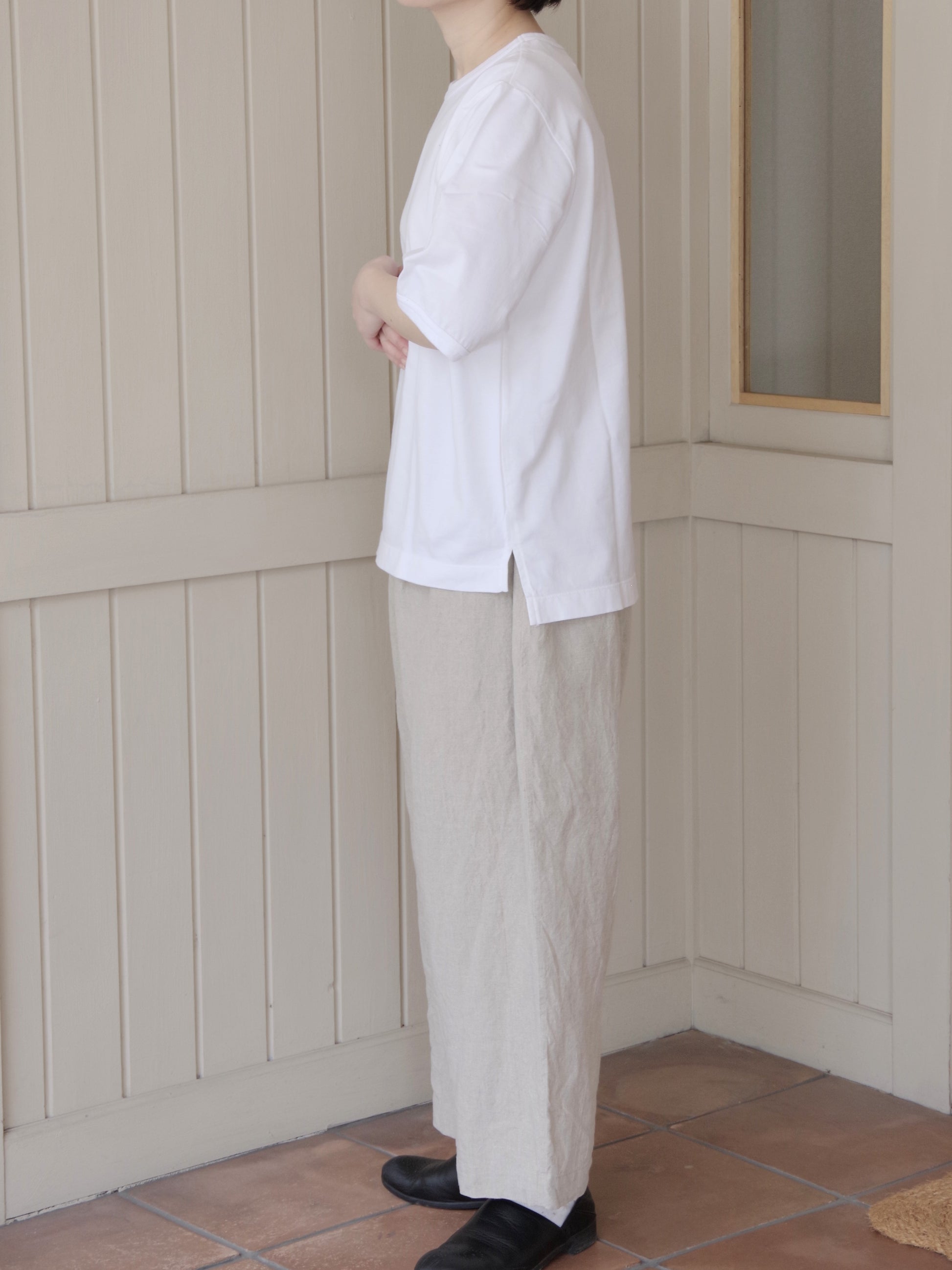 シンプルだからこそ、普通になりすぎないバランスできたい無地のTシャツ。