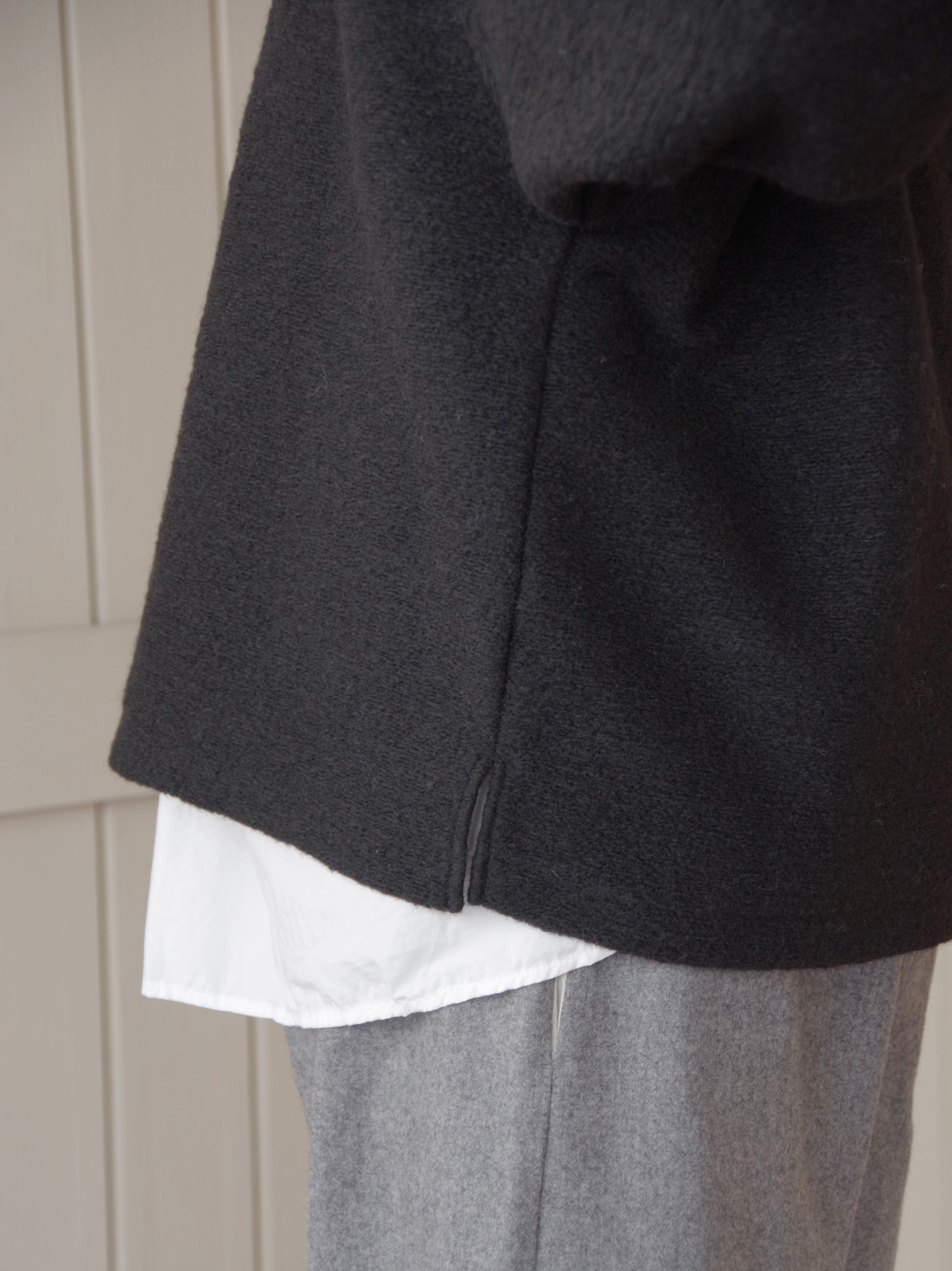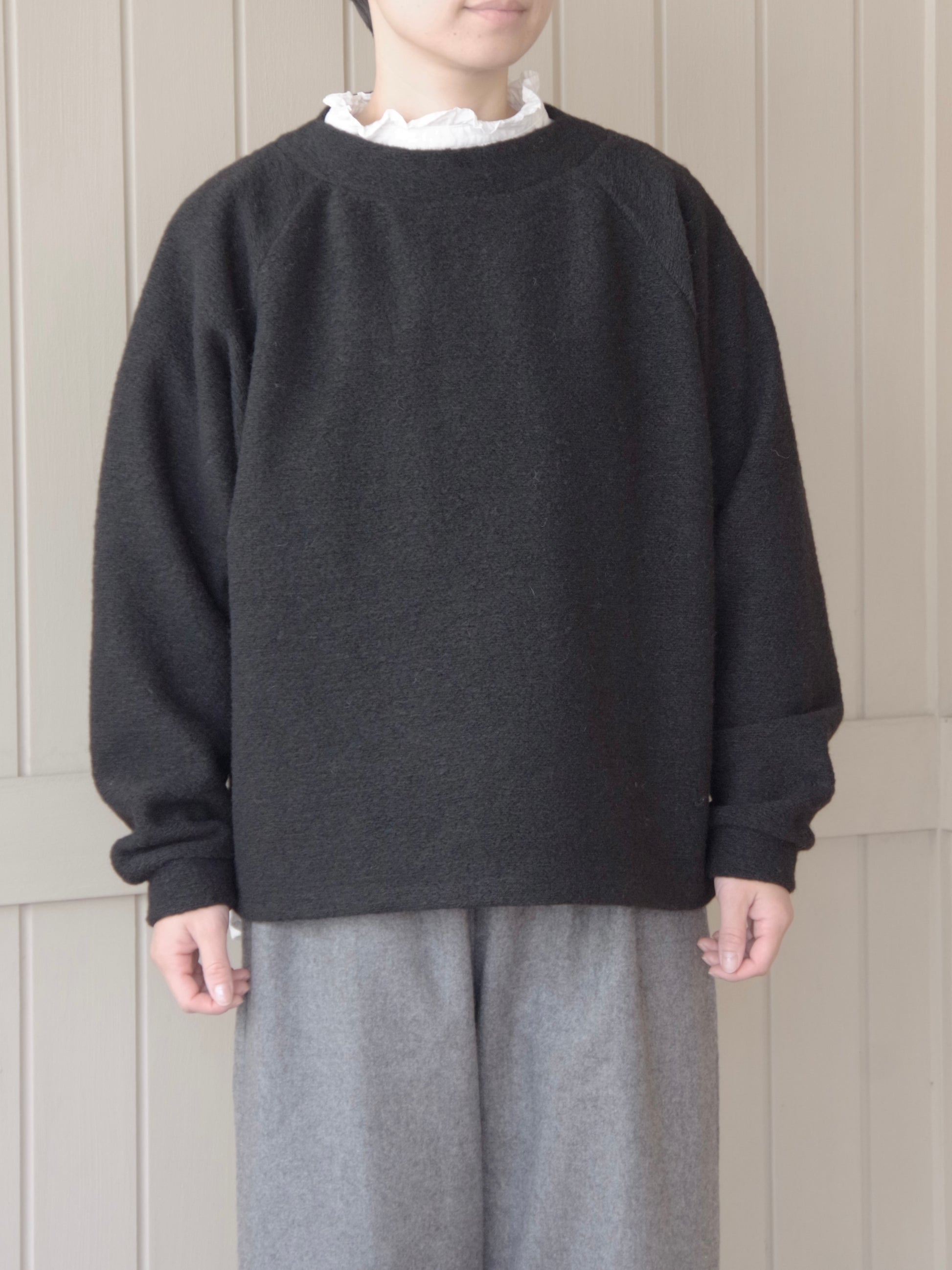 イタリアの老舗生地メーカーのベッカリー社LANFICIO BECAGLIの生地を使用した温かく、とても軽い生地を使用したプルオーバー。