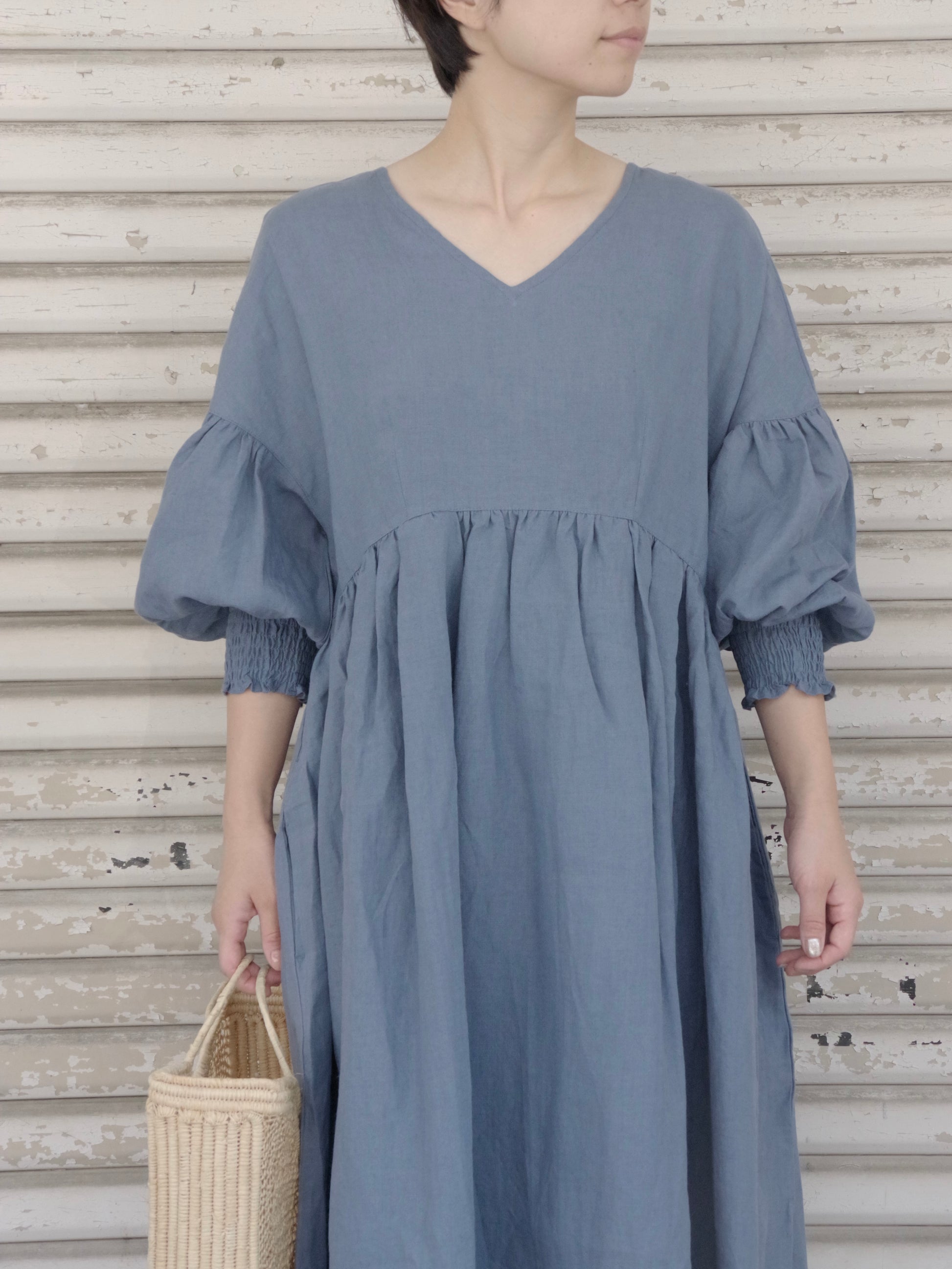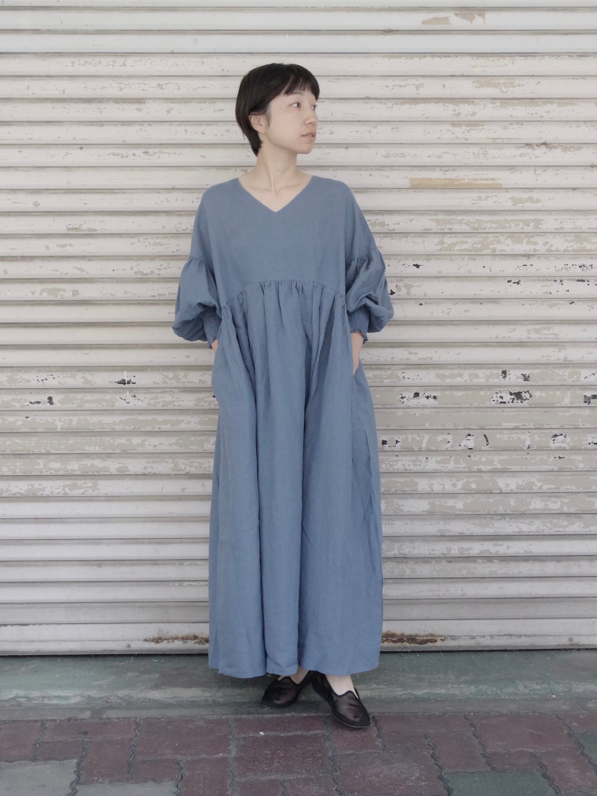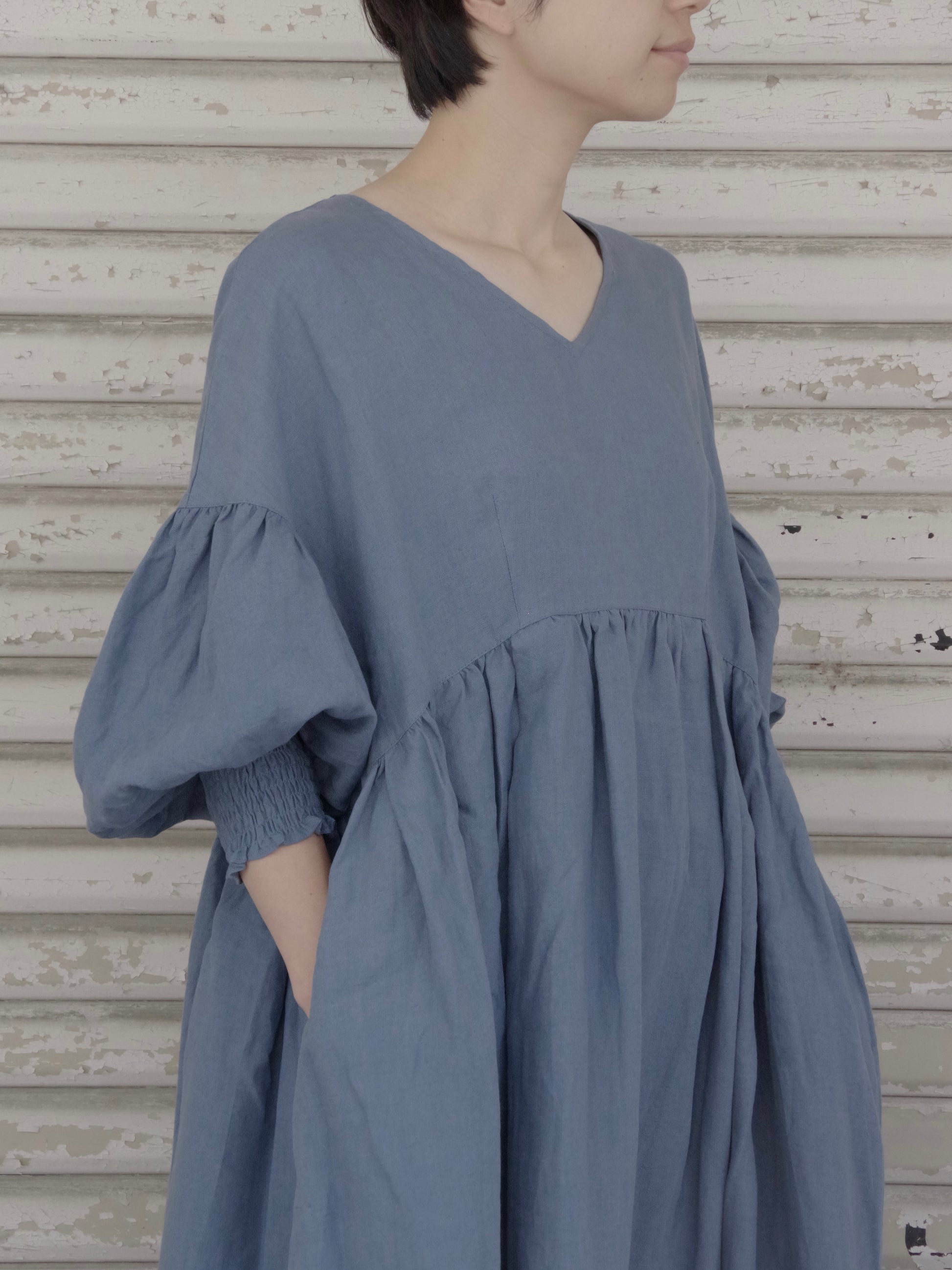 トリプルワッシャーリネン Vネックワンピース ( 2color) | UNIVERSAL TISSU