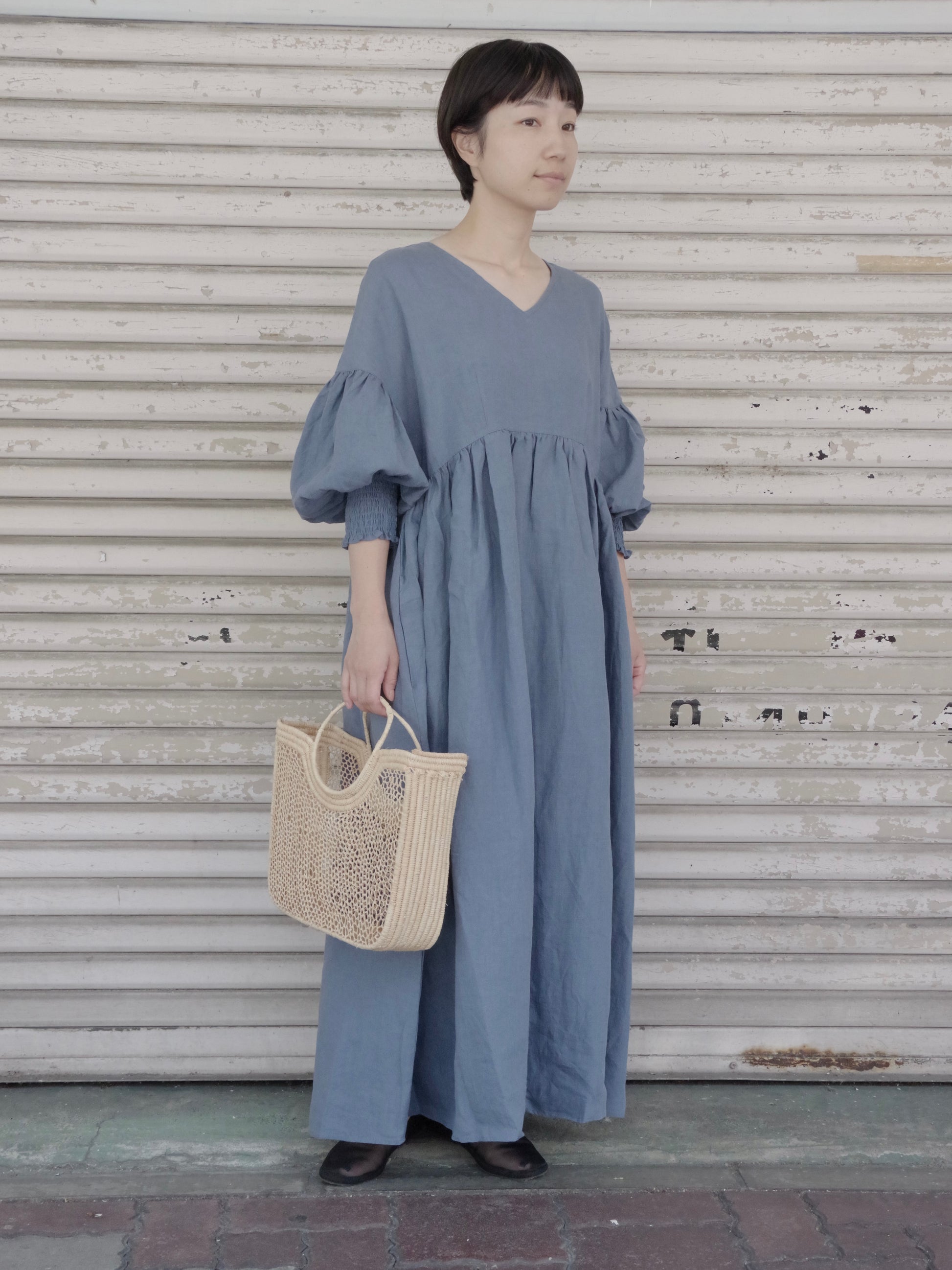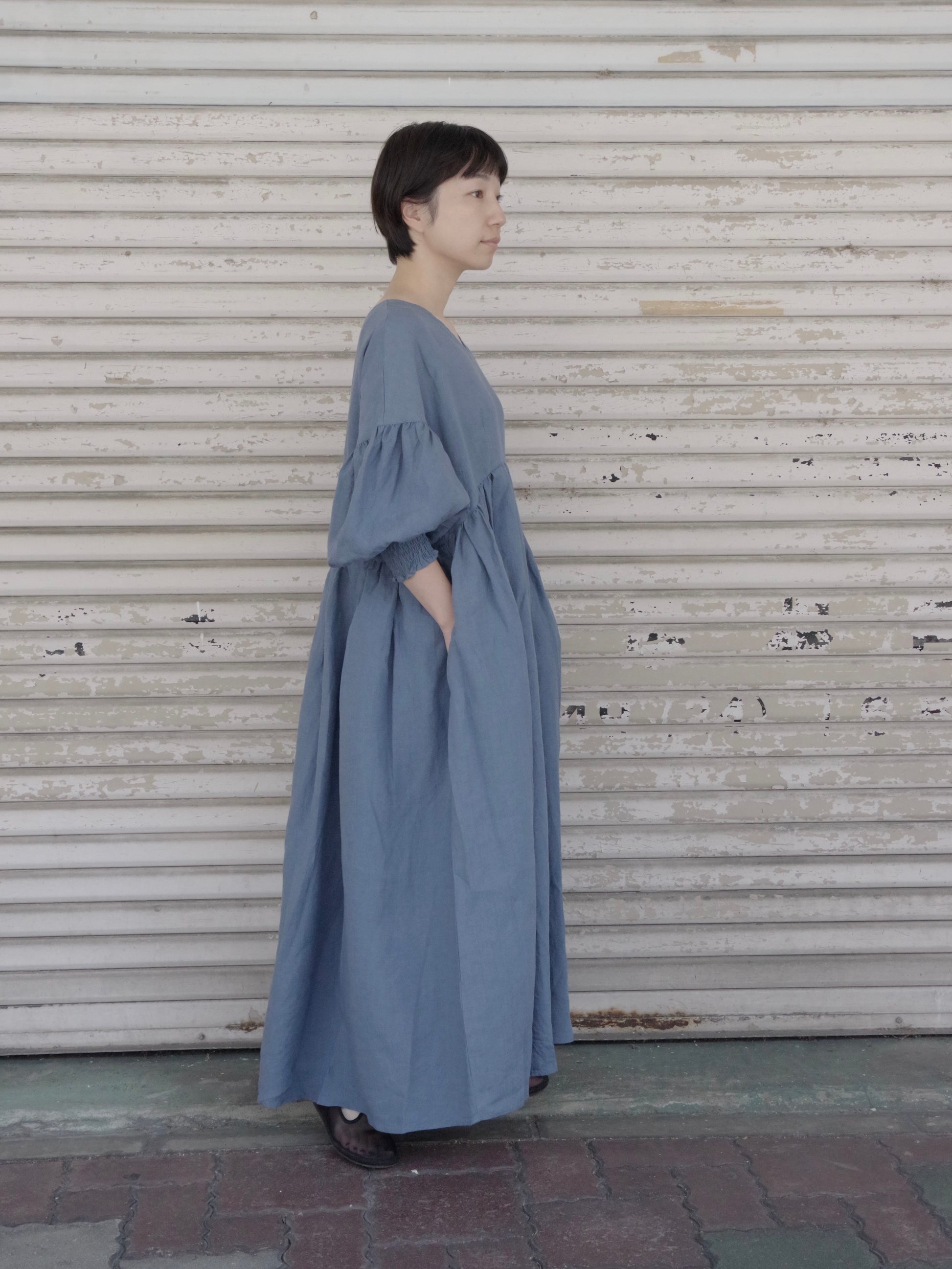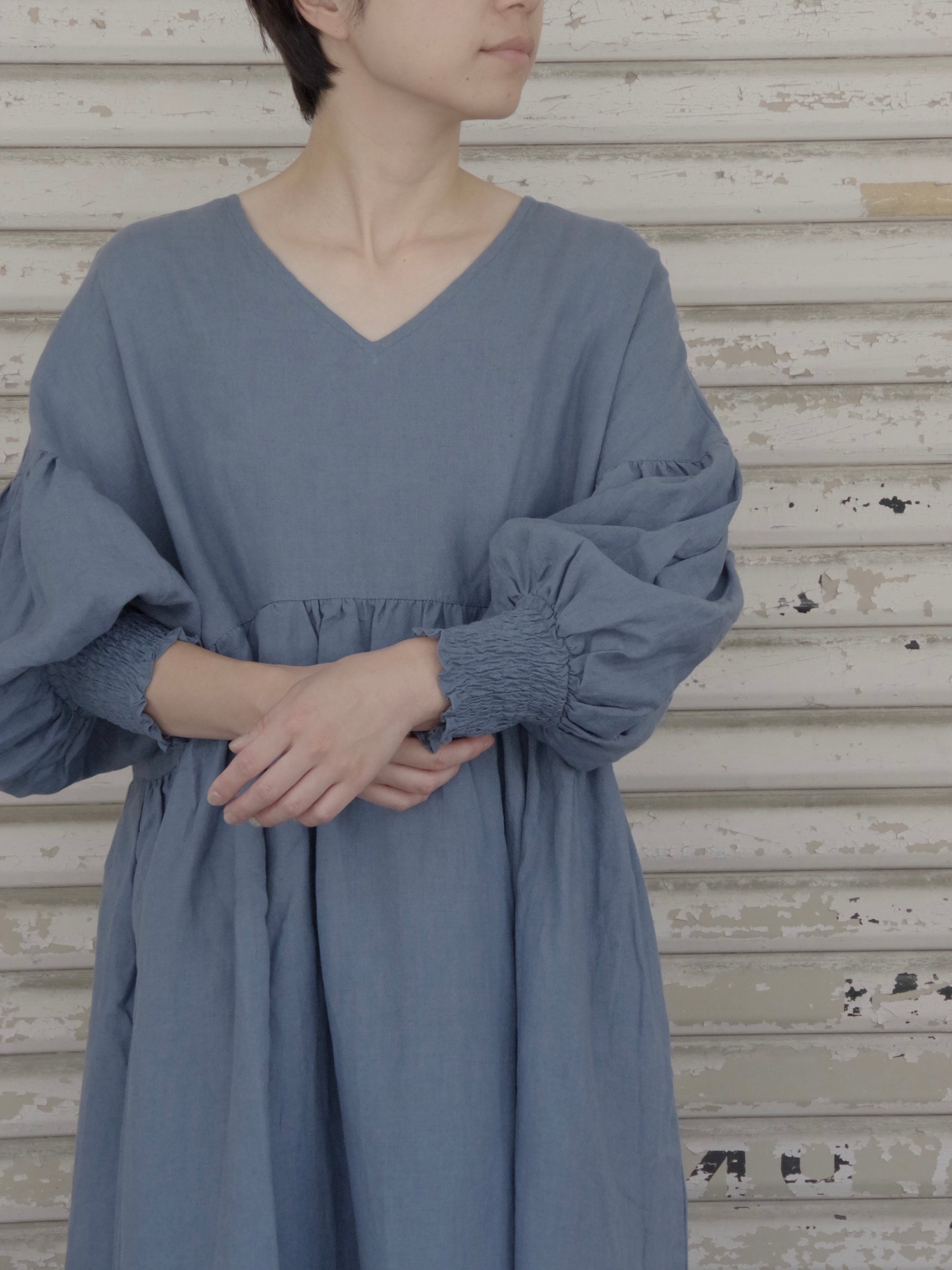トリプルワッシャーリネン Vネックワンピース ( 2color) | UNIVERSAL TISSU