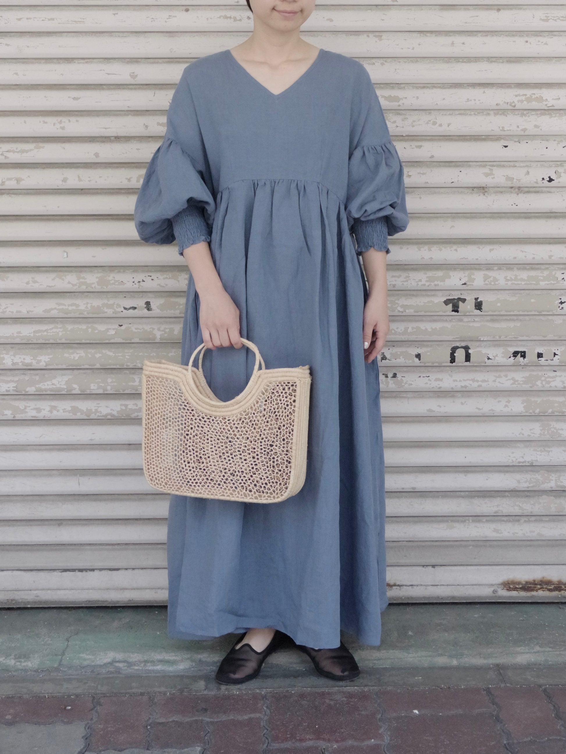 UNIVERSAL TISSU定番のVネックワンピースが、リネン素材で入荷しました。
