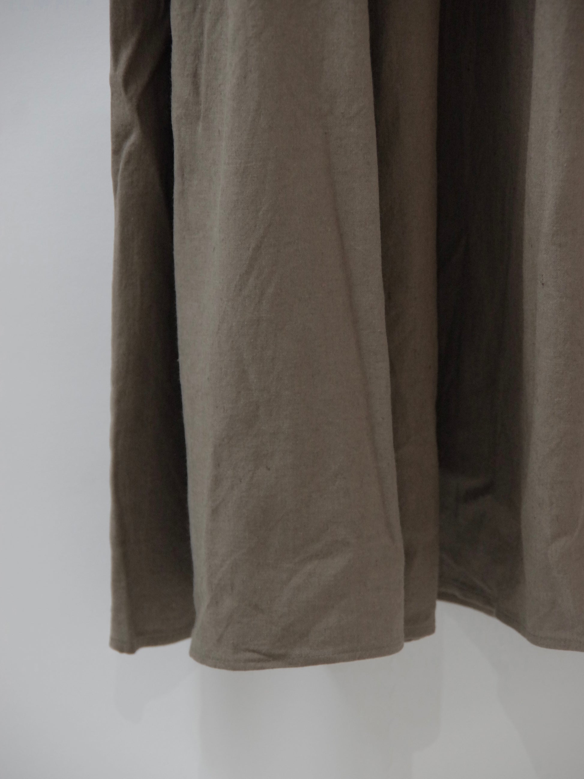胸下切り替え部分にも、ふんだんにギャザーが入ることで体のラインをひろわないシルエットも◎