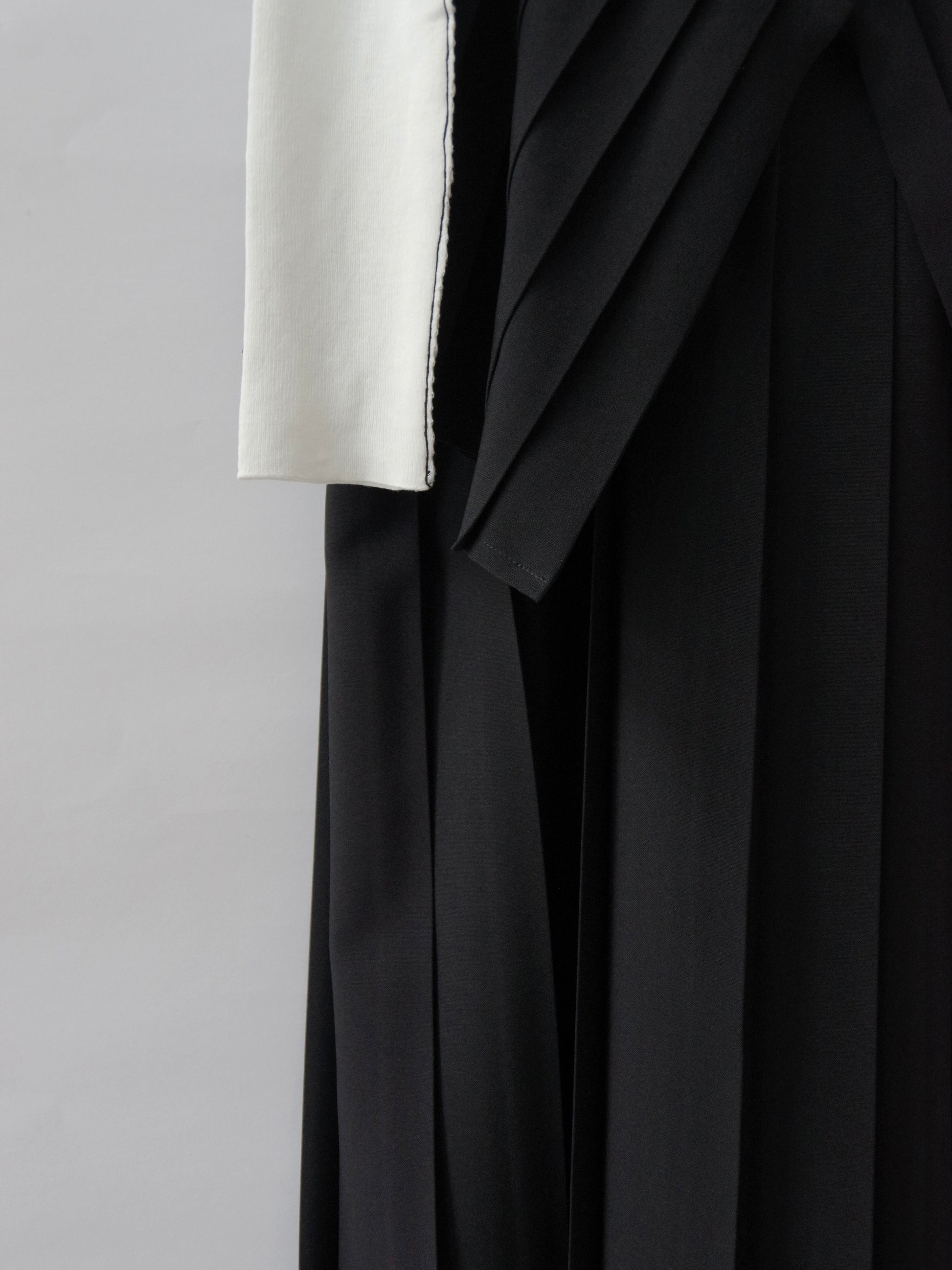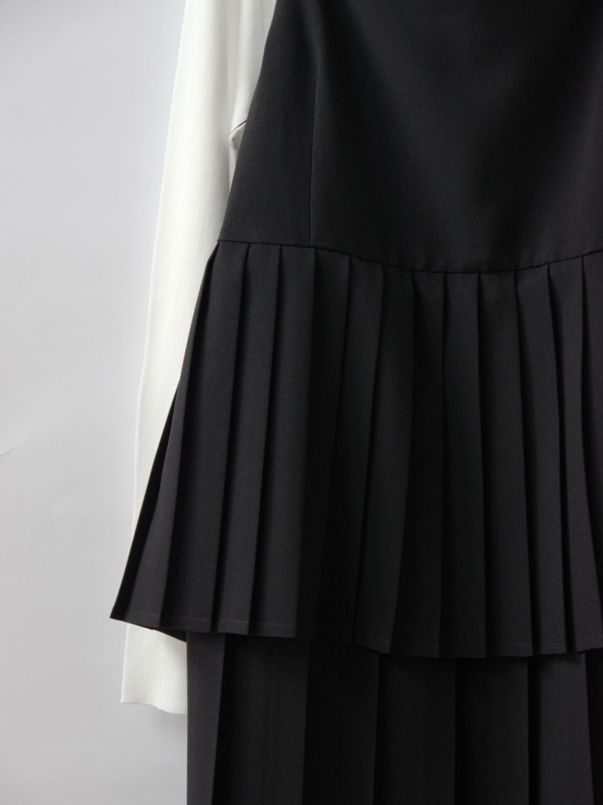 ウエストのレイヤードしたプリーツで華やかさをプラスしました。
