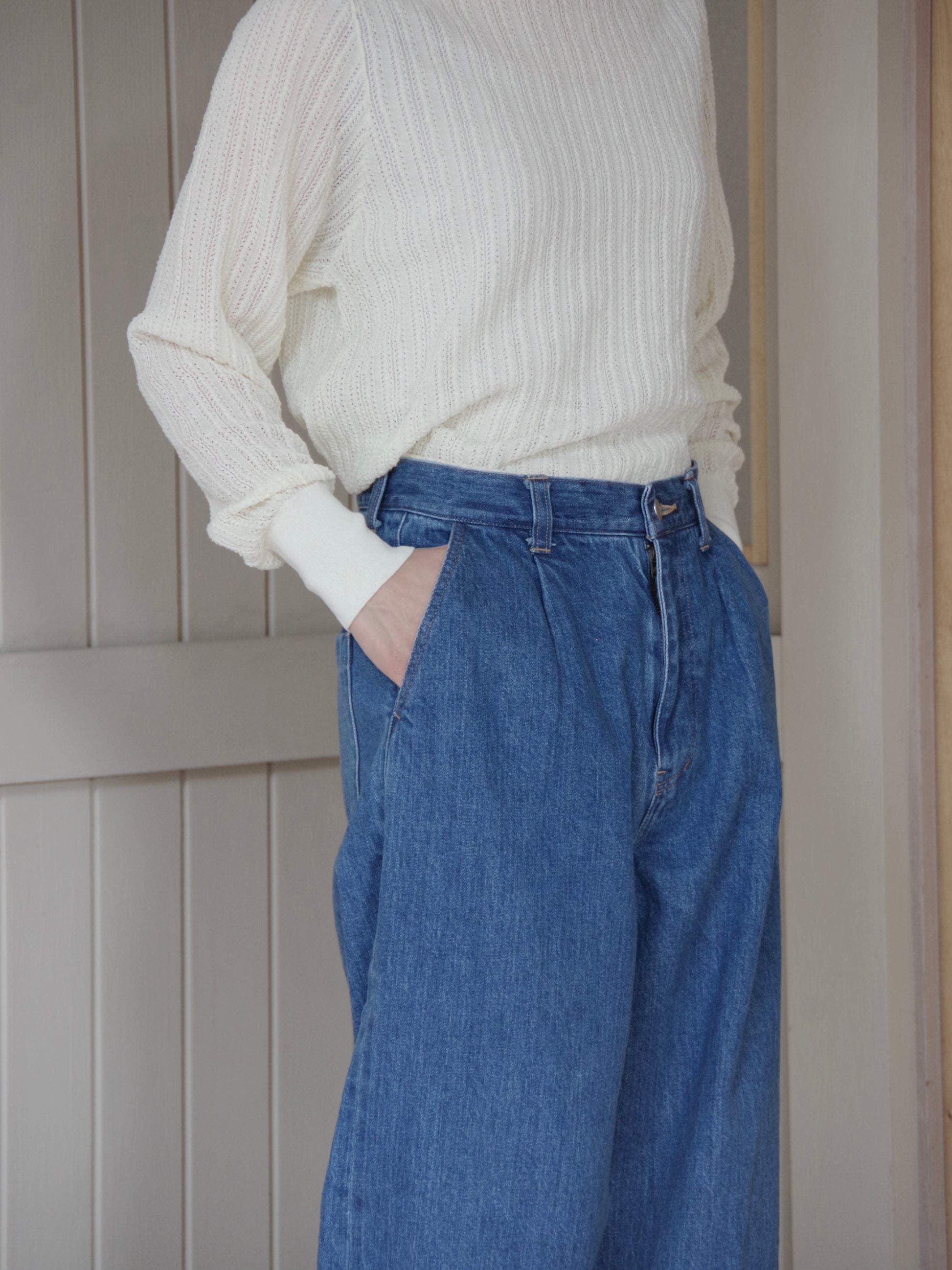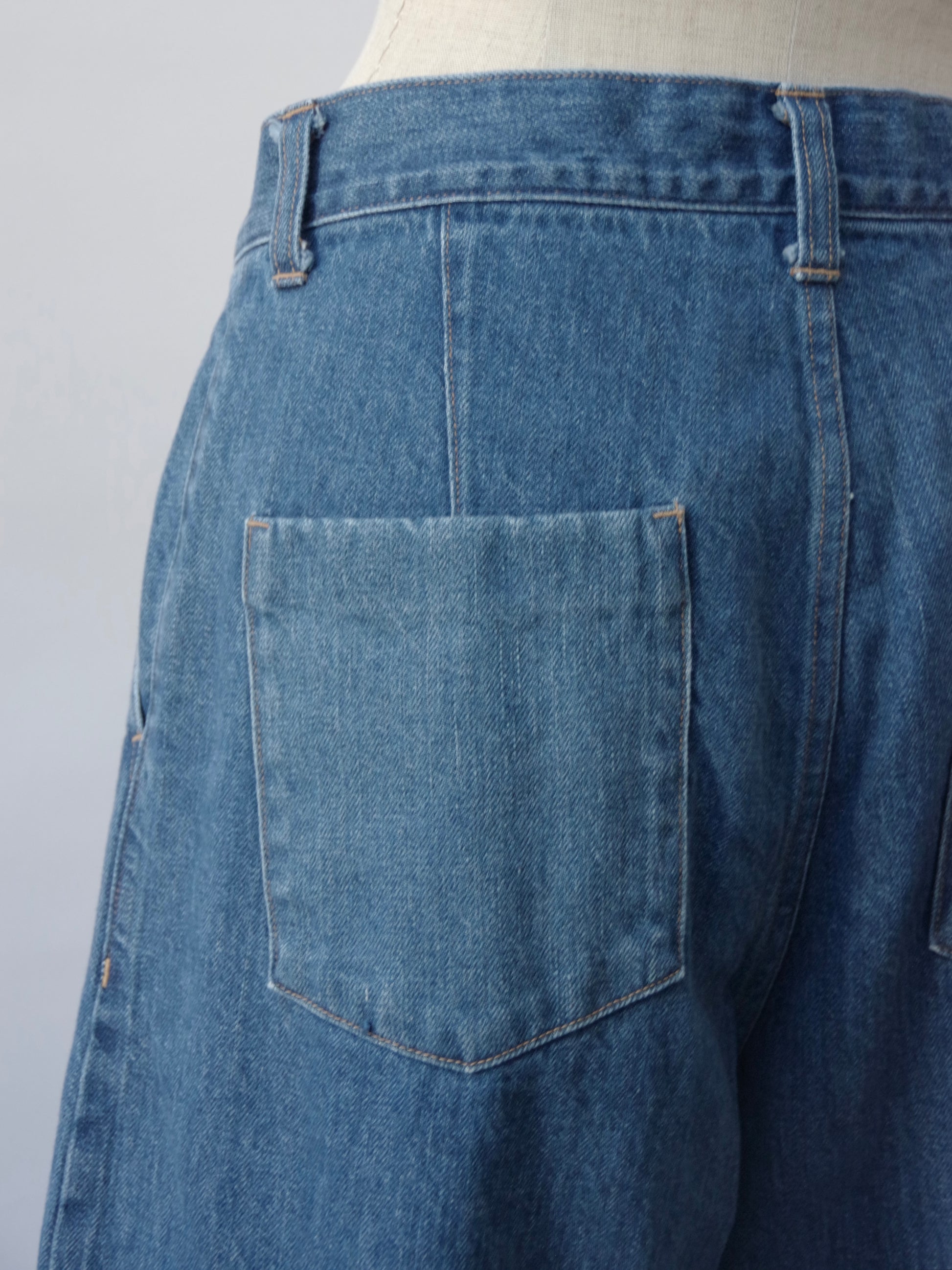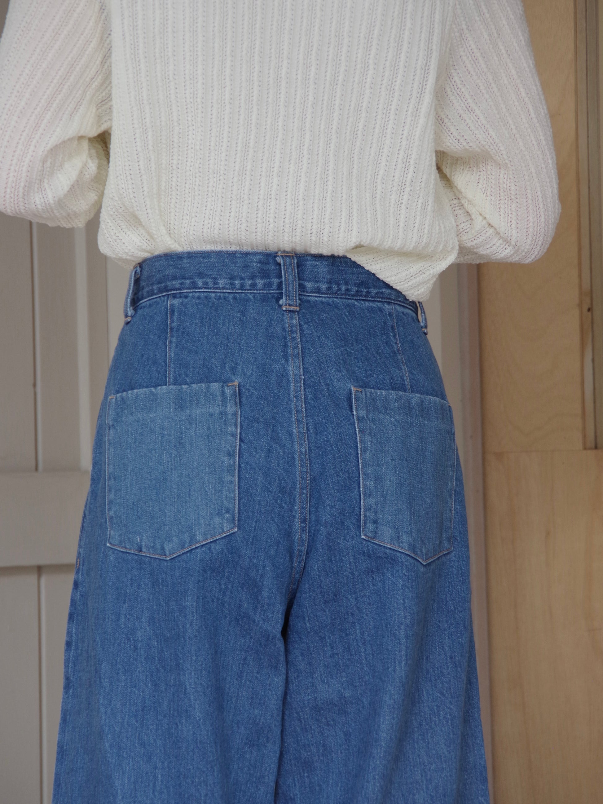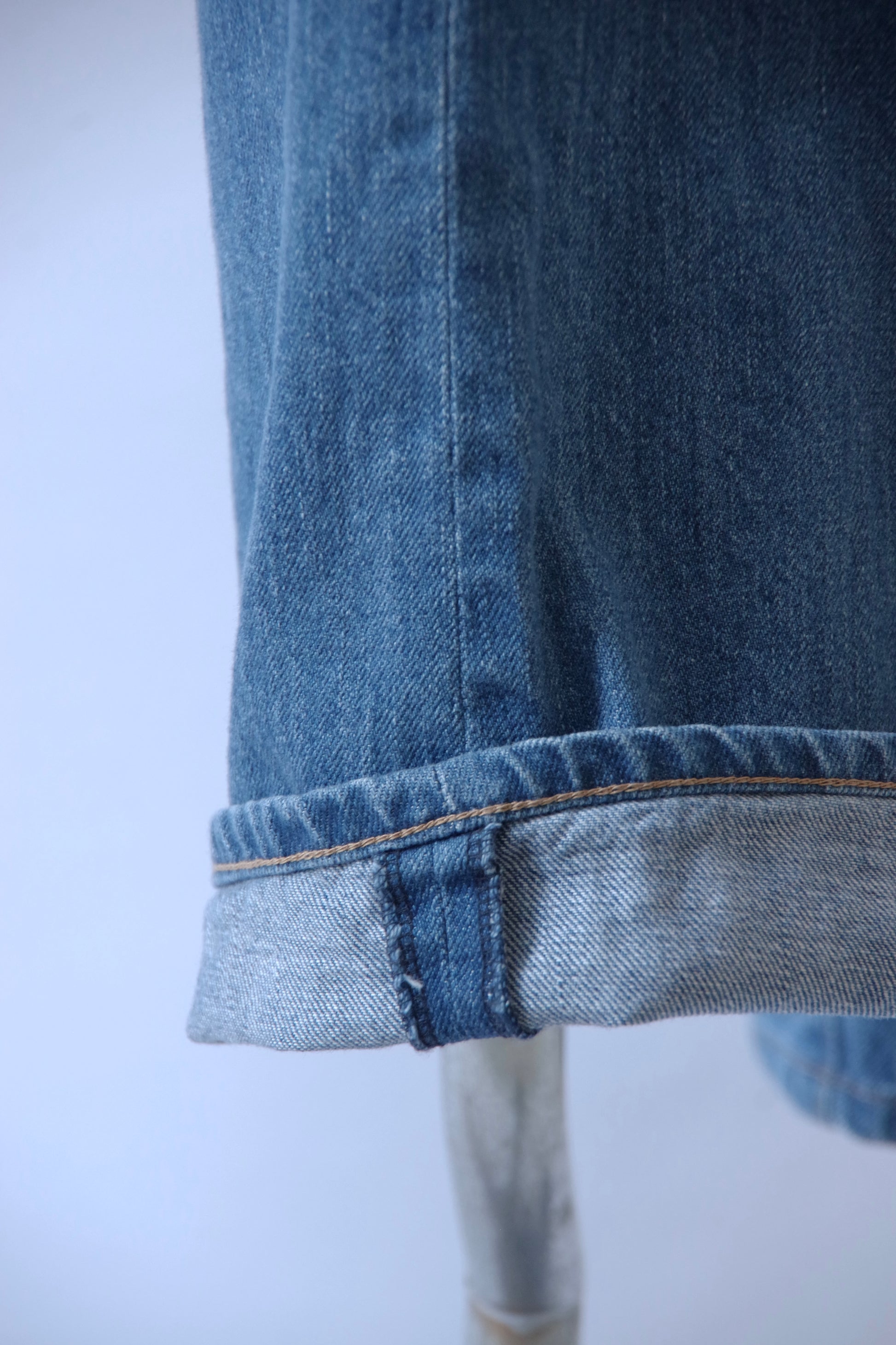 岡山で織り上げられたセルビッチデニムを使用しています。ビンテージのような風合いで、長年着用していくうちに経年変化を楽しめる1枚です。