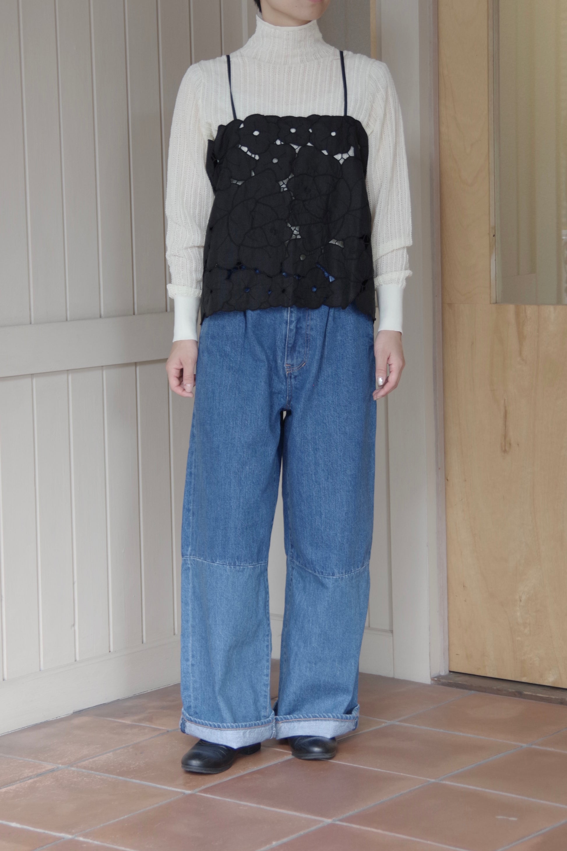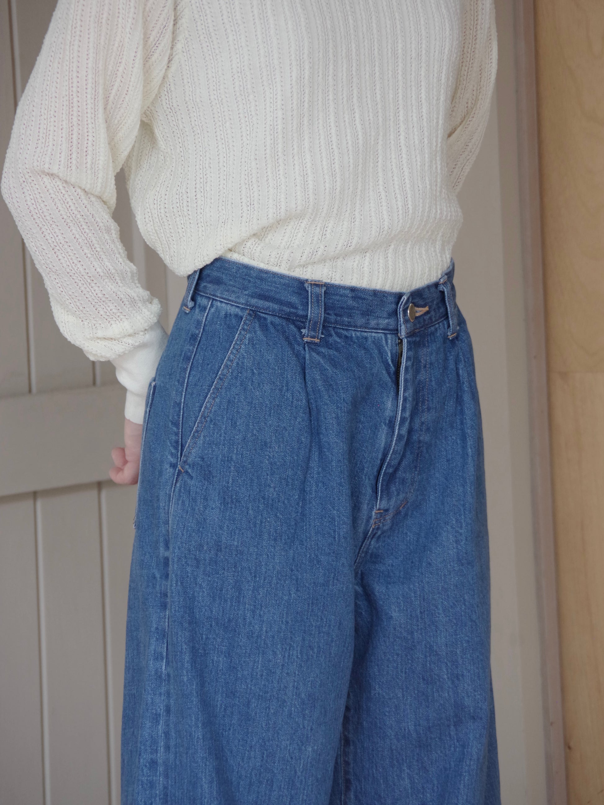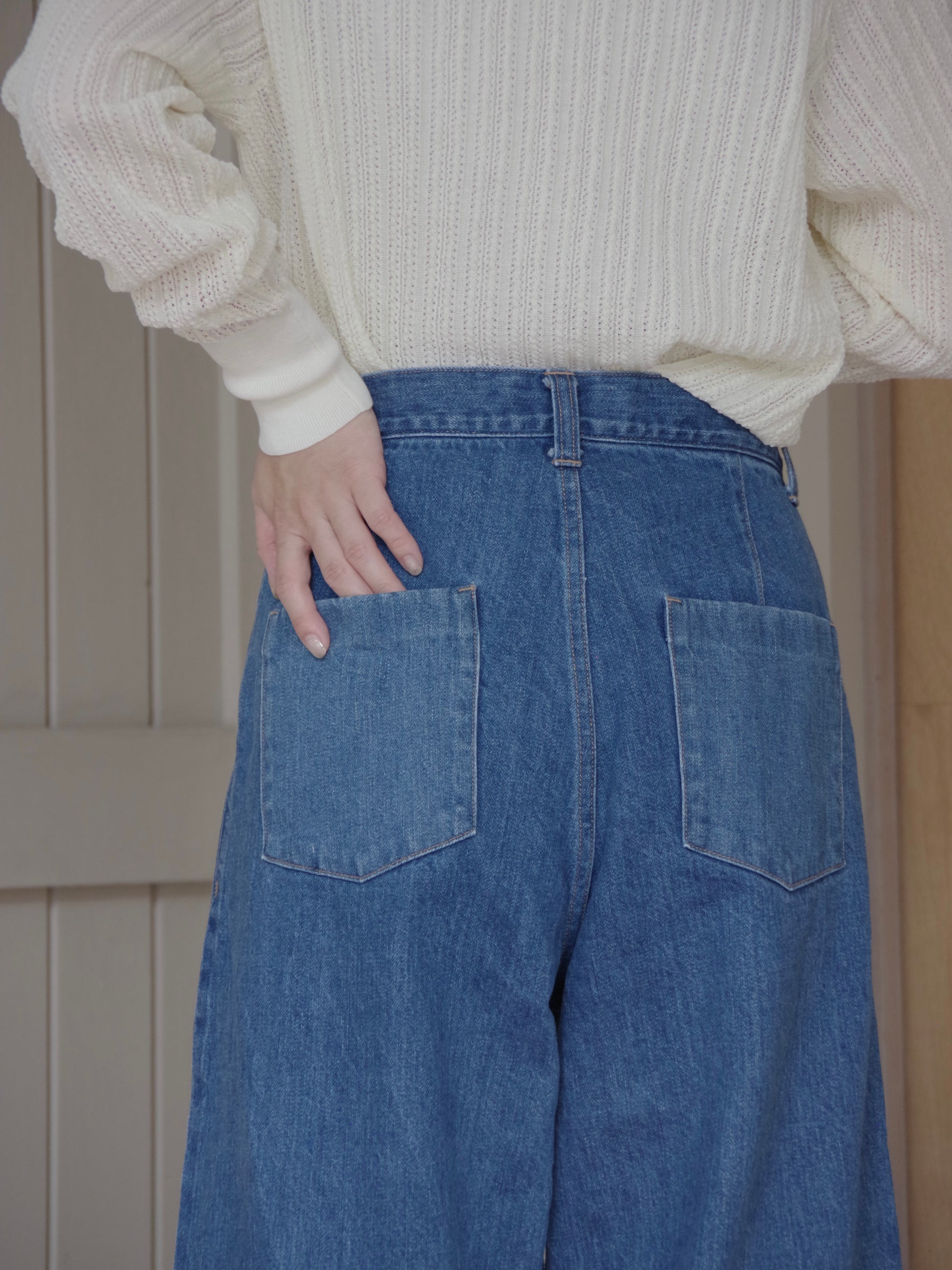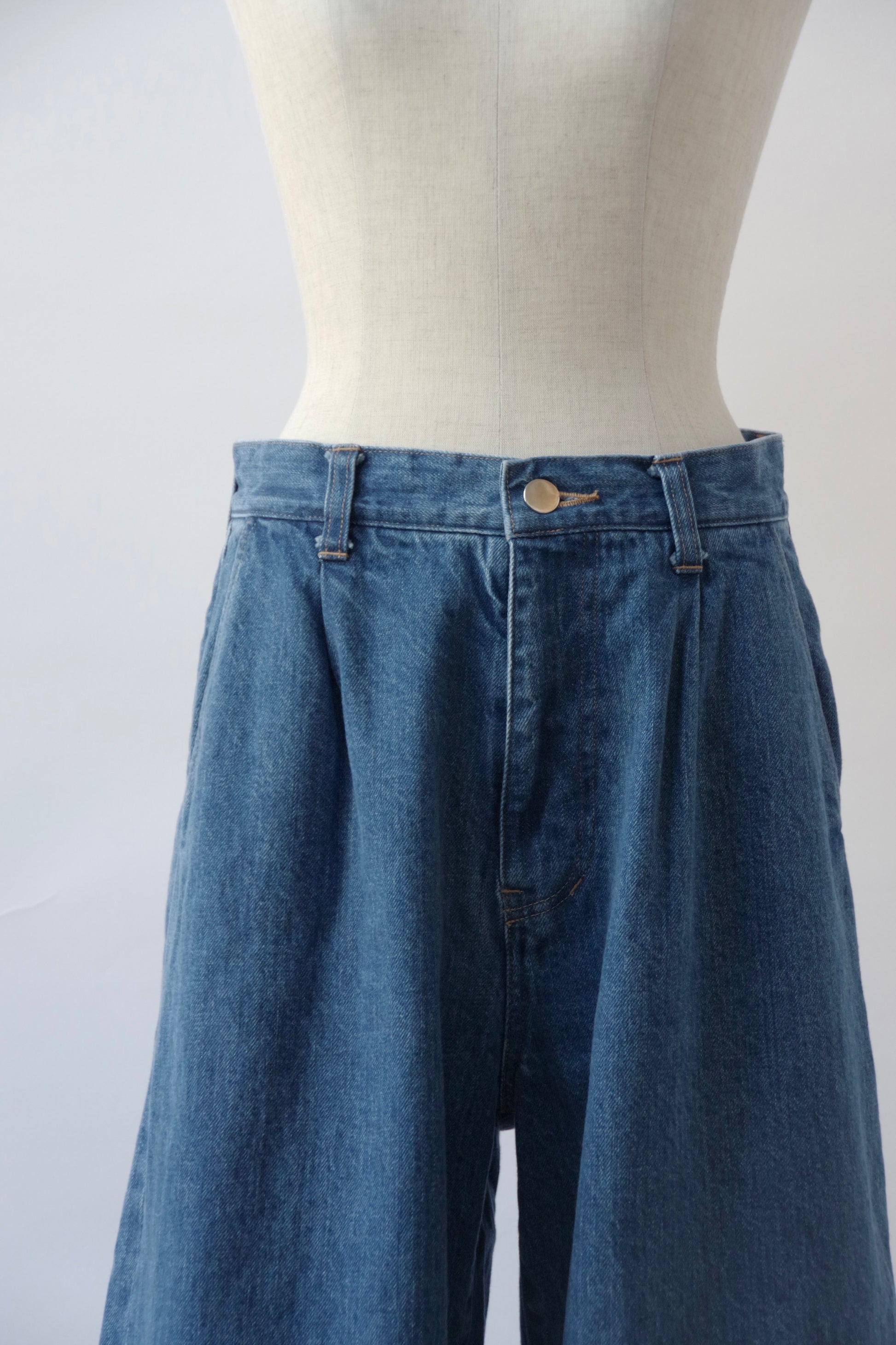 ウエスト周りはフロントにタックが入り、程よいワイドシルエットがすっきりと綺麗なシルエットです。