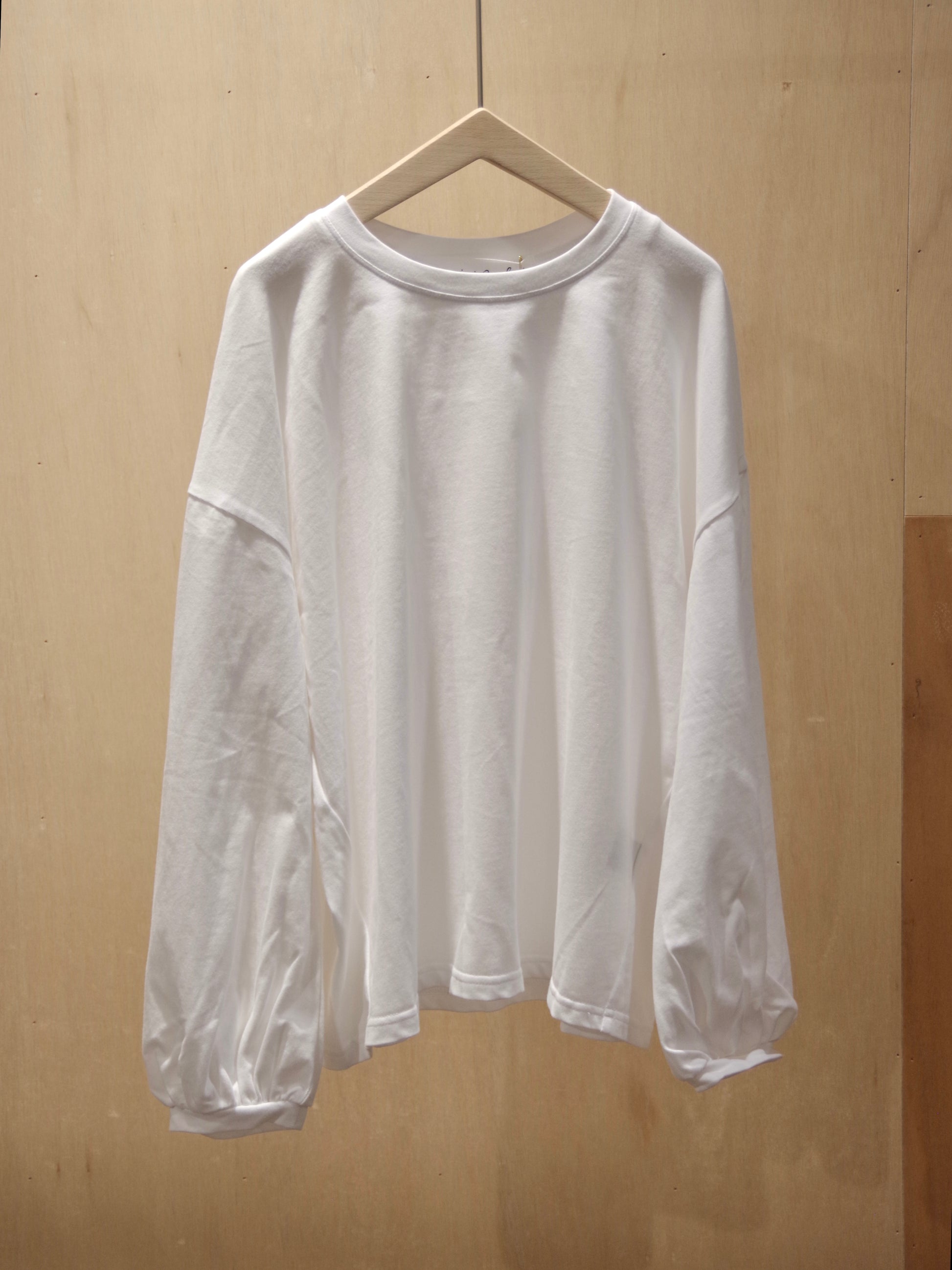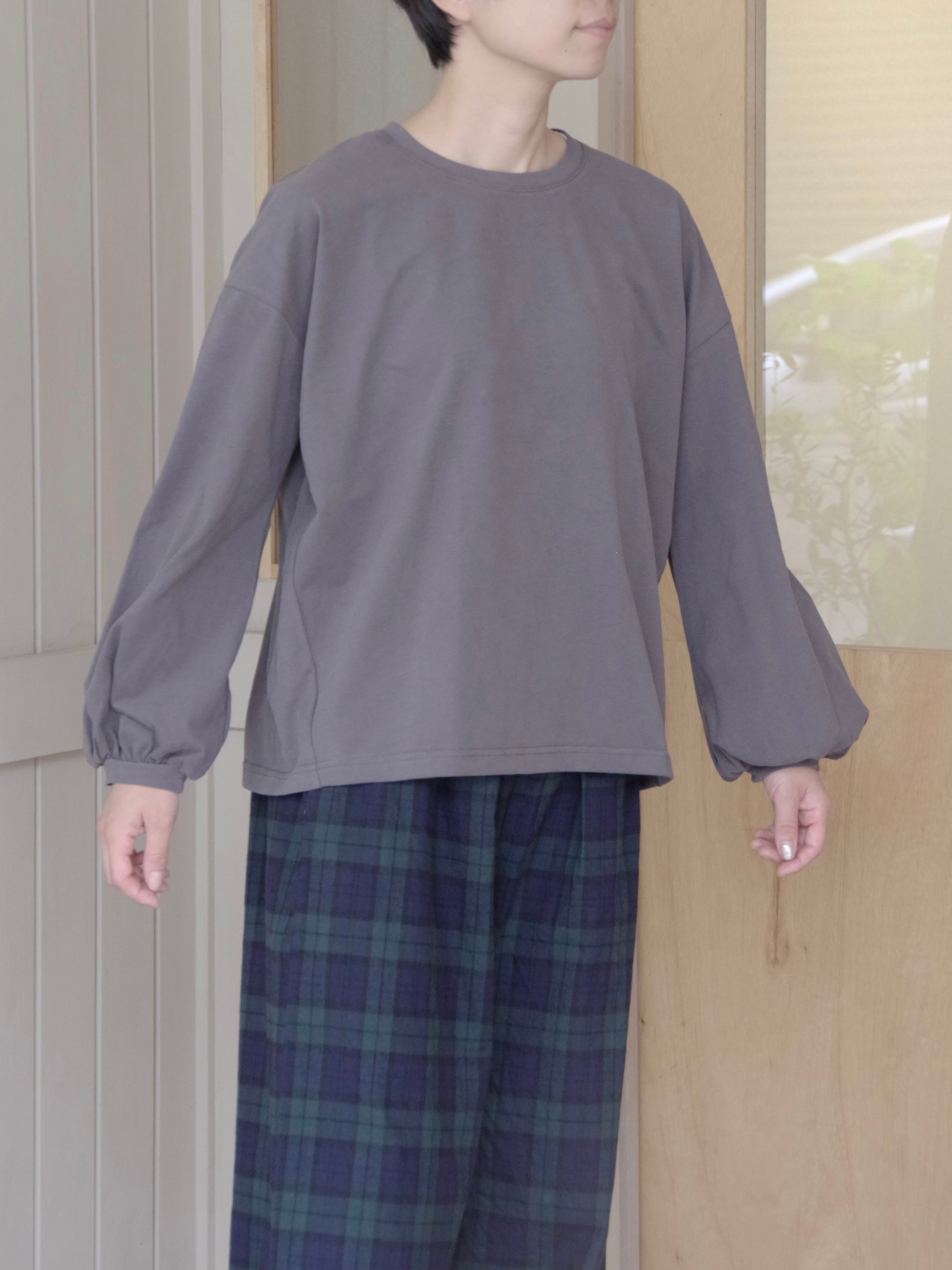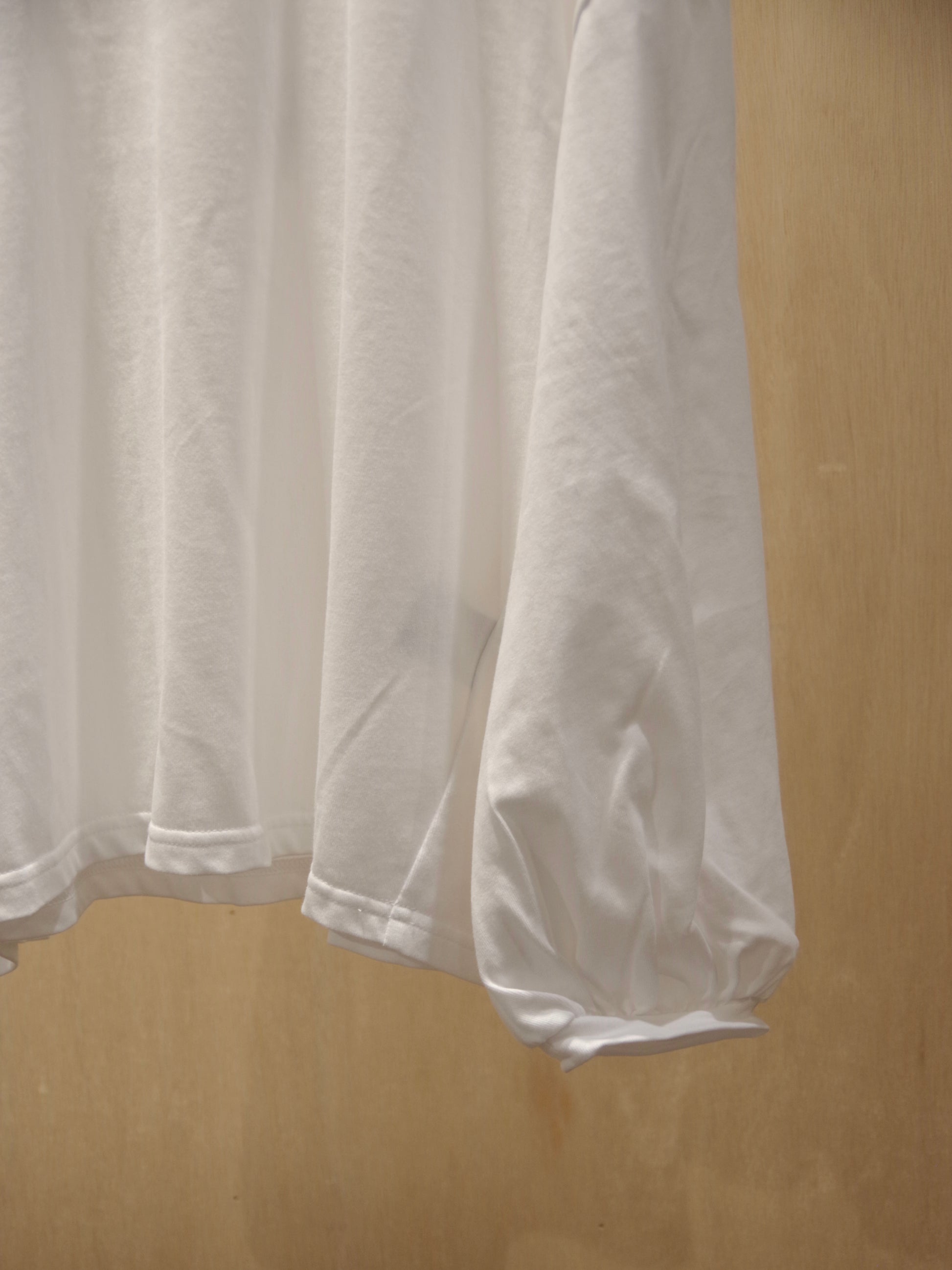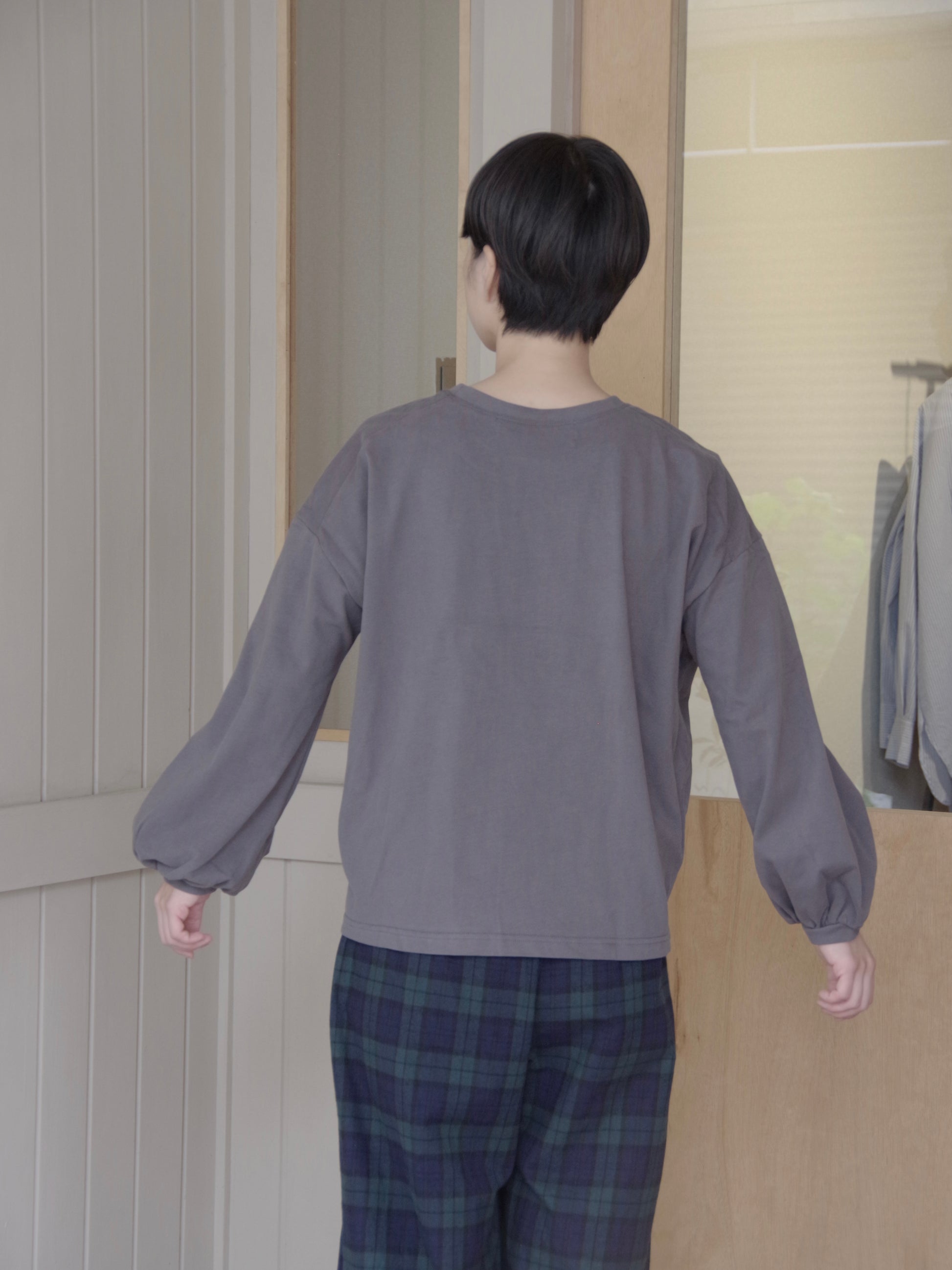 1枚でもサロペットやジャンスカのインナーにも使いやすいパフスリーブのカットソーシャツ。程よくゆったりしており、程よいパフスリーブが幼くなりすぎず、とても着やすい一枚です。