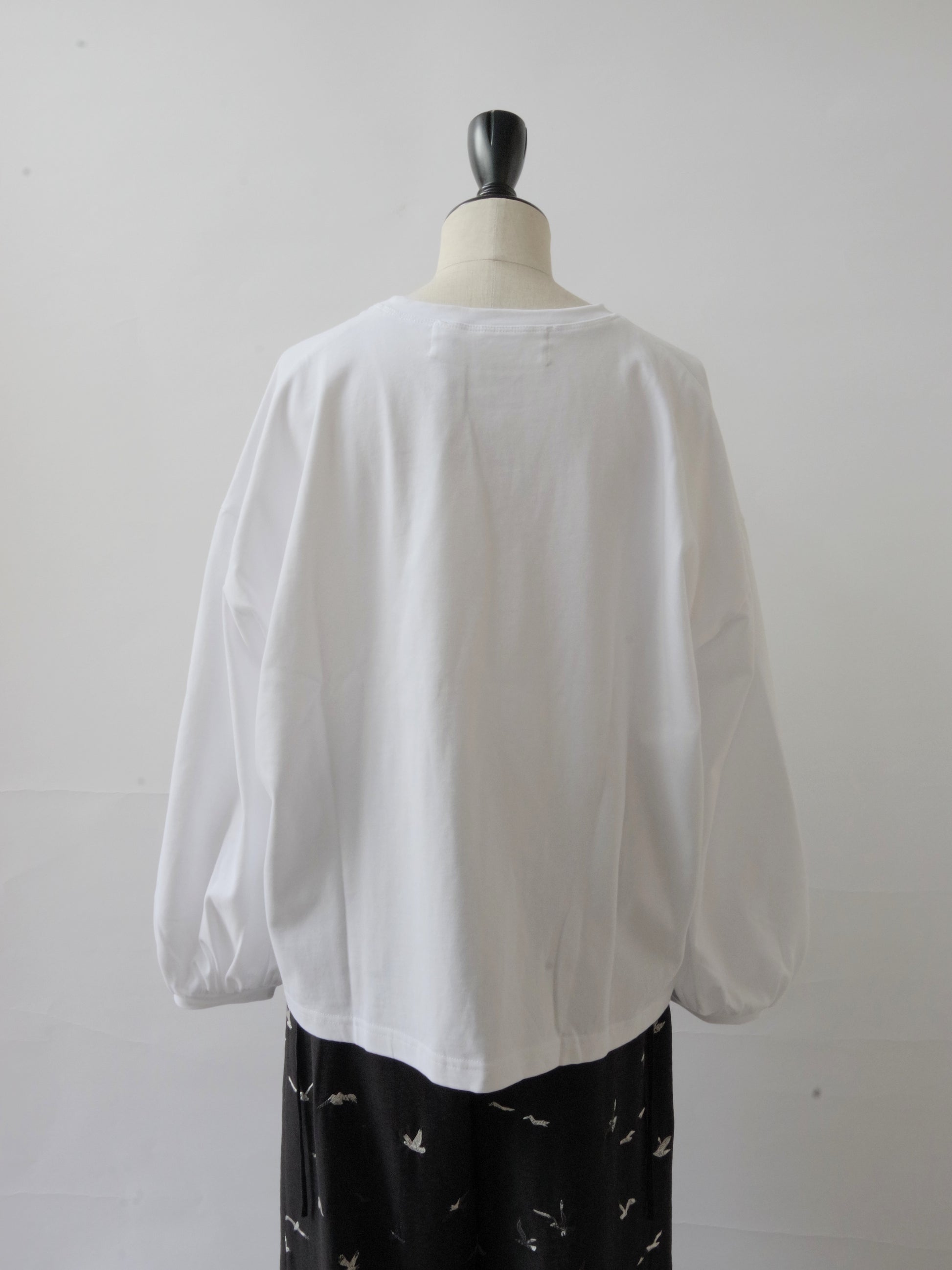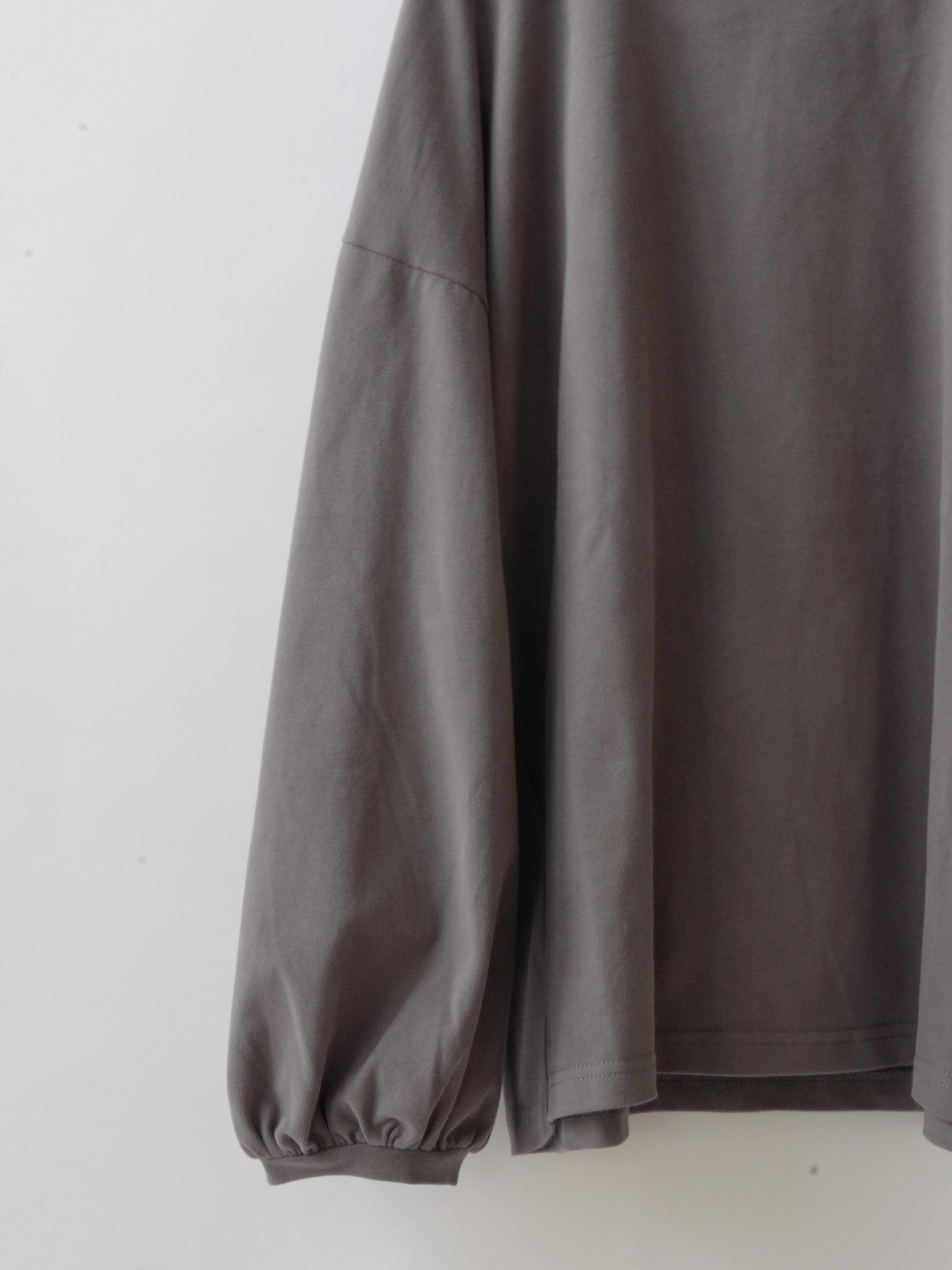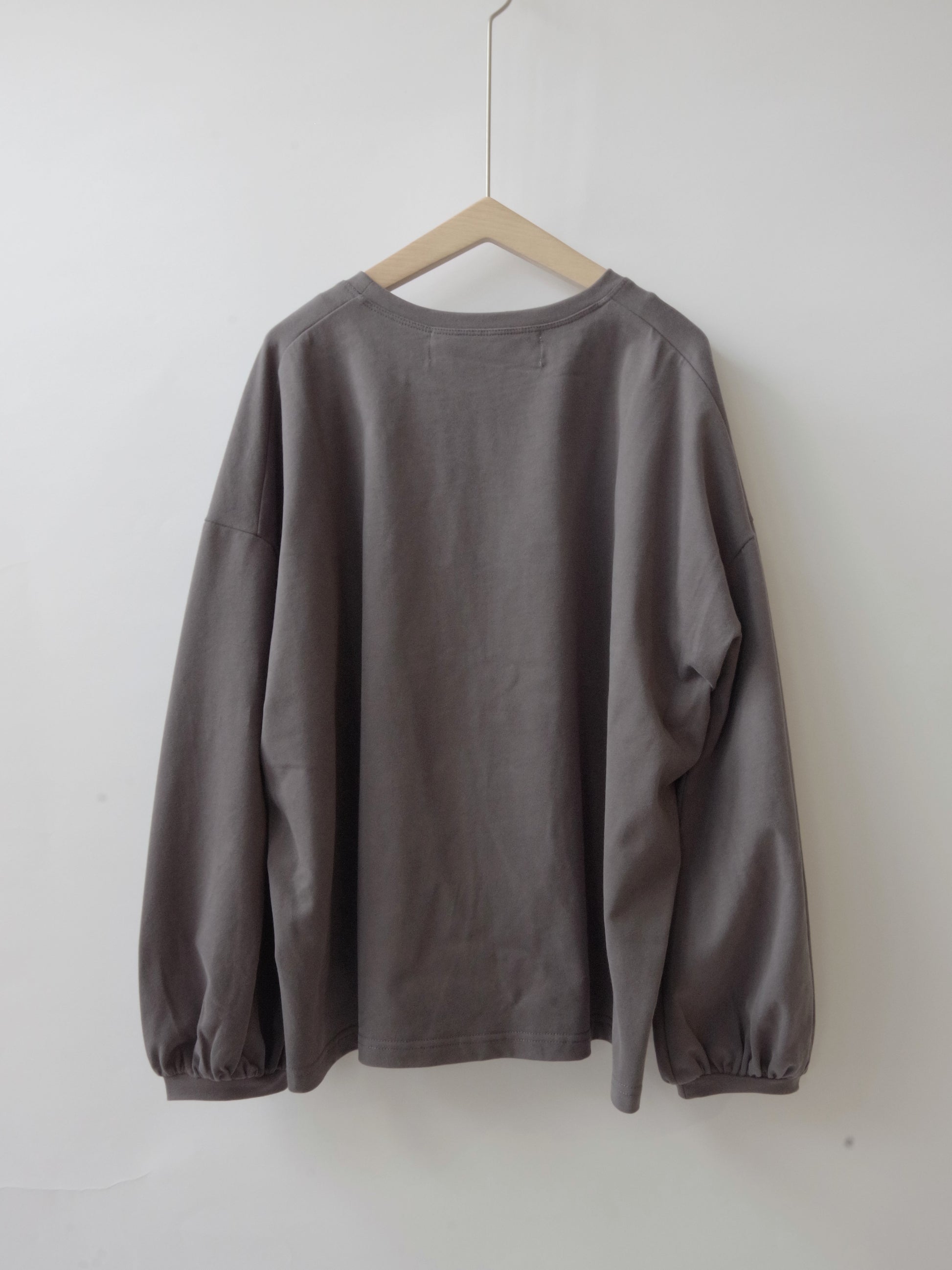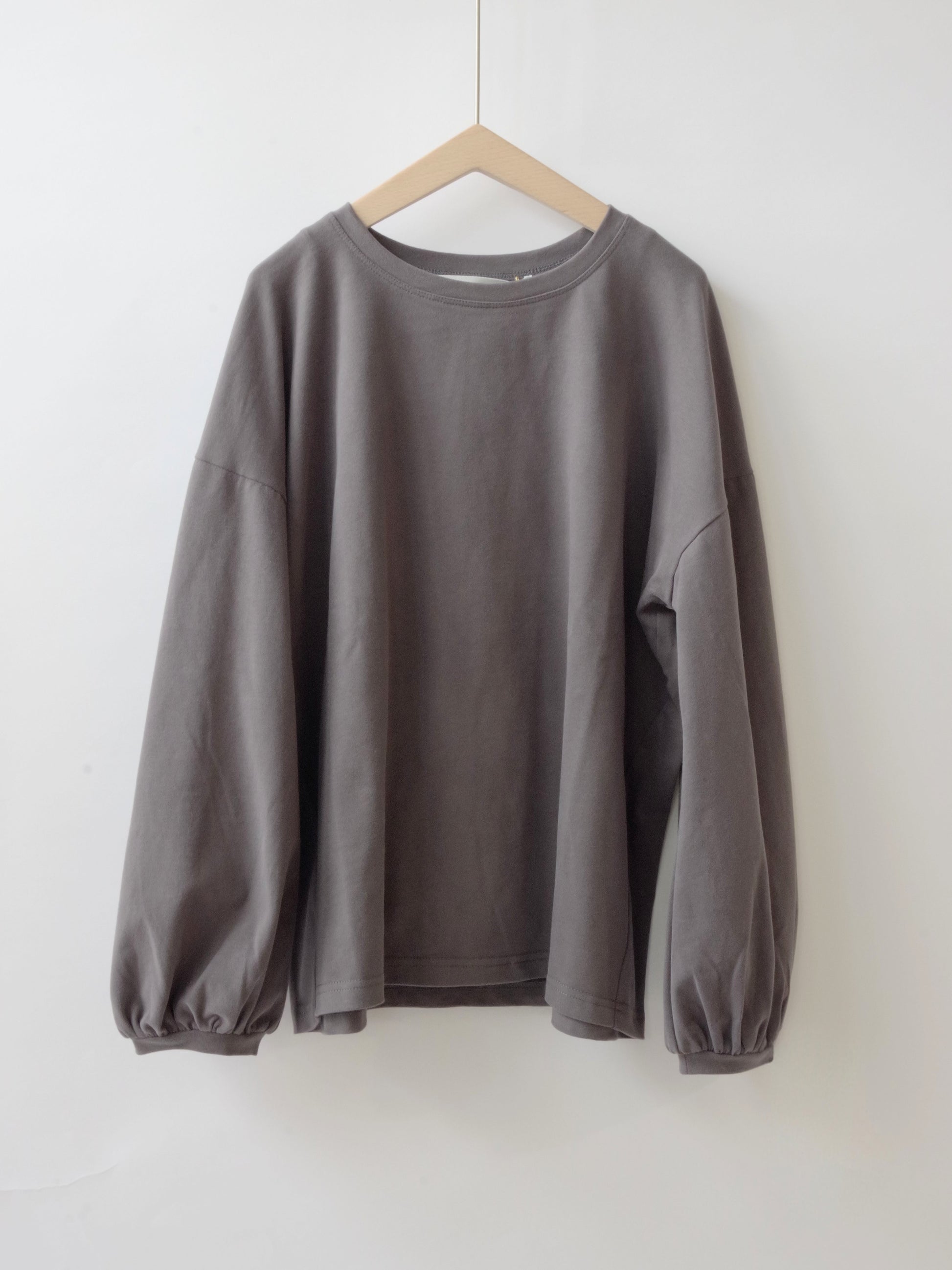 ほどよくゆったりした身幅できやすく、シンプルになりすぎないように袖口にかけて少しパフシルエットになっているお袖がポイントになっています。