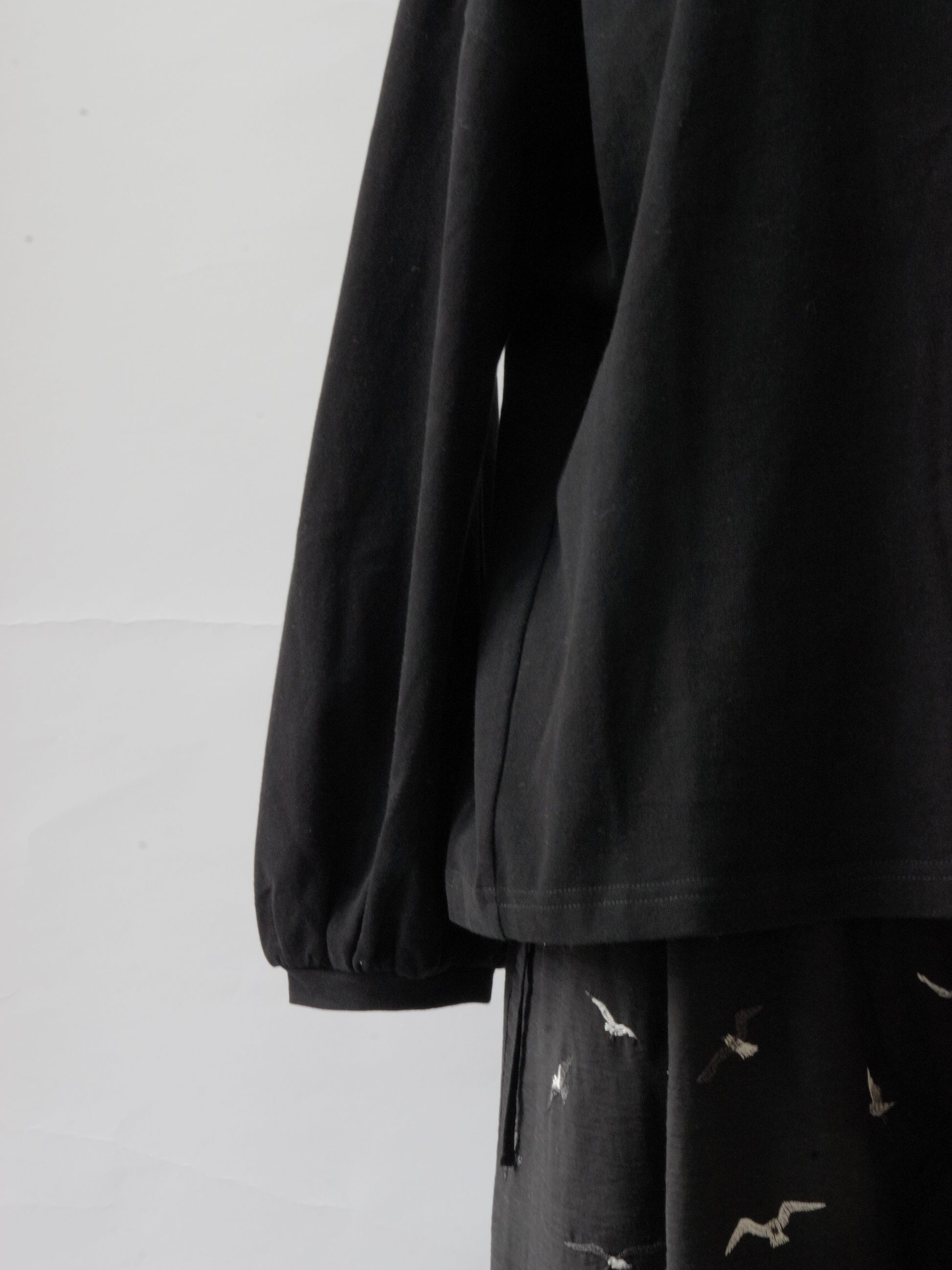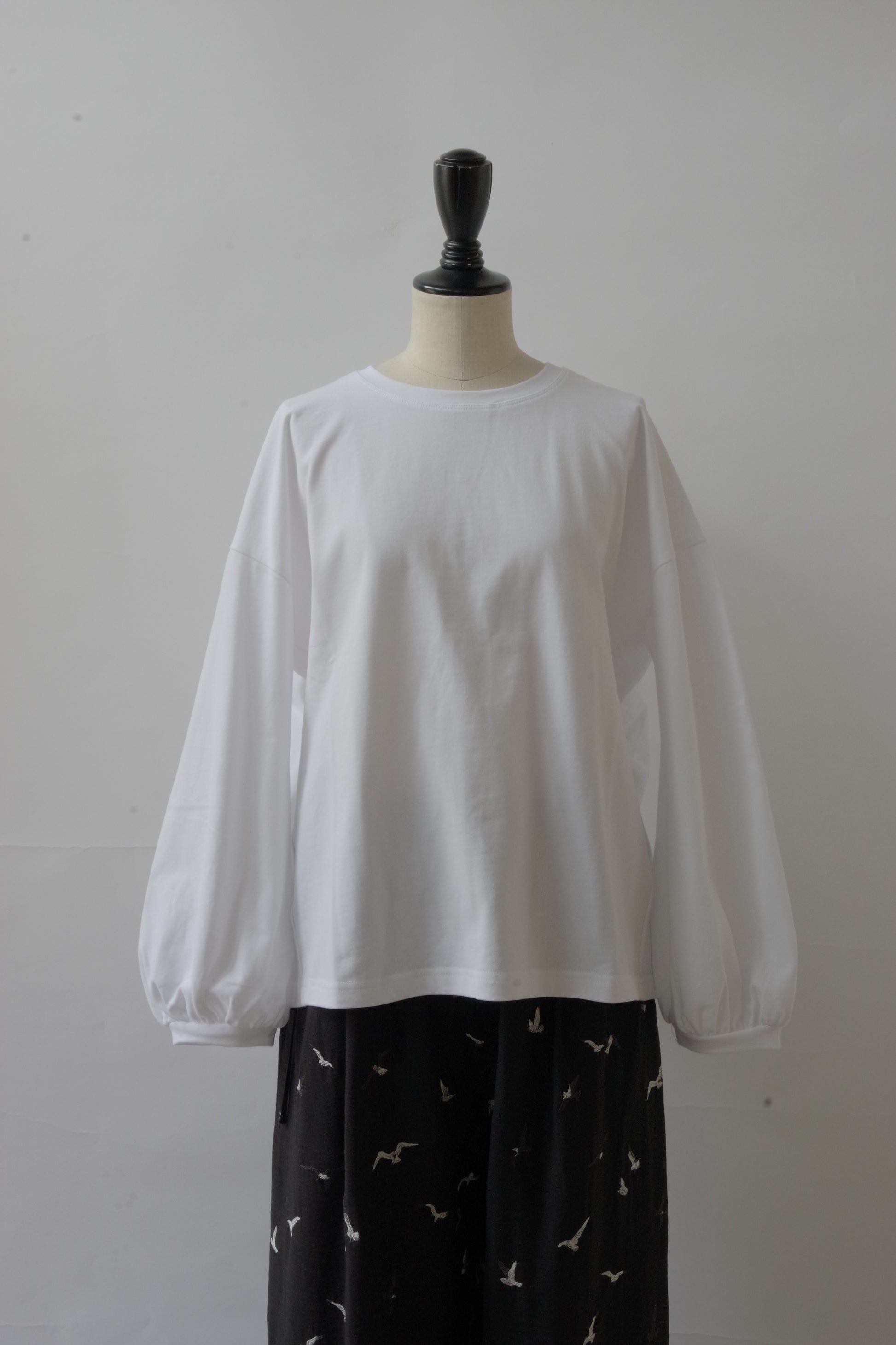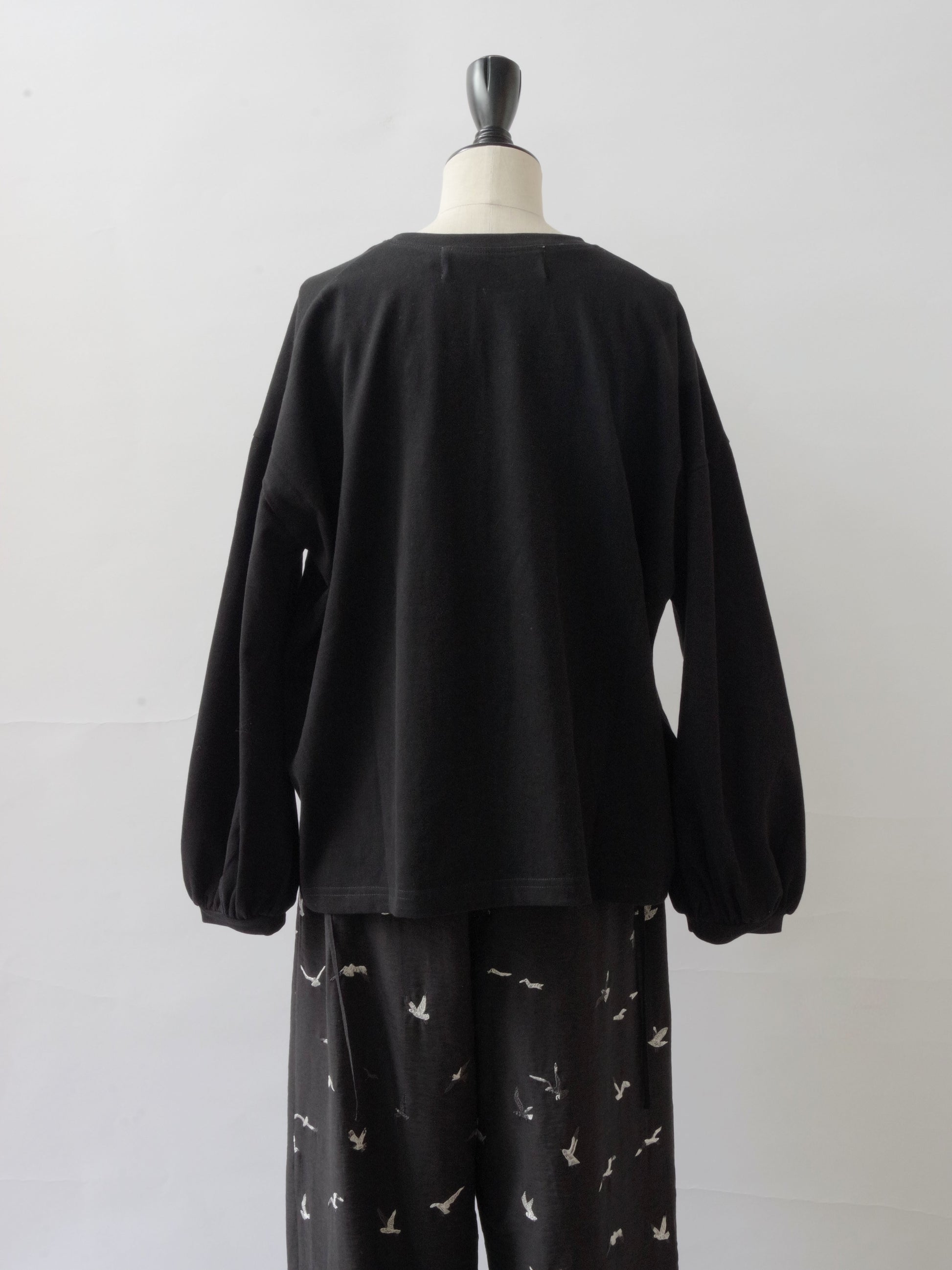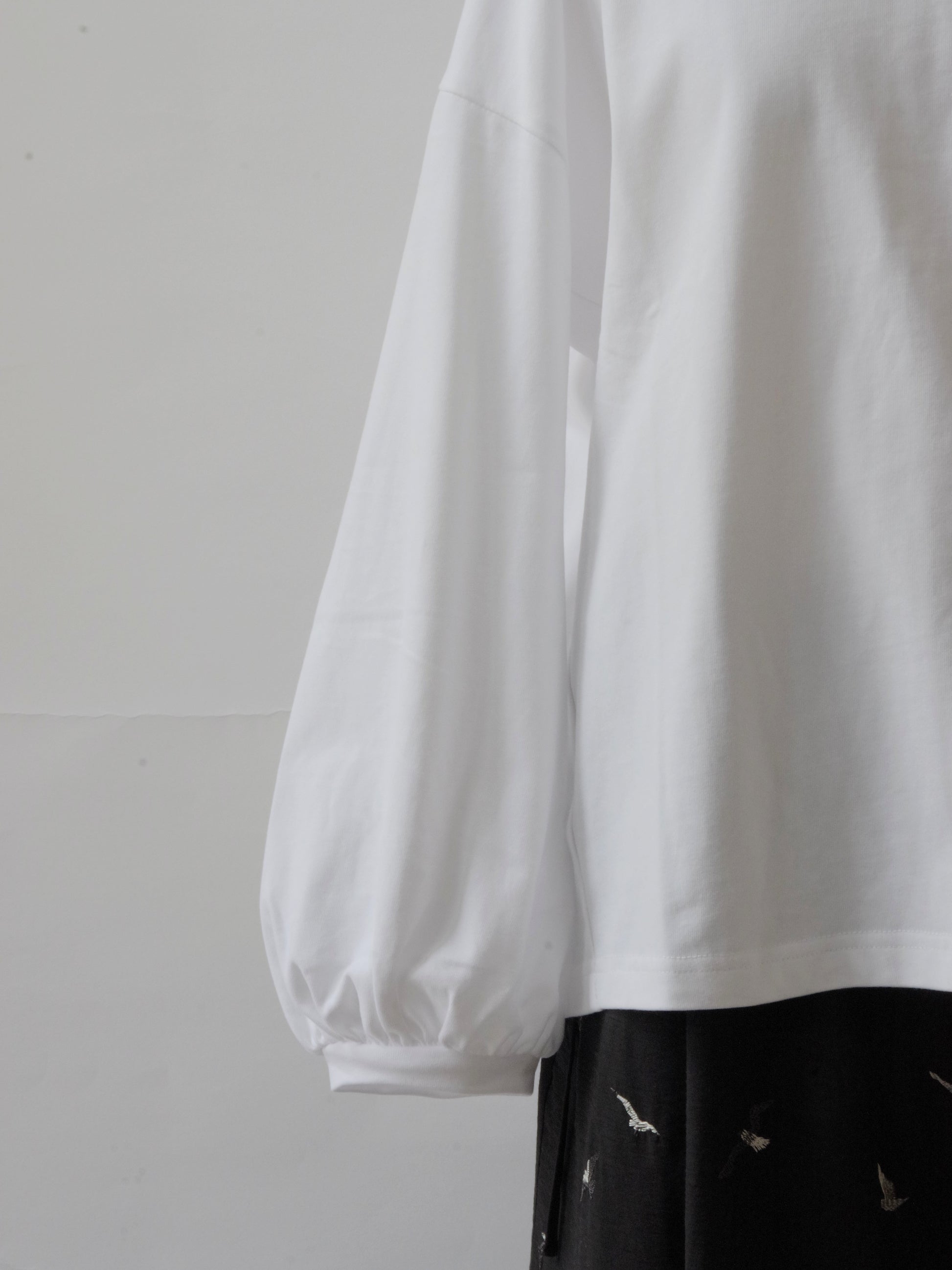 ほどよくゆったりした身幅できやすく、シンプルになりすぎないように袖口にかけて少しパフシルエットになっているお袖がポイントになっています。