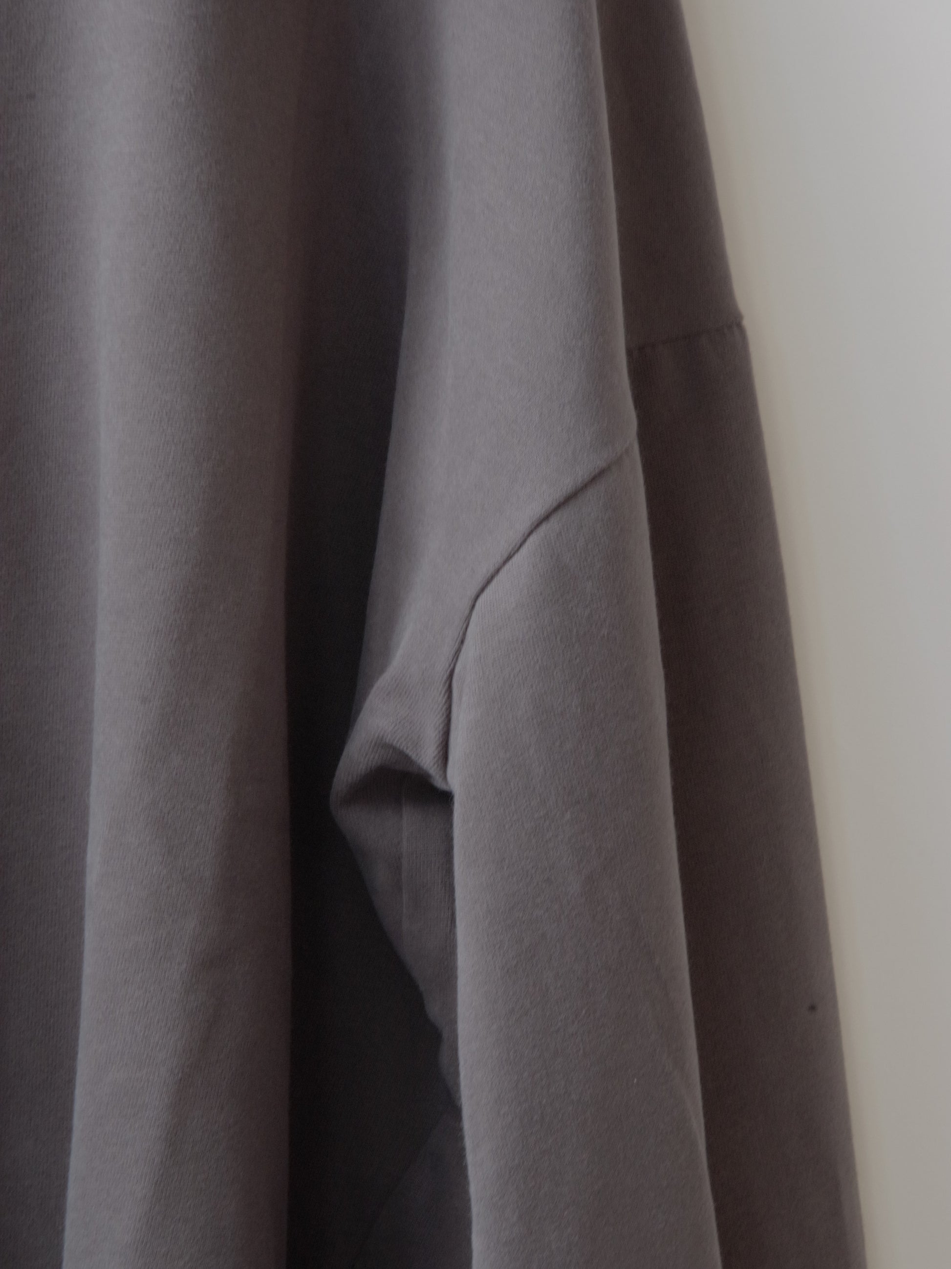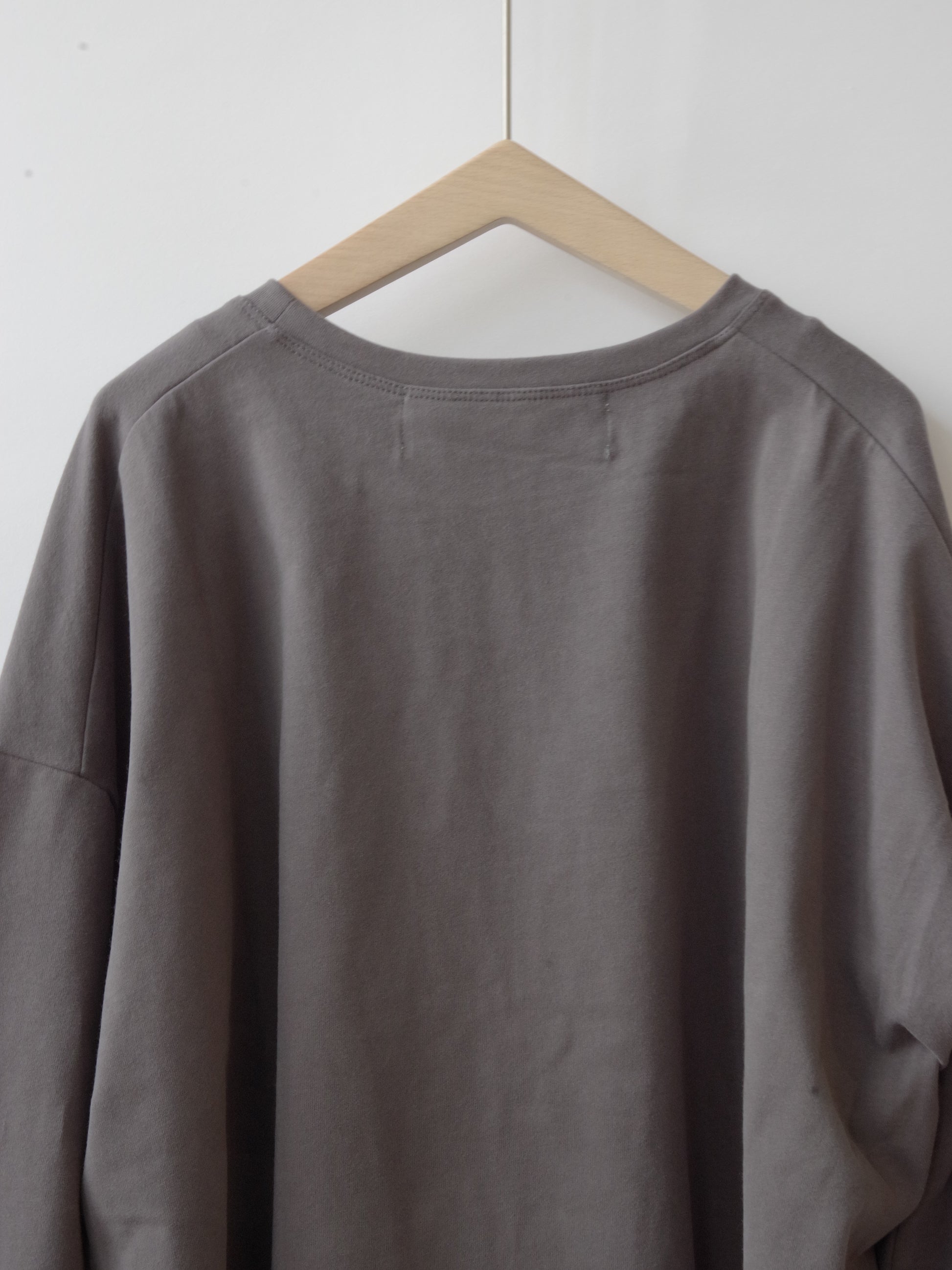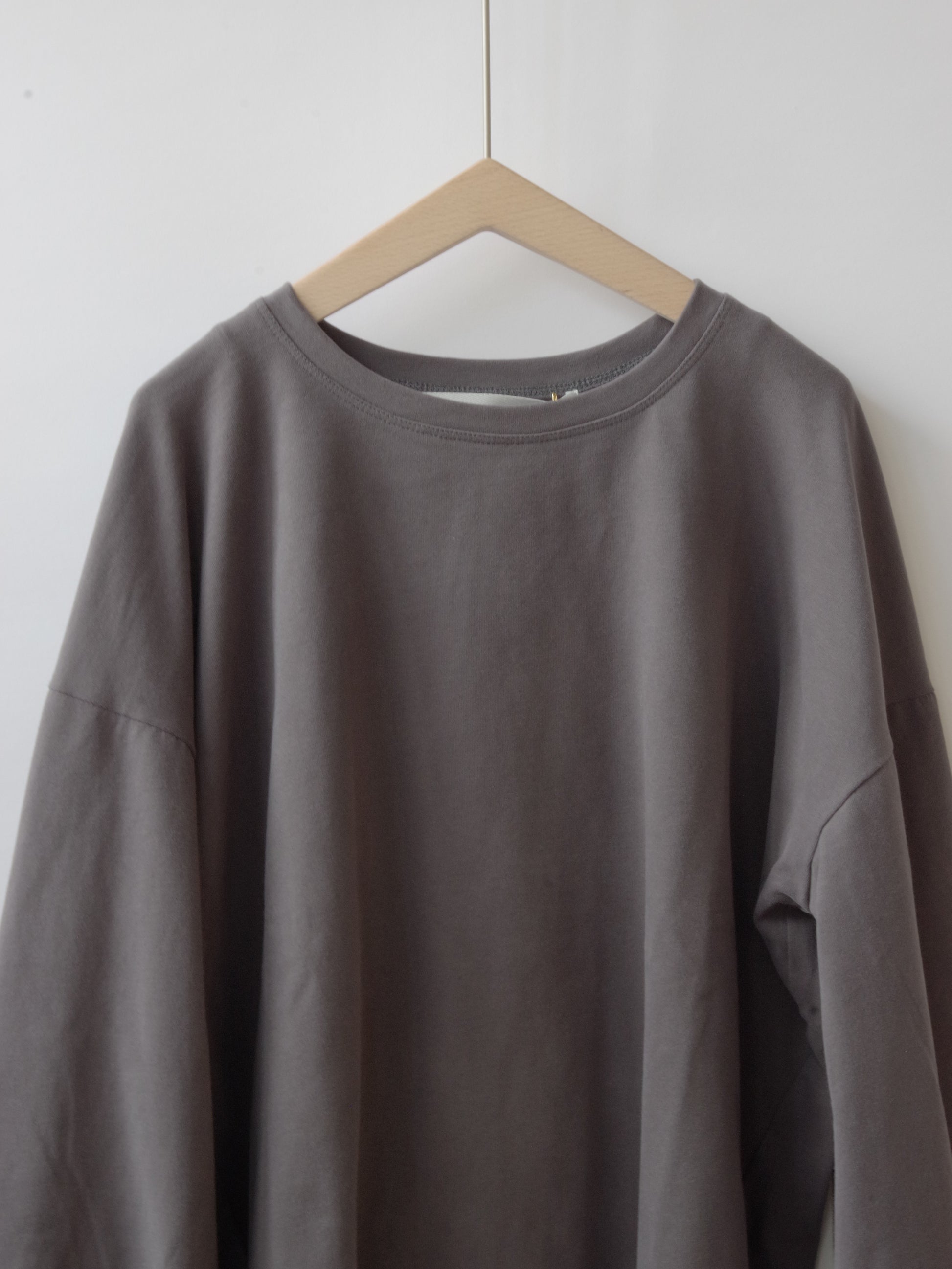 コットン素材の少し肉感のある素材の表側に、微起毛の加工を施しておりスウェードのような触り心地で、マットな色合いが特徴的なカットソーです。