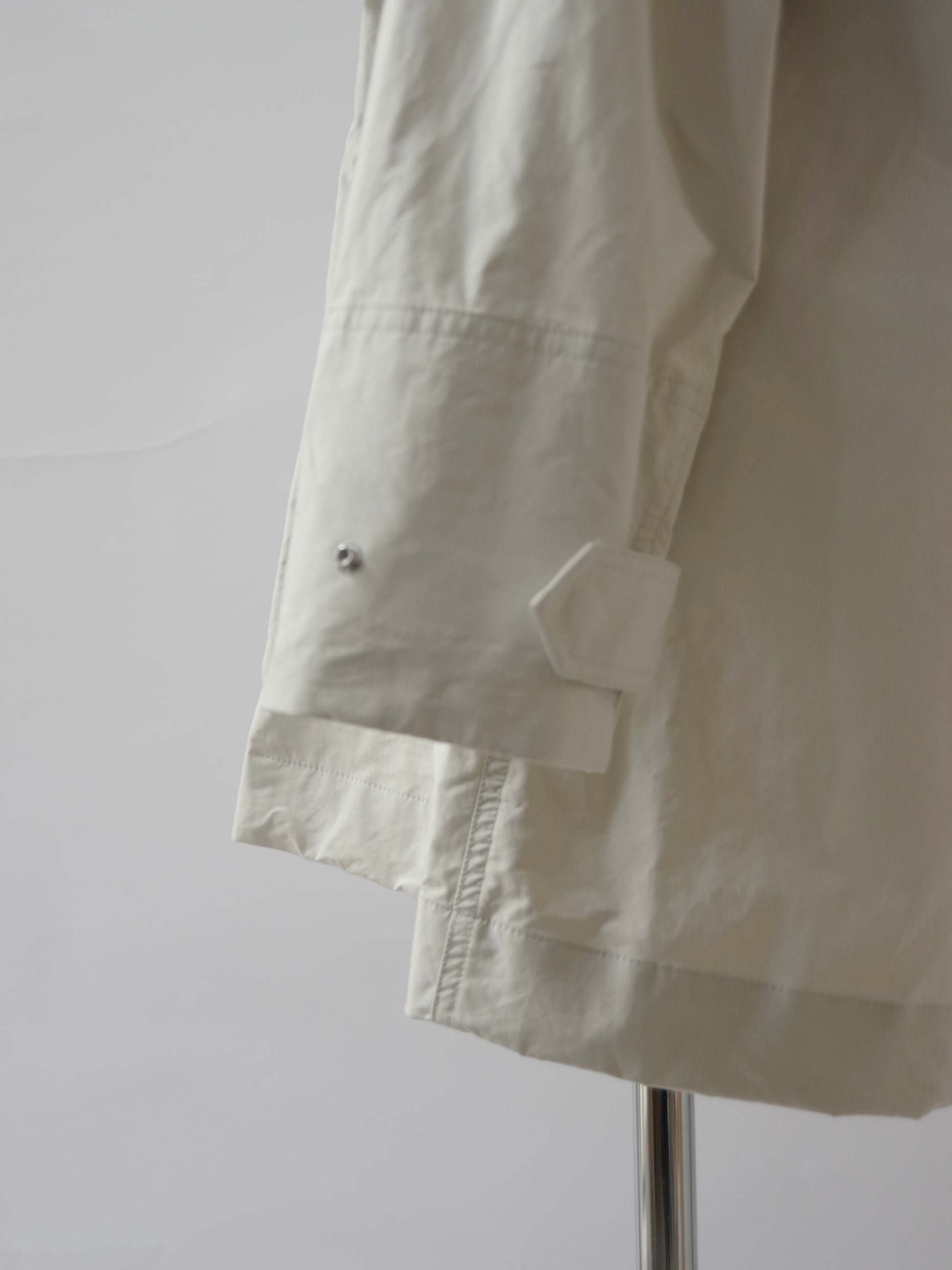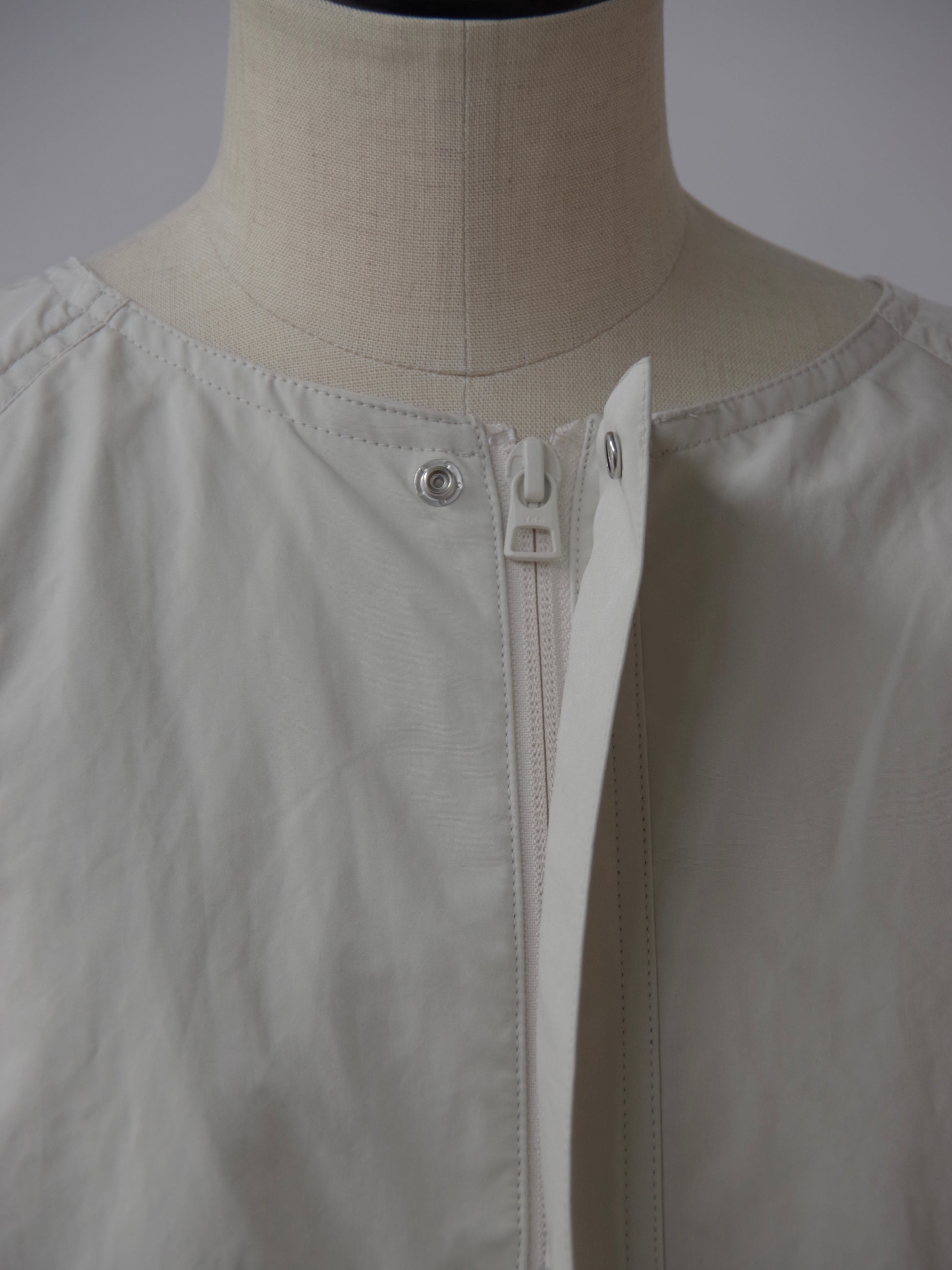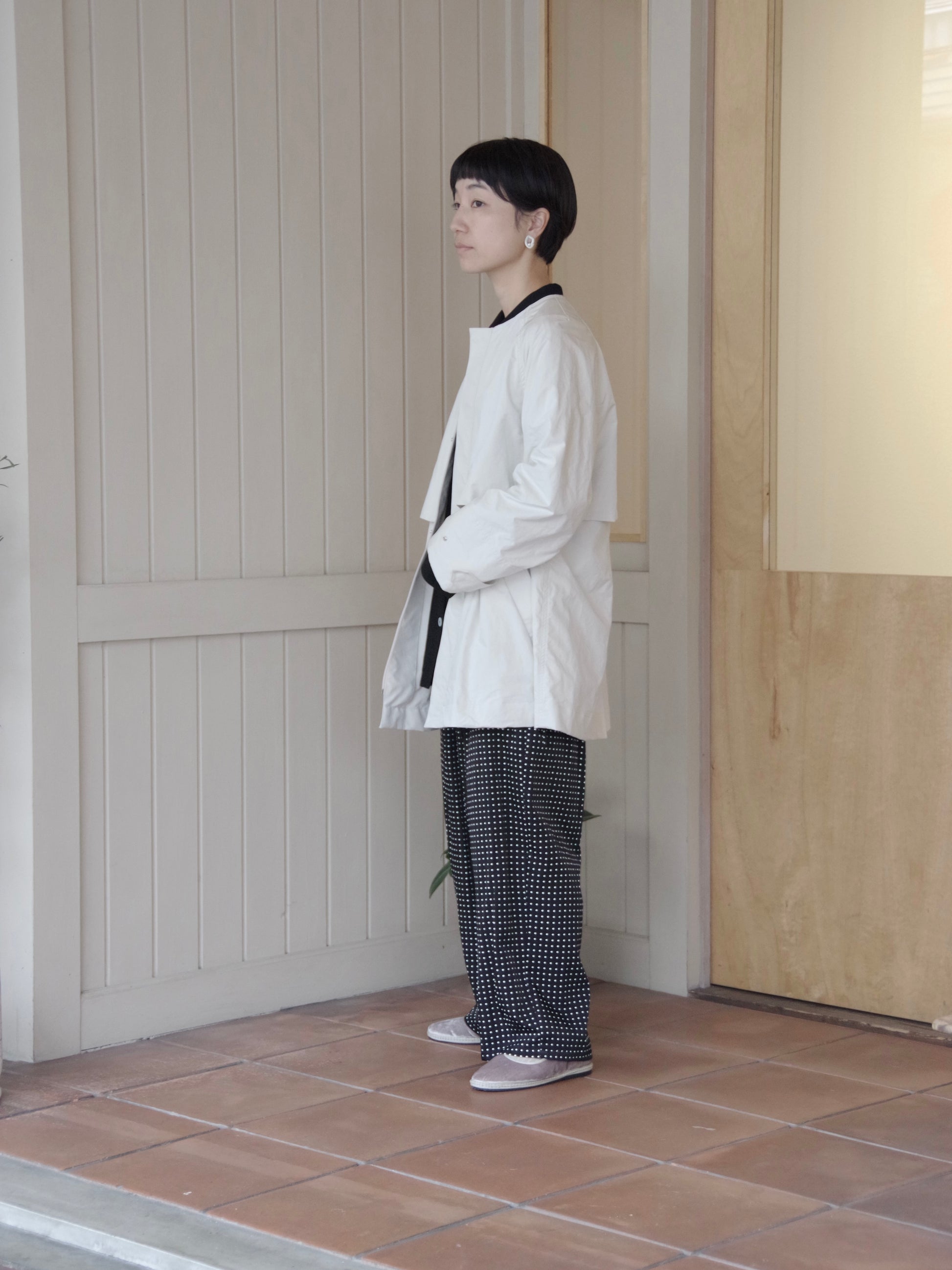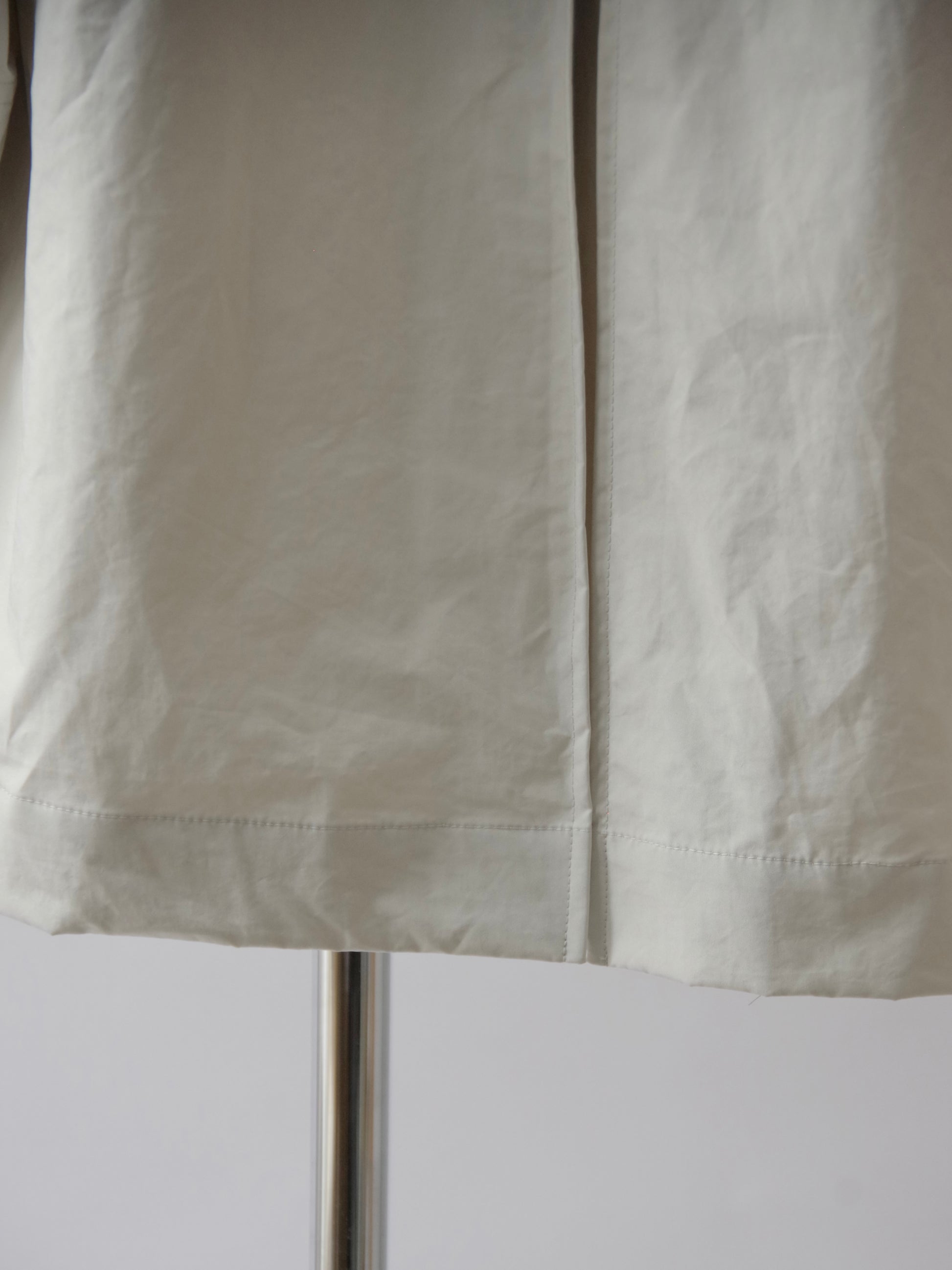 ノーカラーですっきりした襟元、ミドル丈のでつつみこむように防寒性もあるアウターです。ヨークデザインや、背中のタックデザイン。