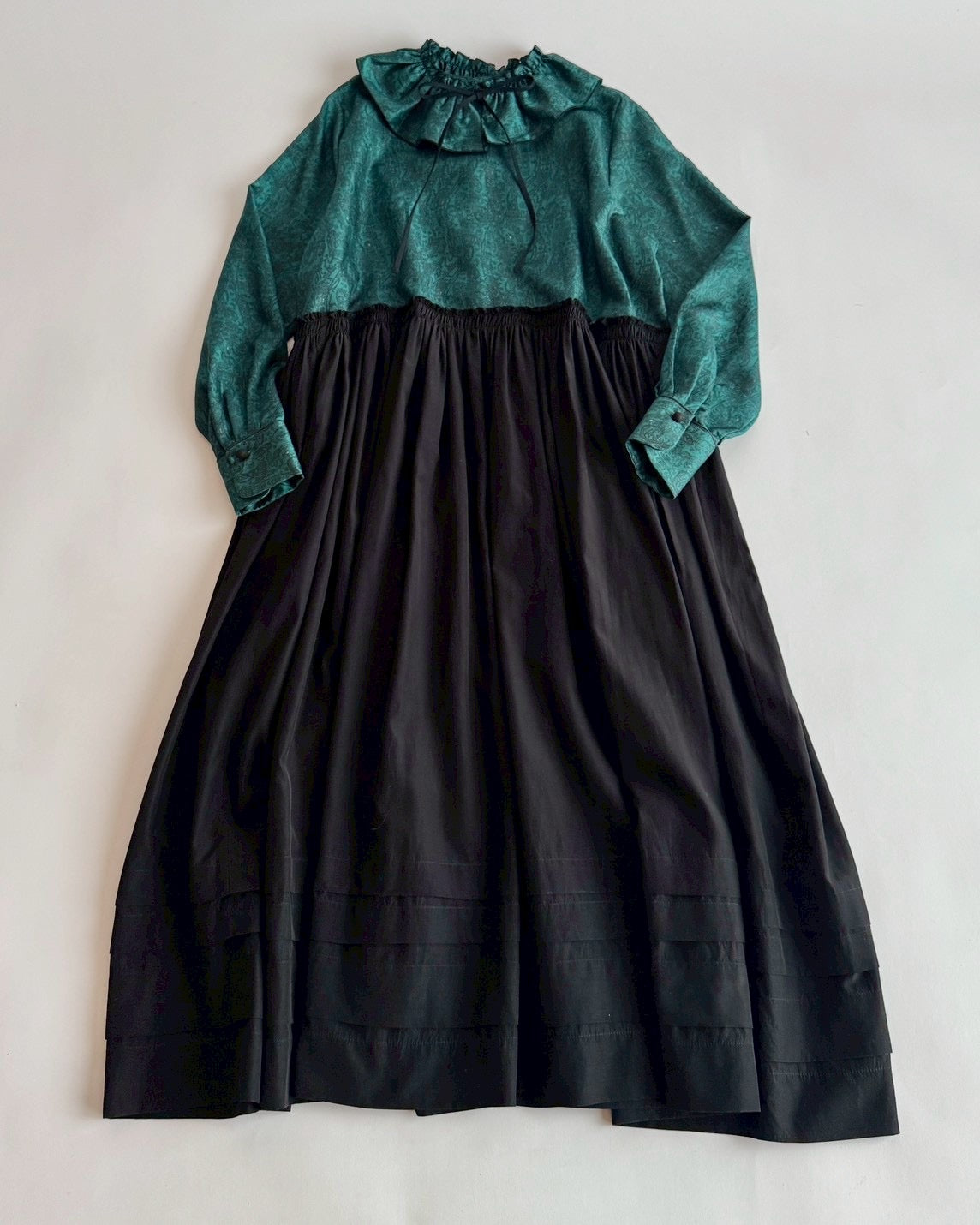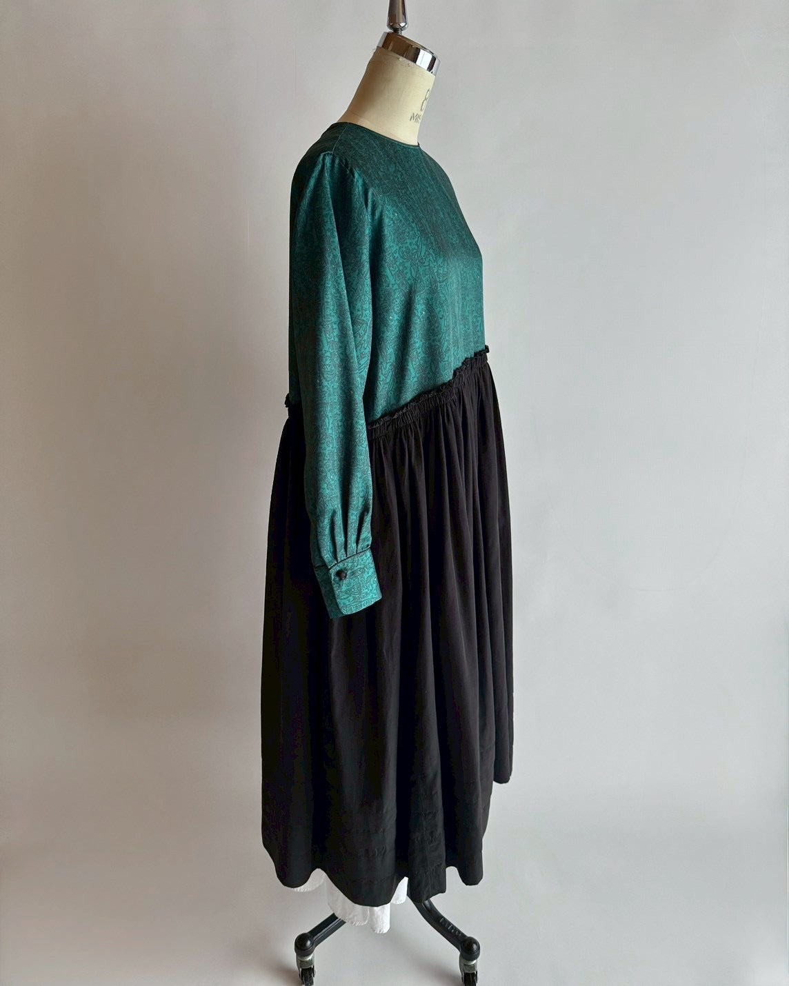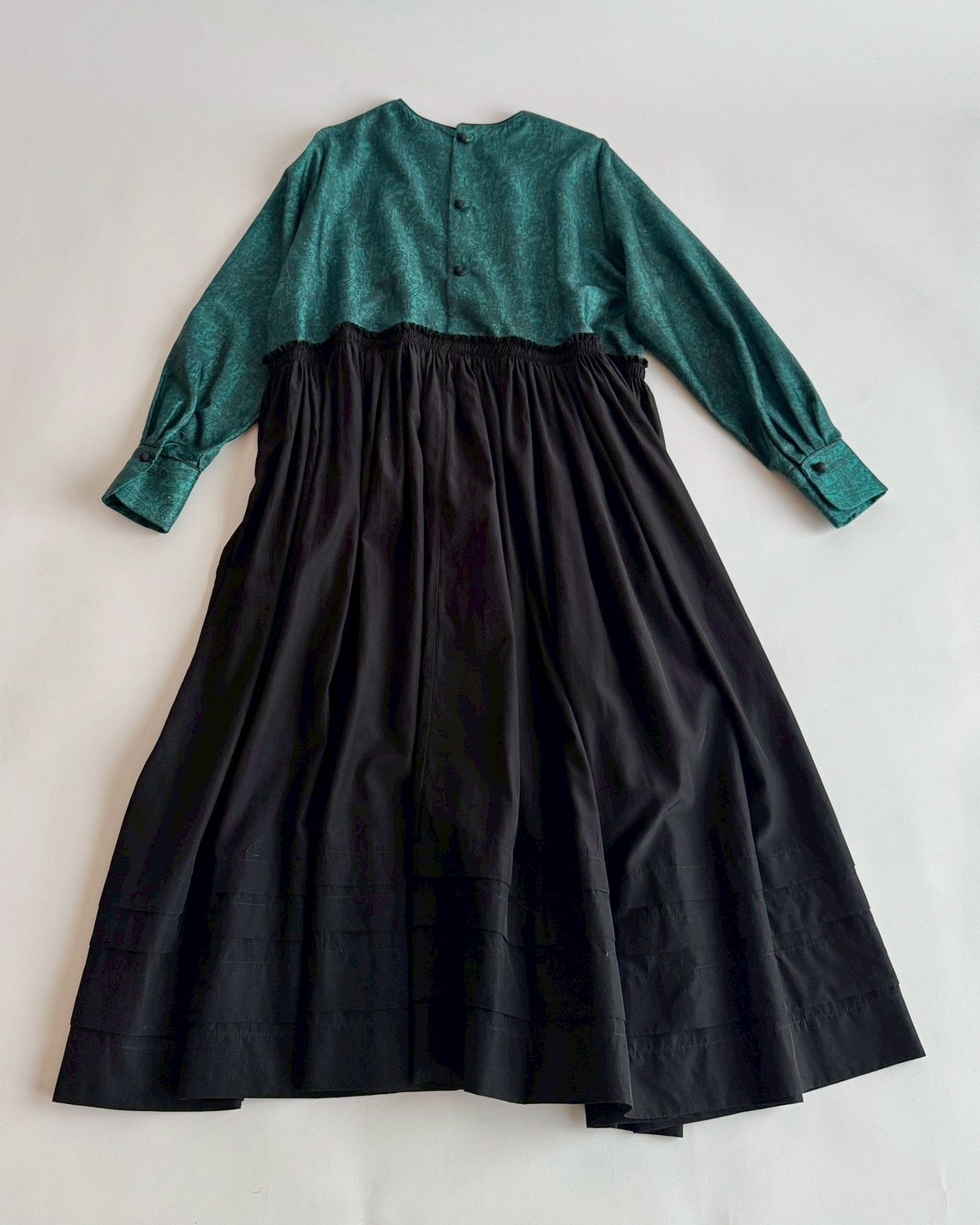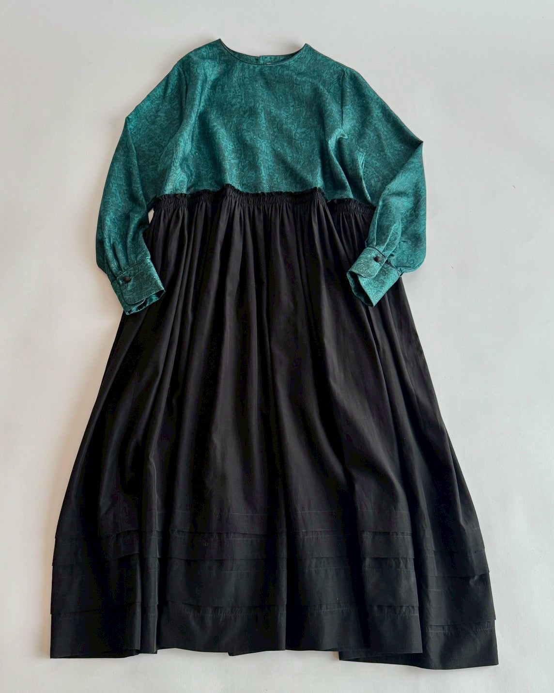 同じくデットストックの生地にギャザーをたっぷり入れて合わせたら素敵なワンピースに生まれ変わりました。