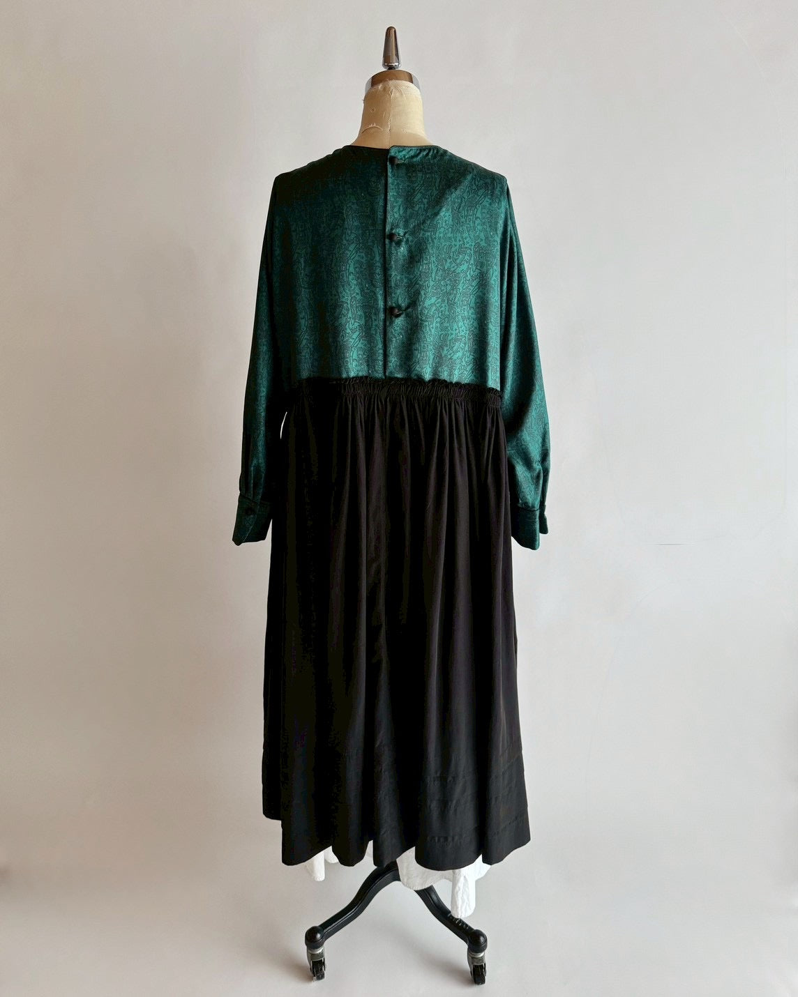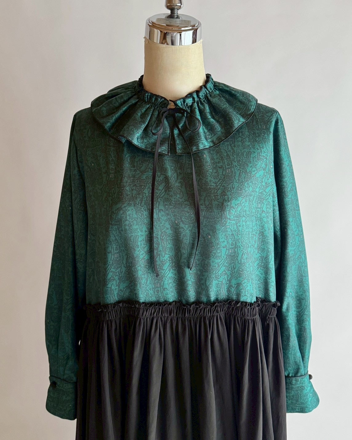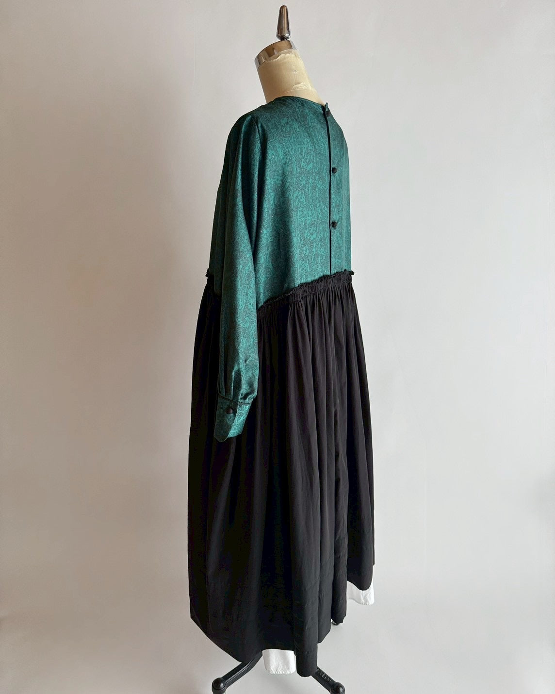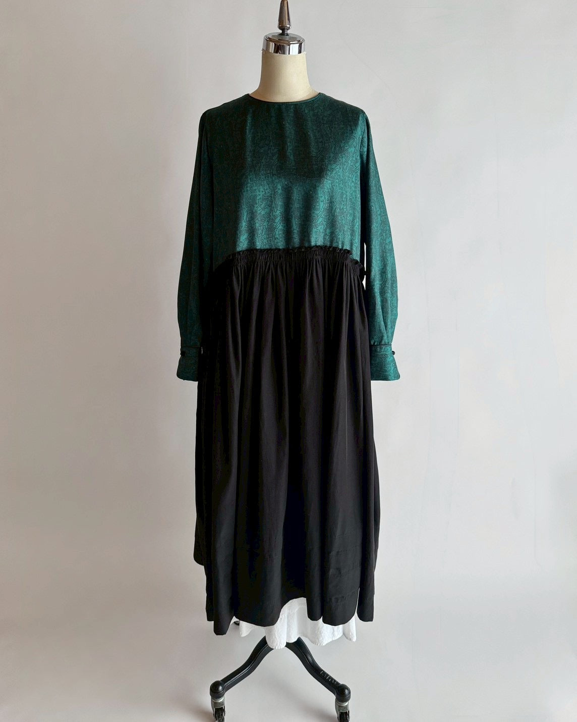 同じくデットストックの生地にギャザーをたっぷり入れて合わせたら素敵なワンピースに生まれ変わりました。