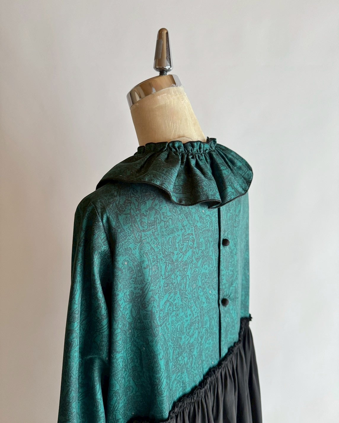 ブラウスの裁ち落とした部分でフリルの付け衿をお作りしました。
