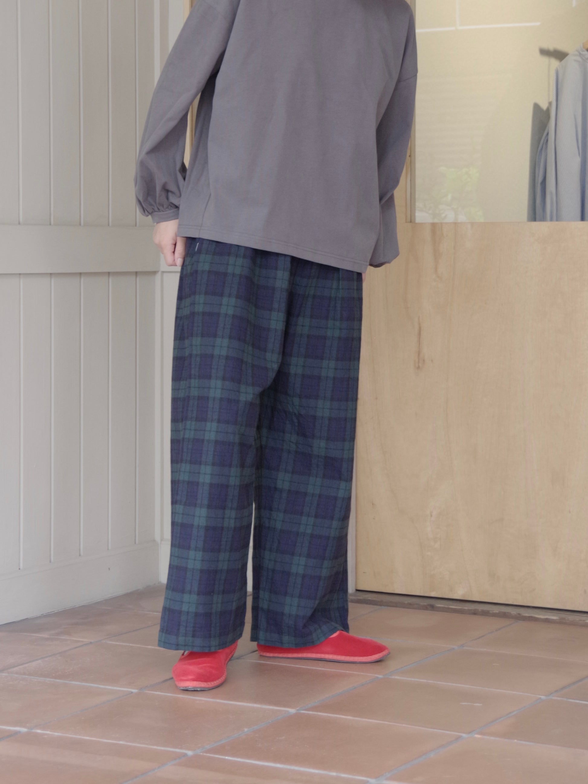 ブラックウォッチ起毛ワイドパンツ | pot and tea