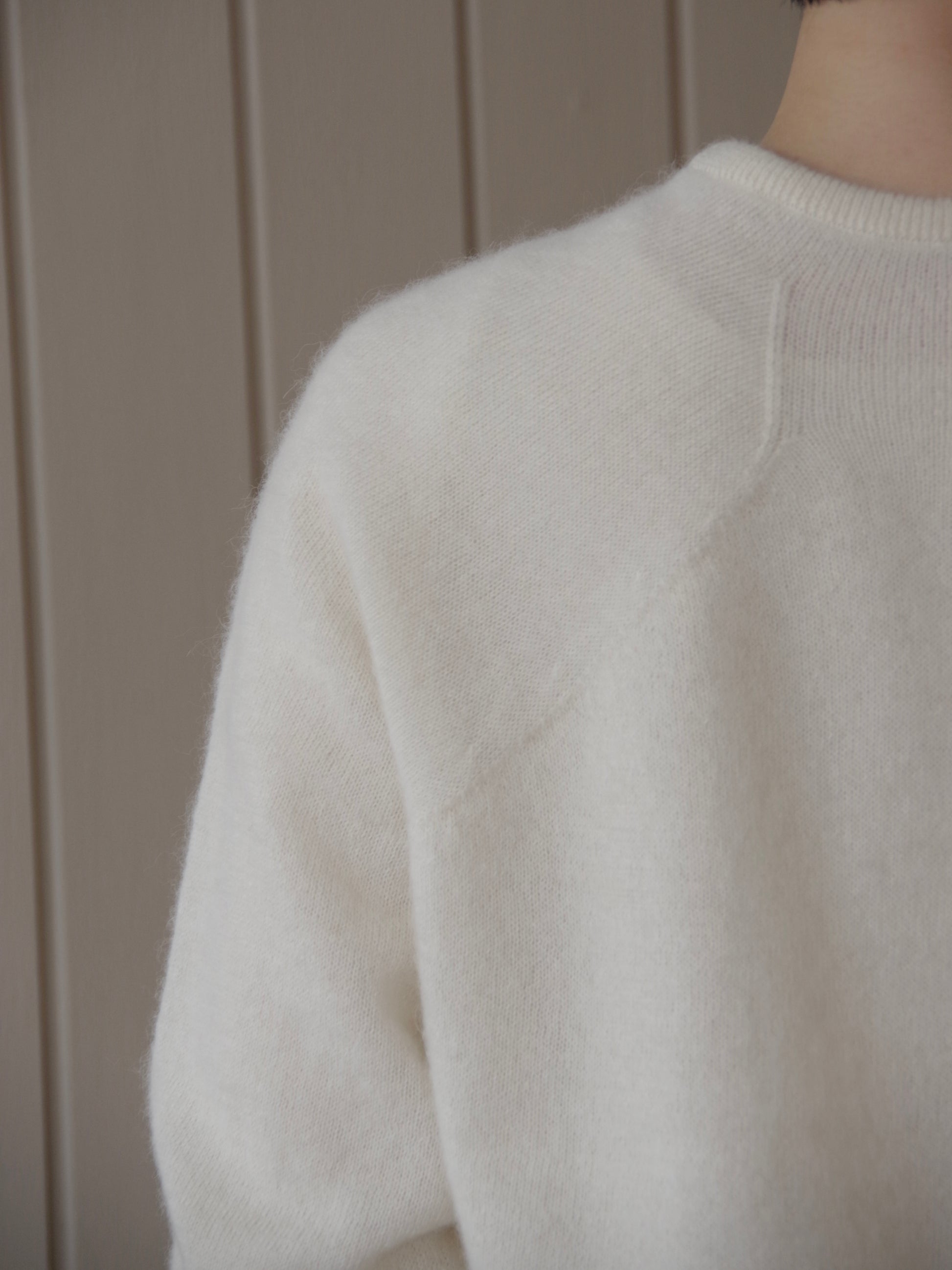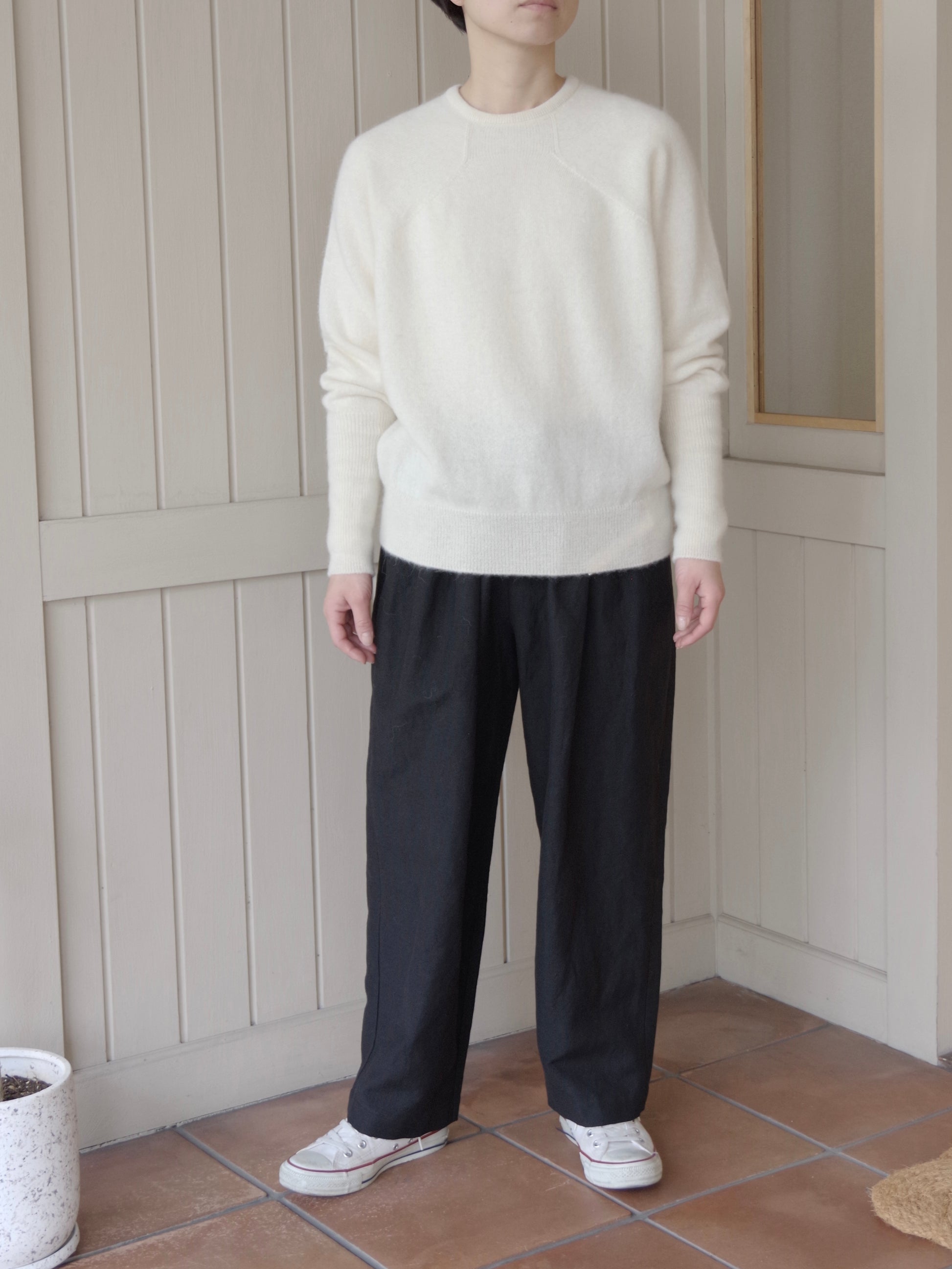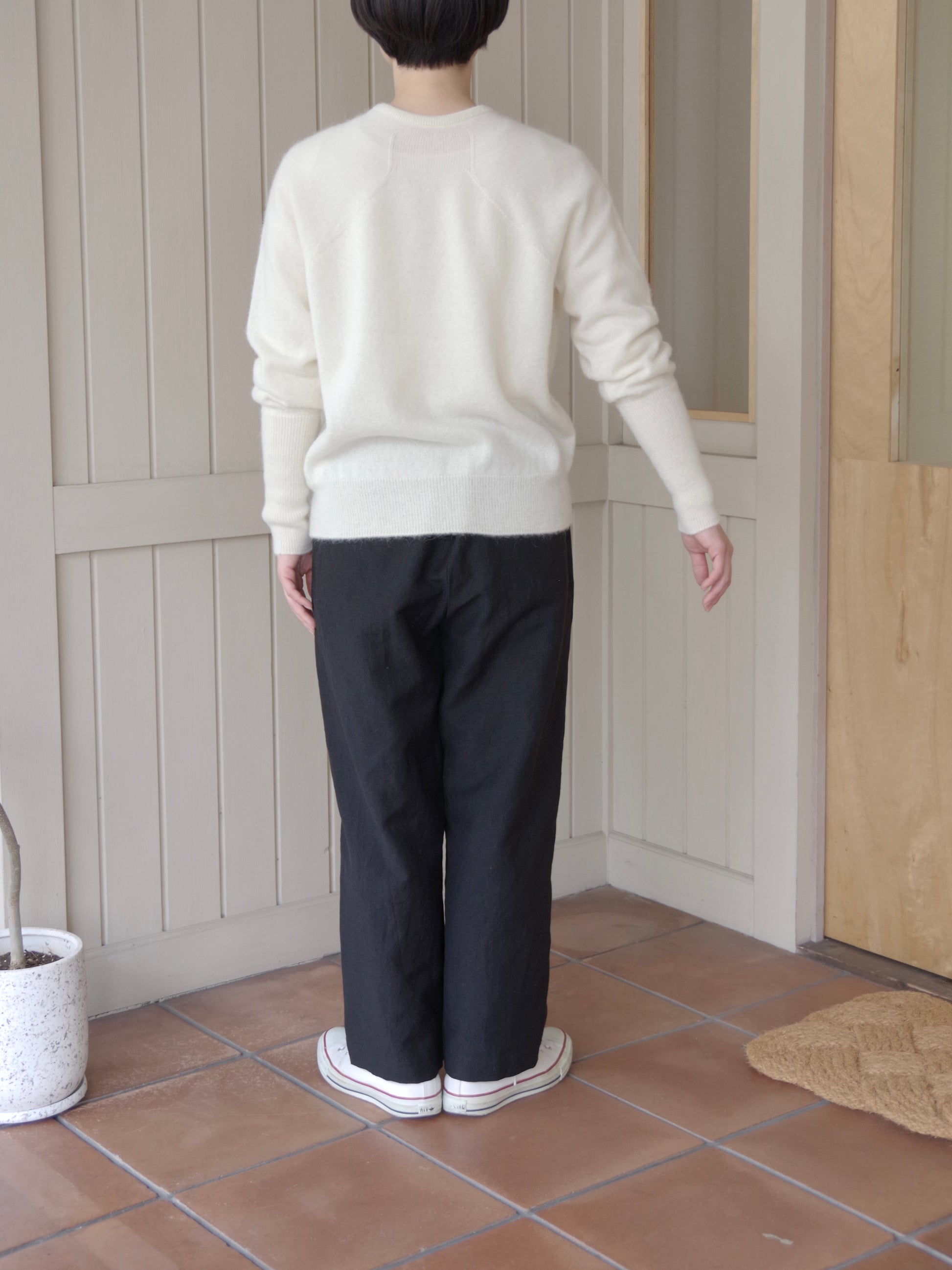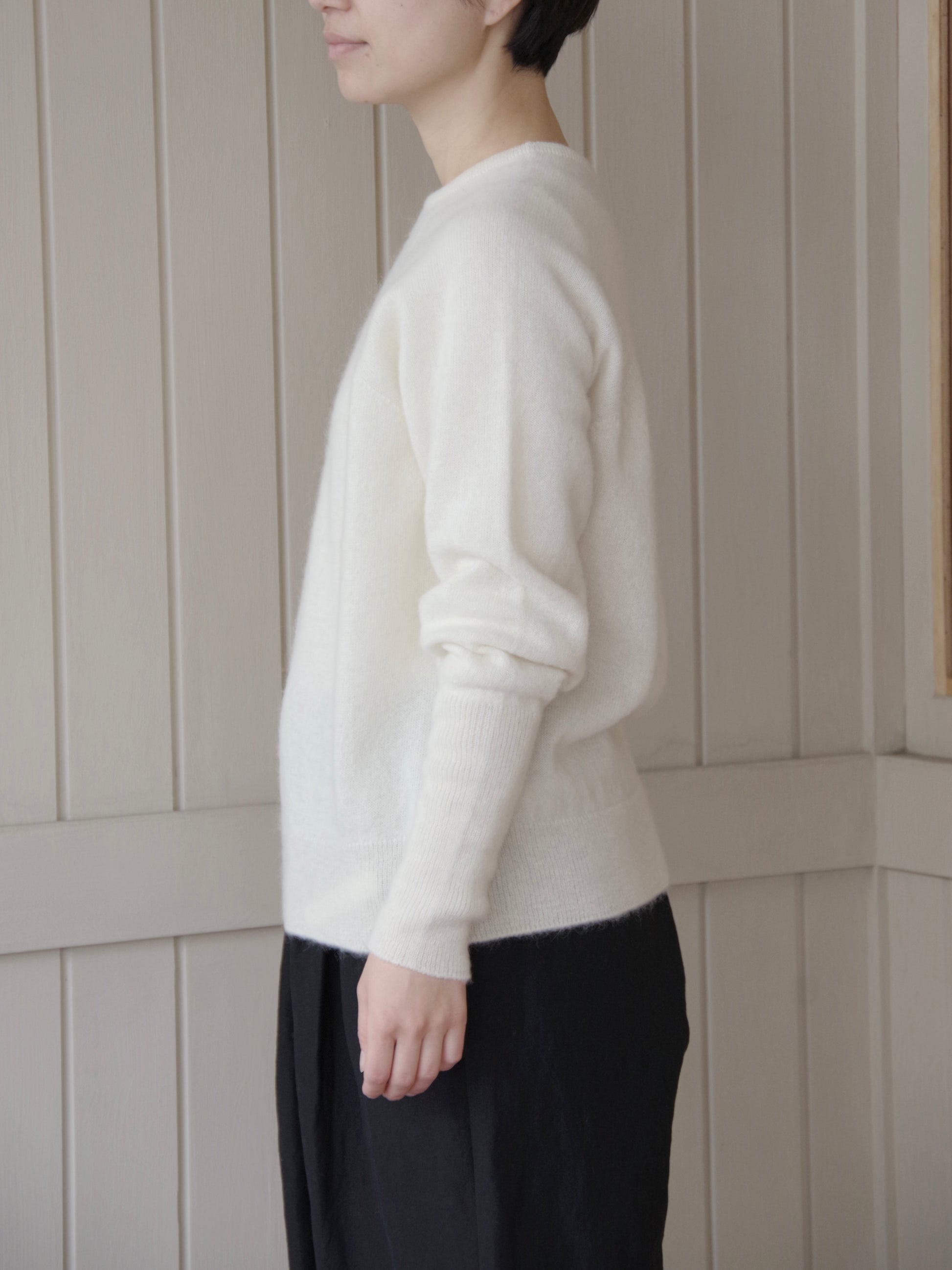 シンプルなプルオーバーですが、袖の長めのリブや肩線の切り替えデザインなどホールガーメントだからこそ表現できるデザインもさり気なく主張してくれるデザインです。