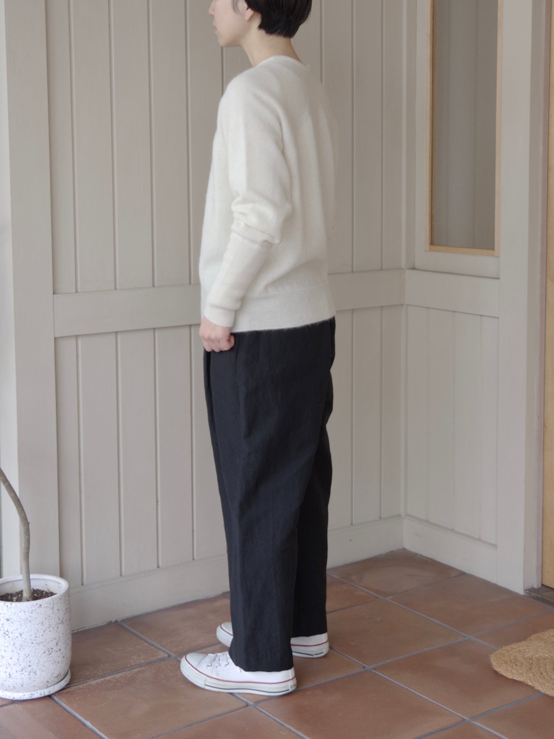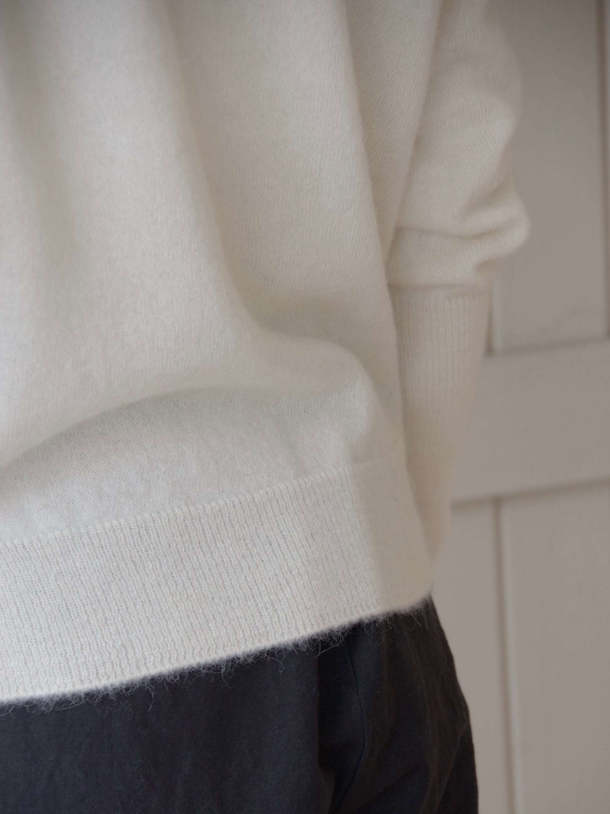 南米アンデス山脈を中心とした高地で生息するアルパカの繊維をたっぷりと使ったニットは、しっとりとしていて柔らかでありながら強さも併せ持った1枚。