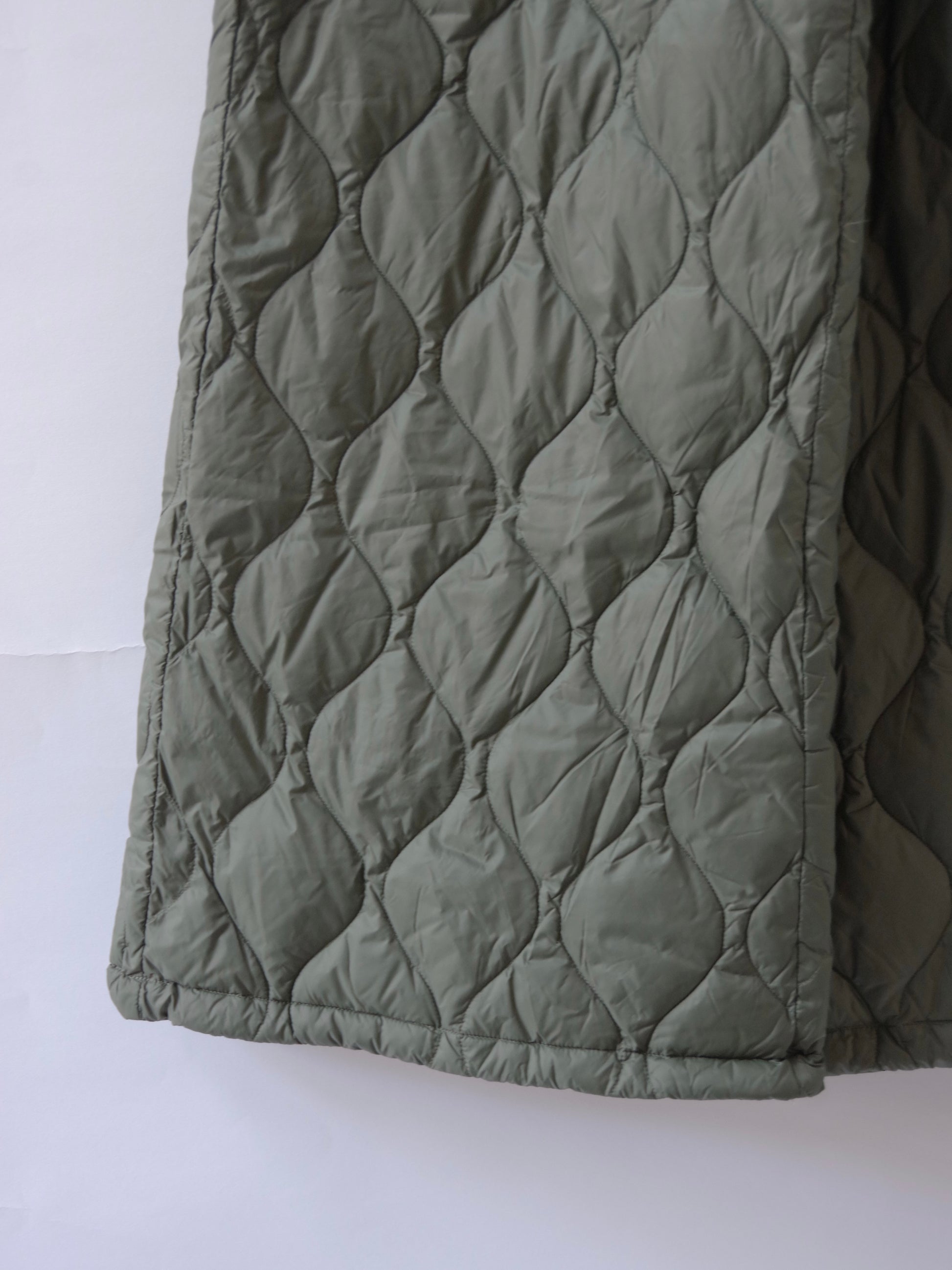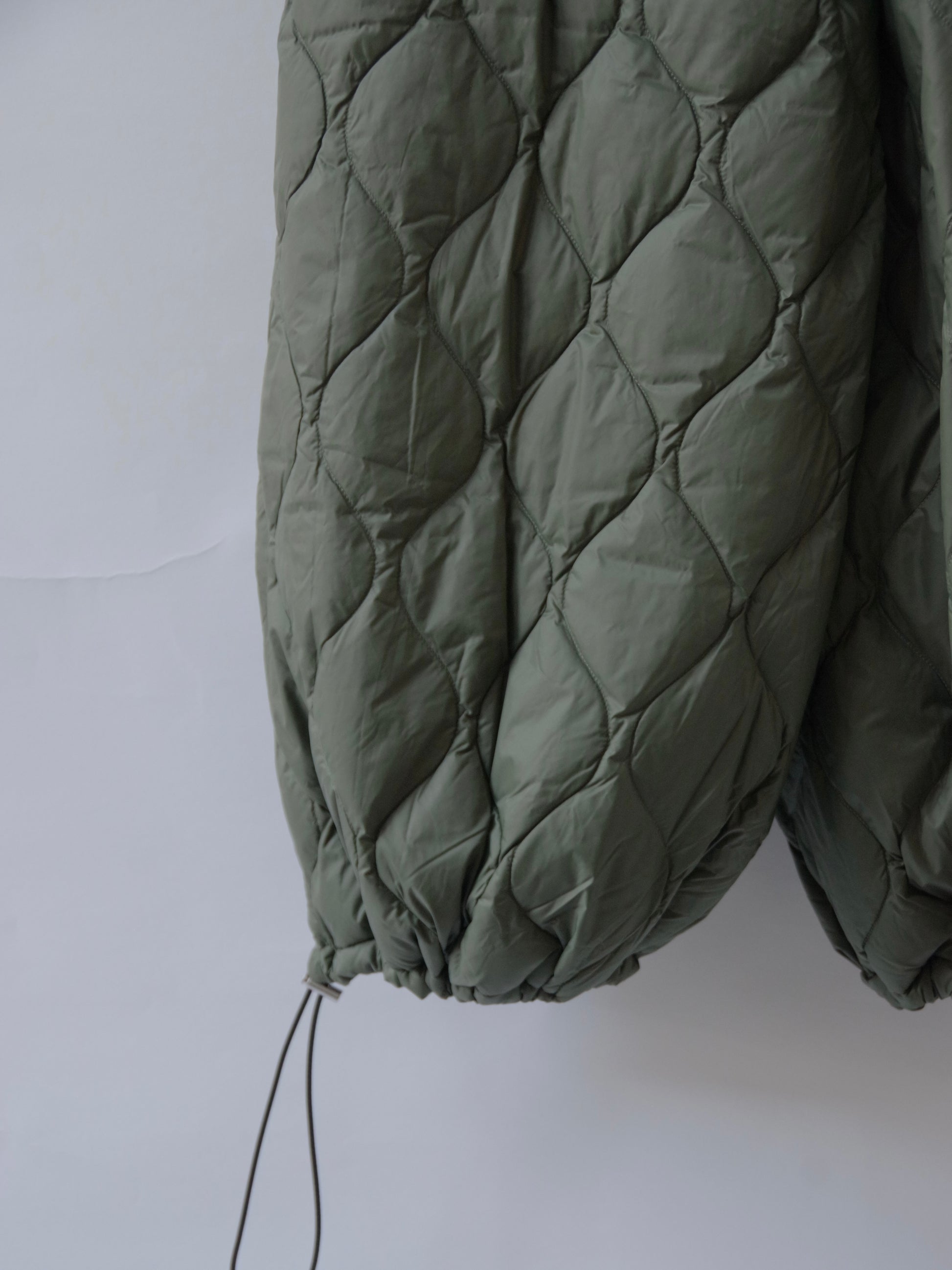 ヘチマキルトのダウンステッチが、ミリタリー感を演出。