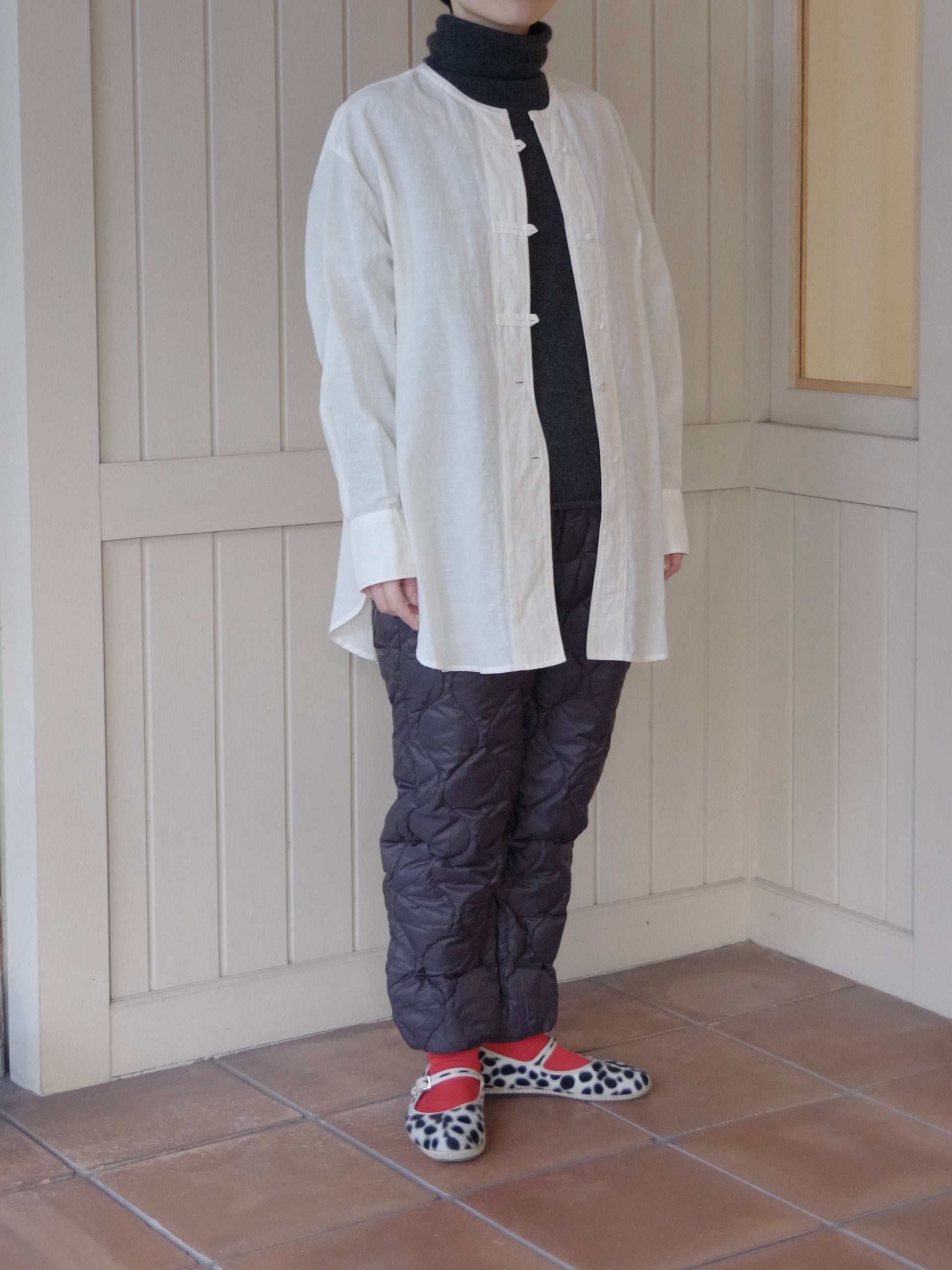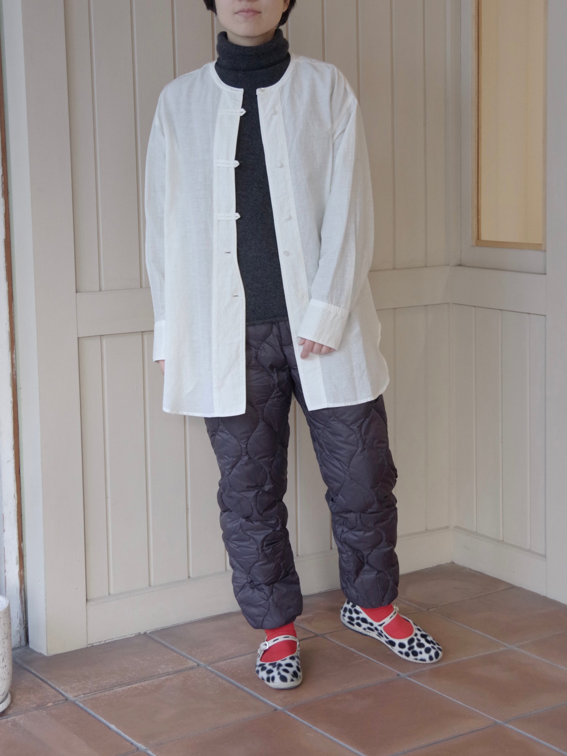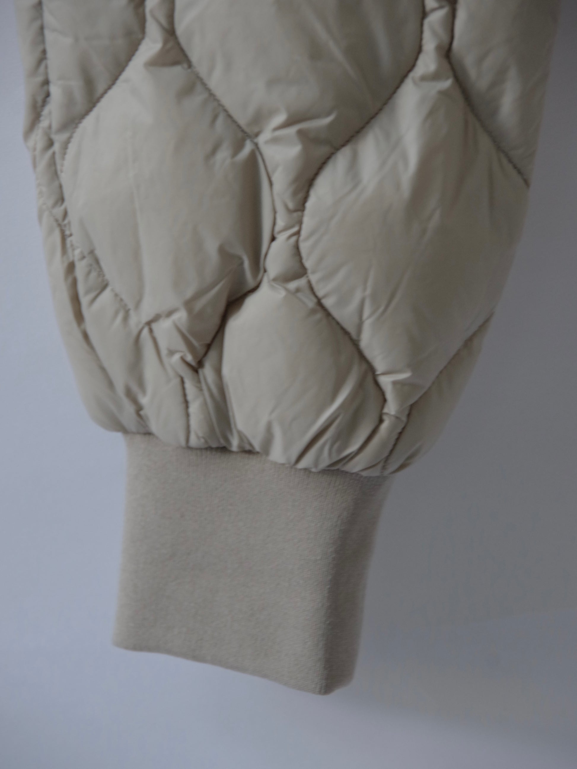 ヘチマキルトのダウンステッチが、ミリタリー感を演出。