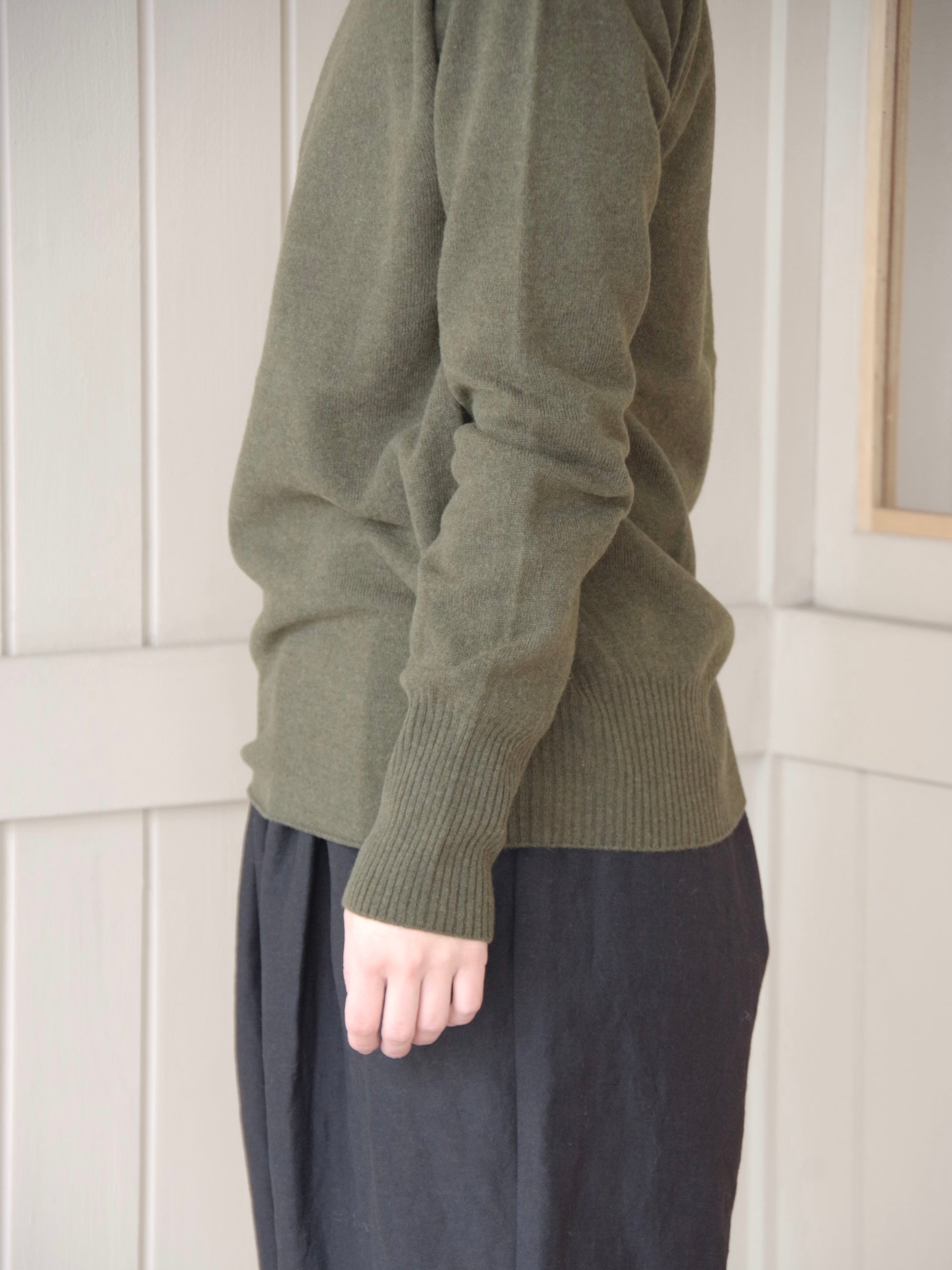カシミヤに匹敵するほどの超極細ウールを使用しており、チクチクした肌当たりもなく、軽くて柔らかなニットです。