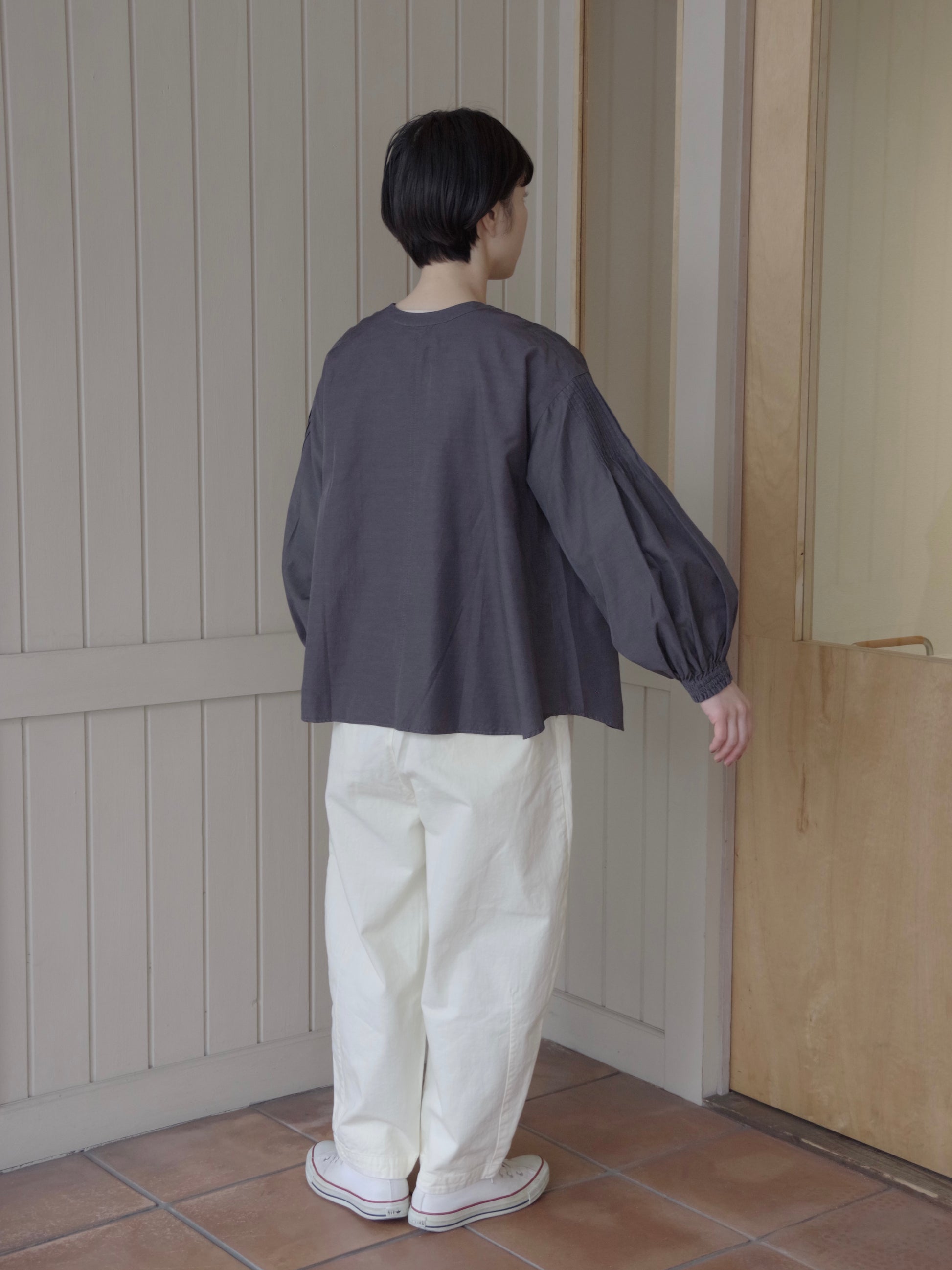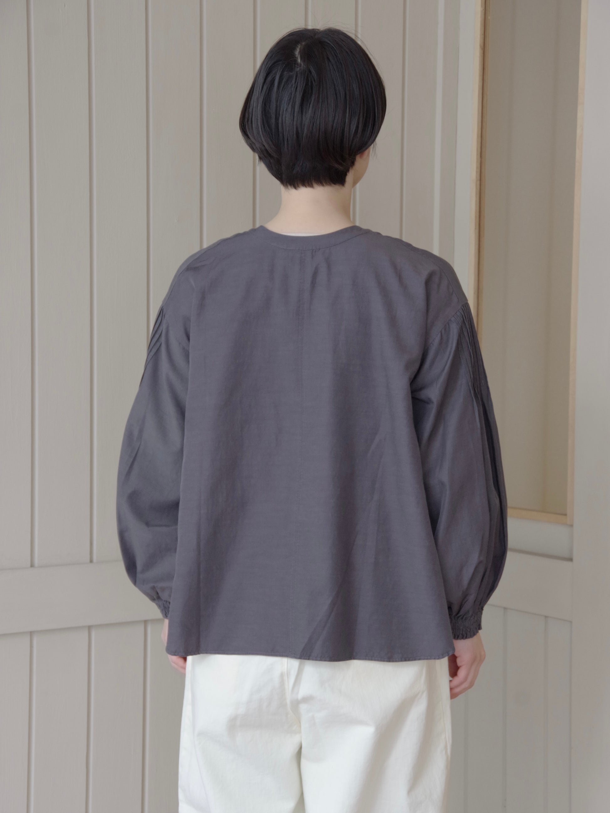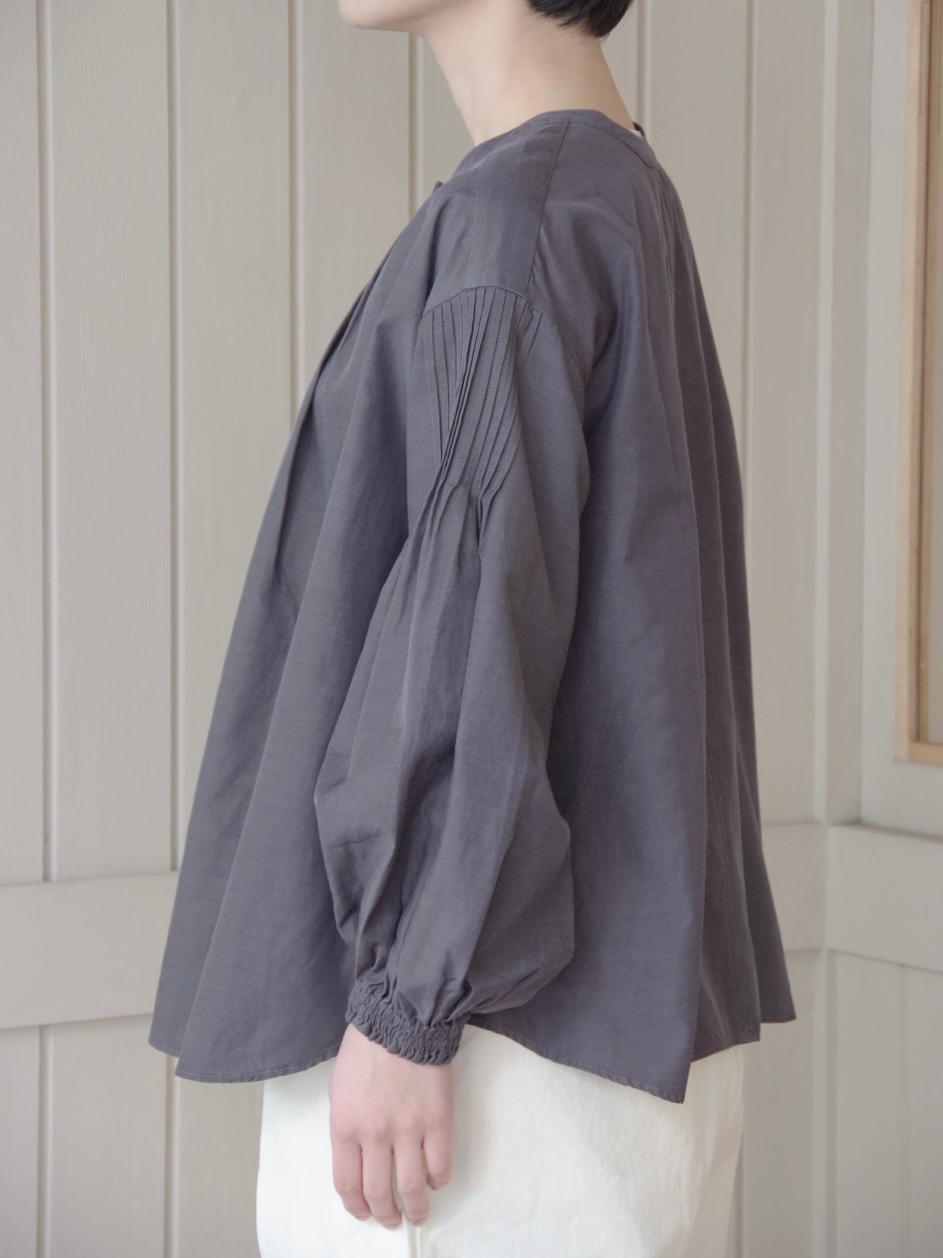 肩部分のピンタックデザインが施され、すこしボリュームのある袖のシルエットです。
