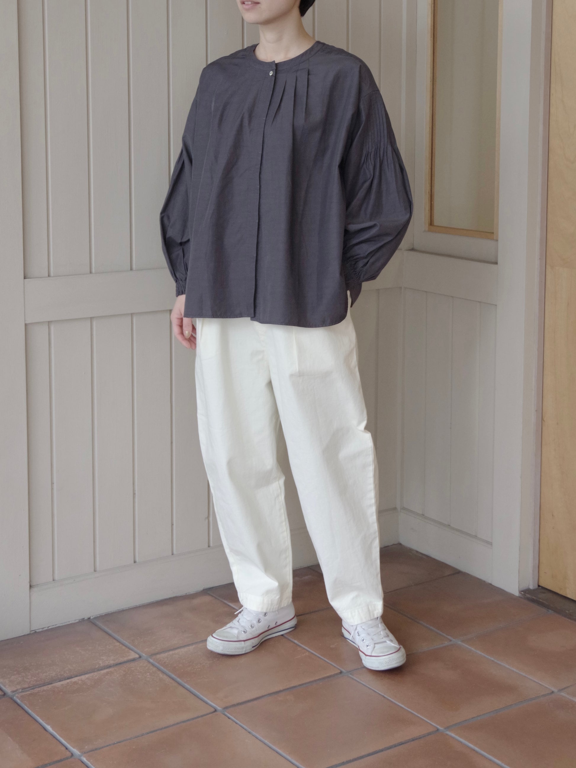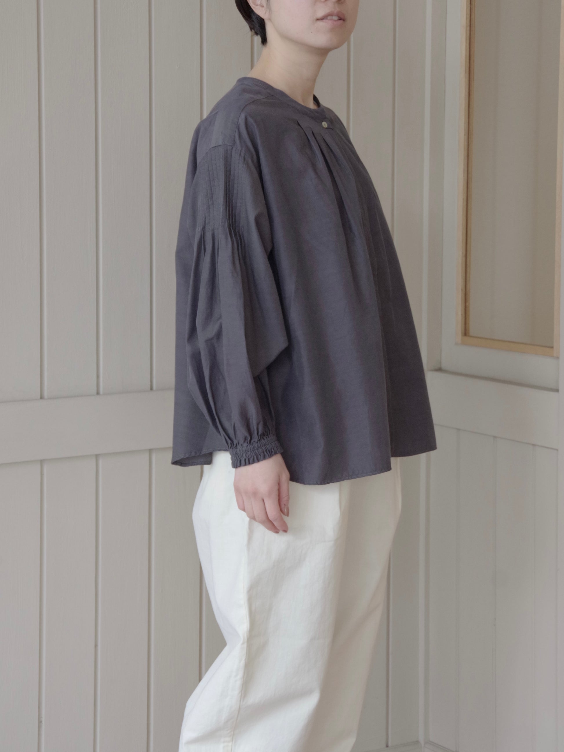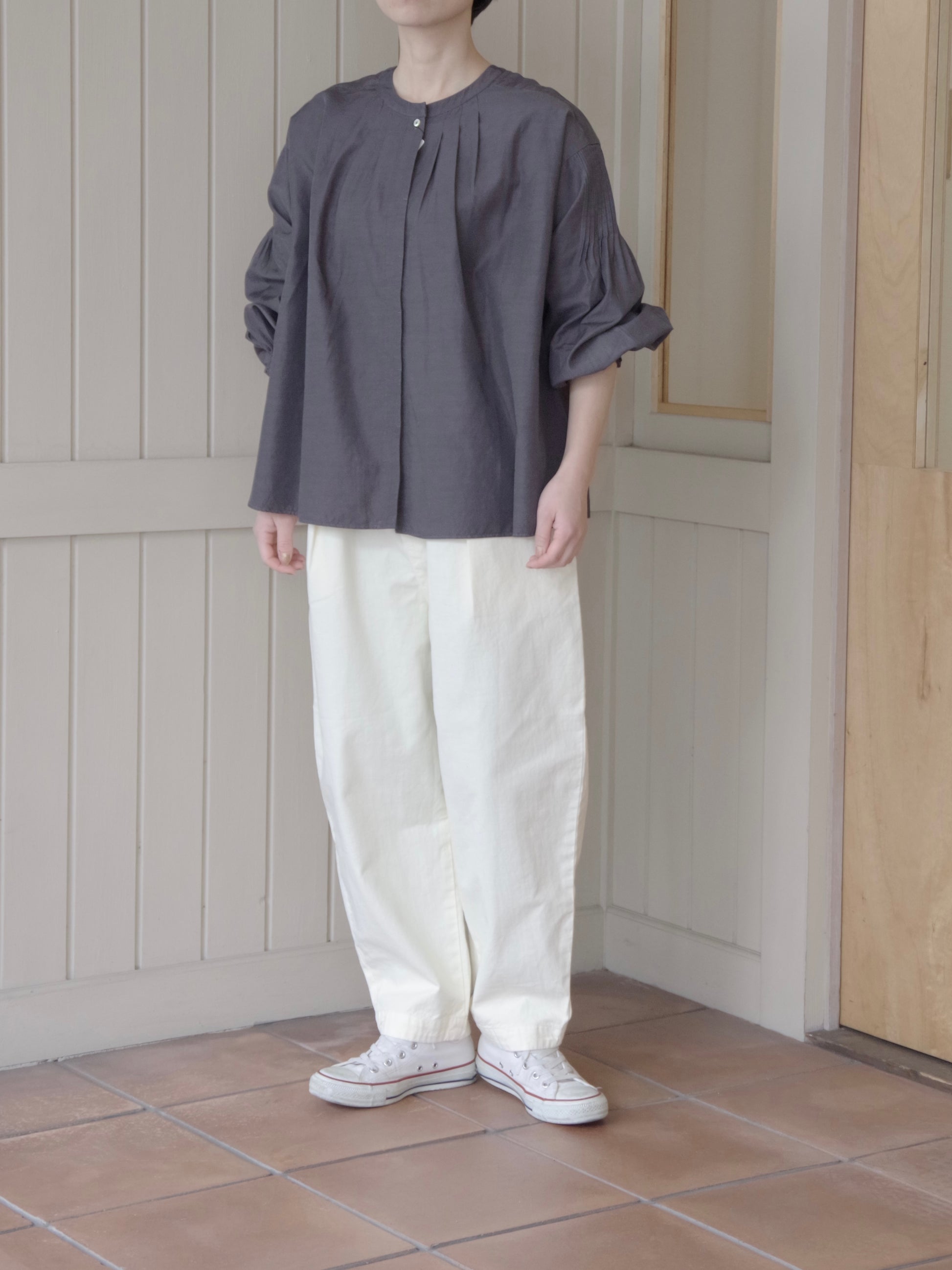 肩部分のピンタックデザインが施され、すこしボリュームのある袖のシルエットです。