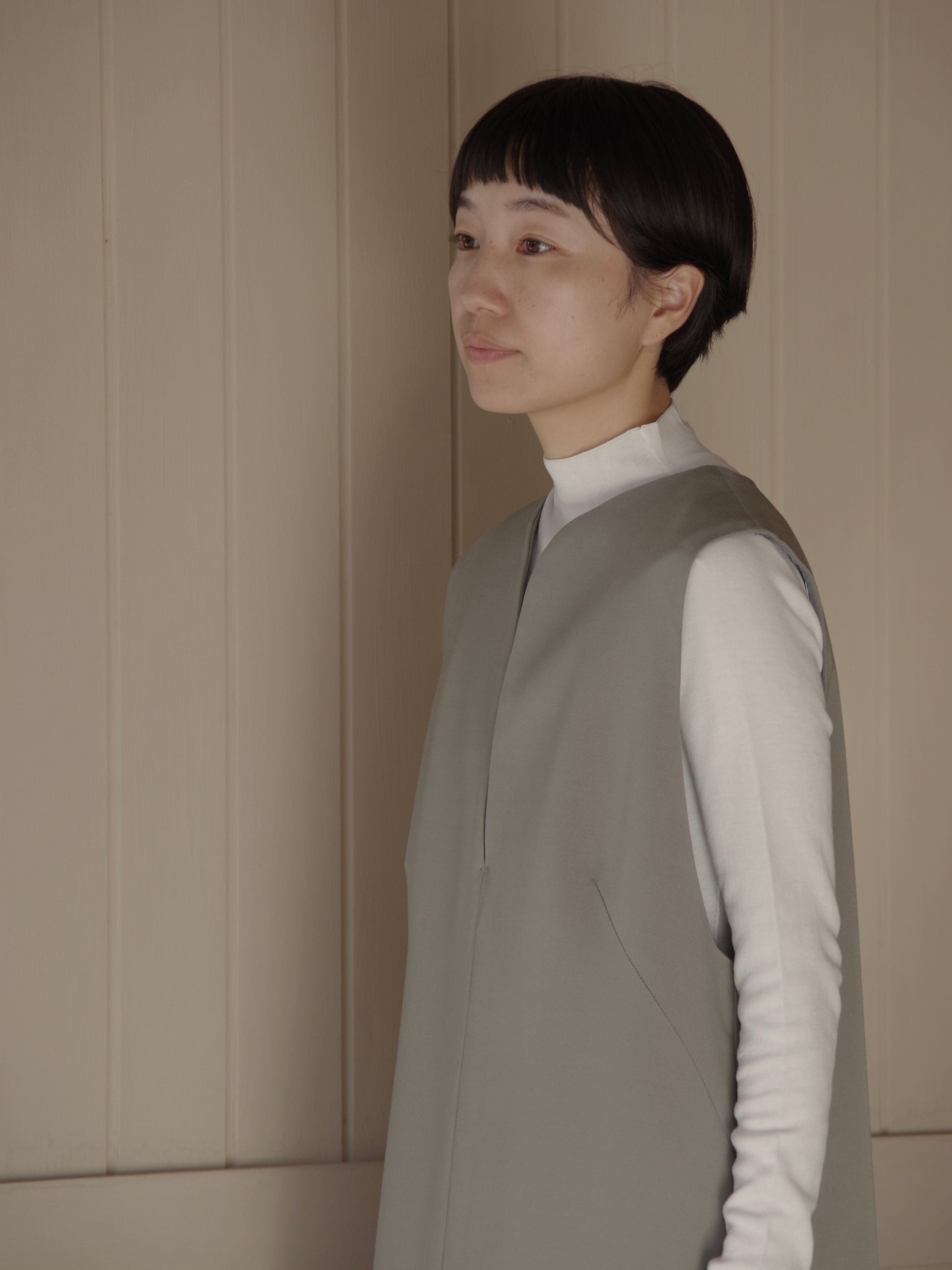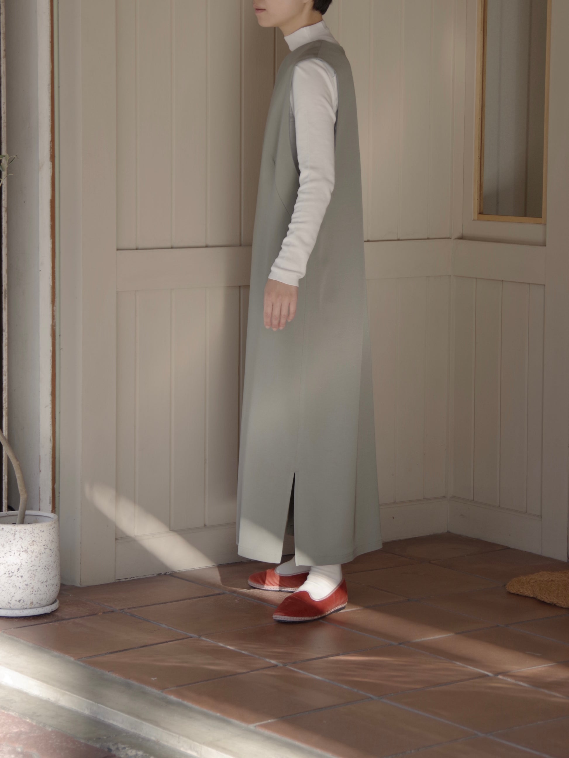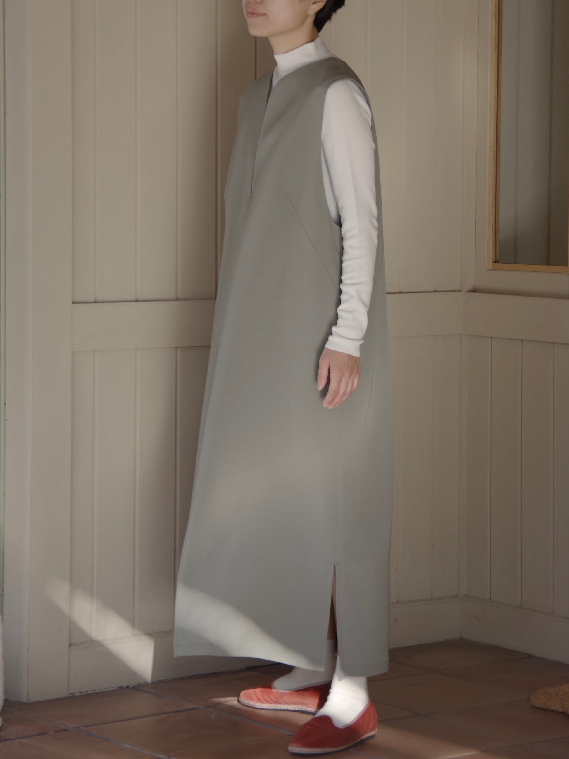 尾州で丁寧に織り上げた、レーヨンウールのキーネックジャンパースカート。
