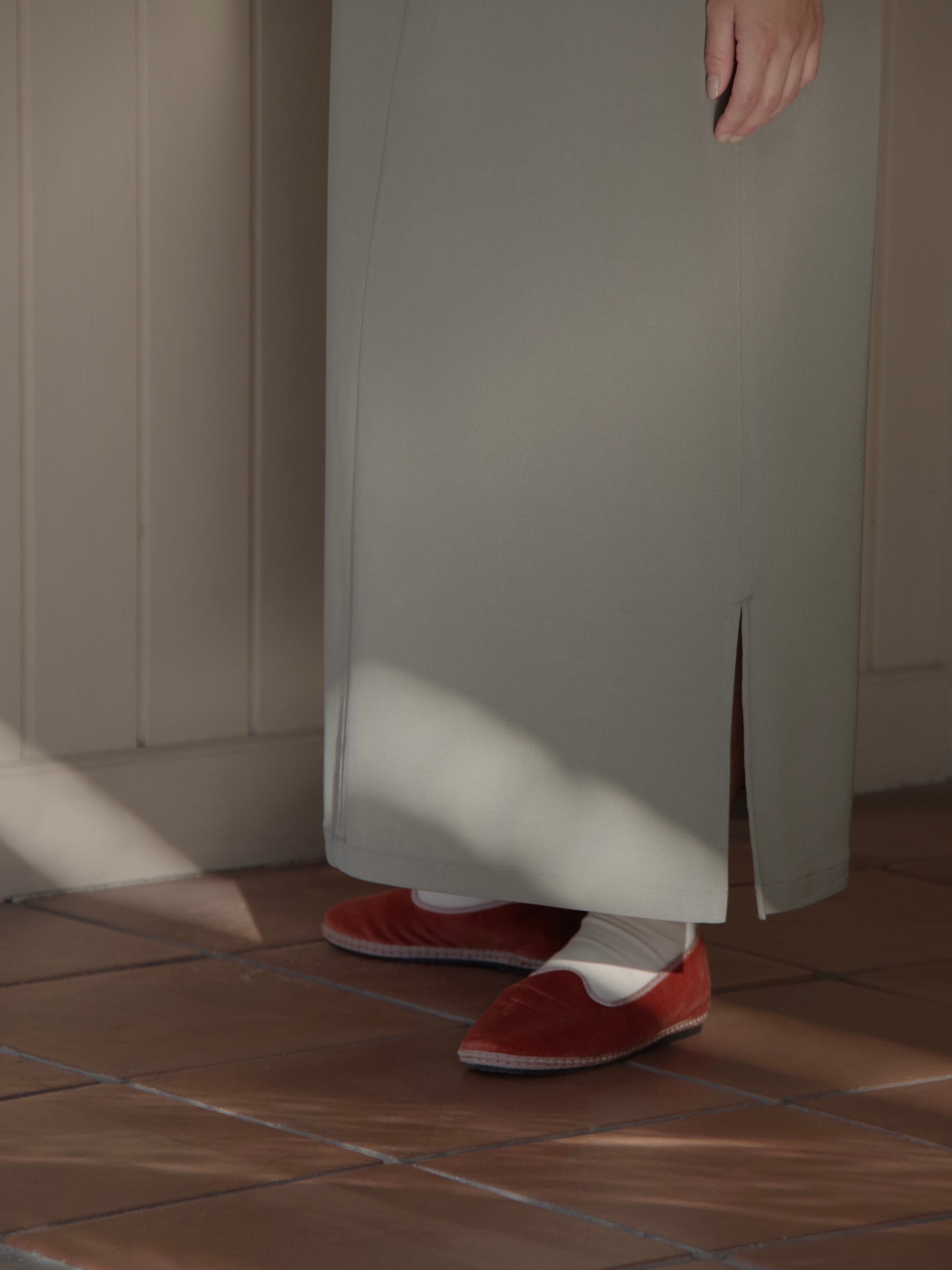 きれいな落ち感と適度なハリ感が、日々の装いに“きちんと”のエッセンスを添えてくれます。