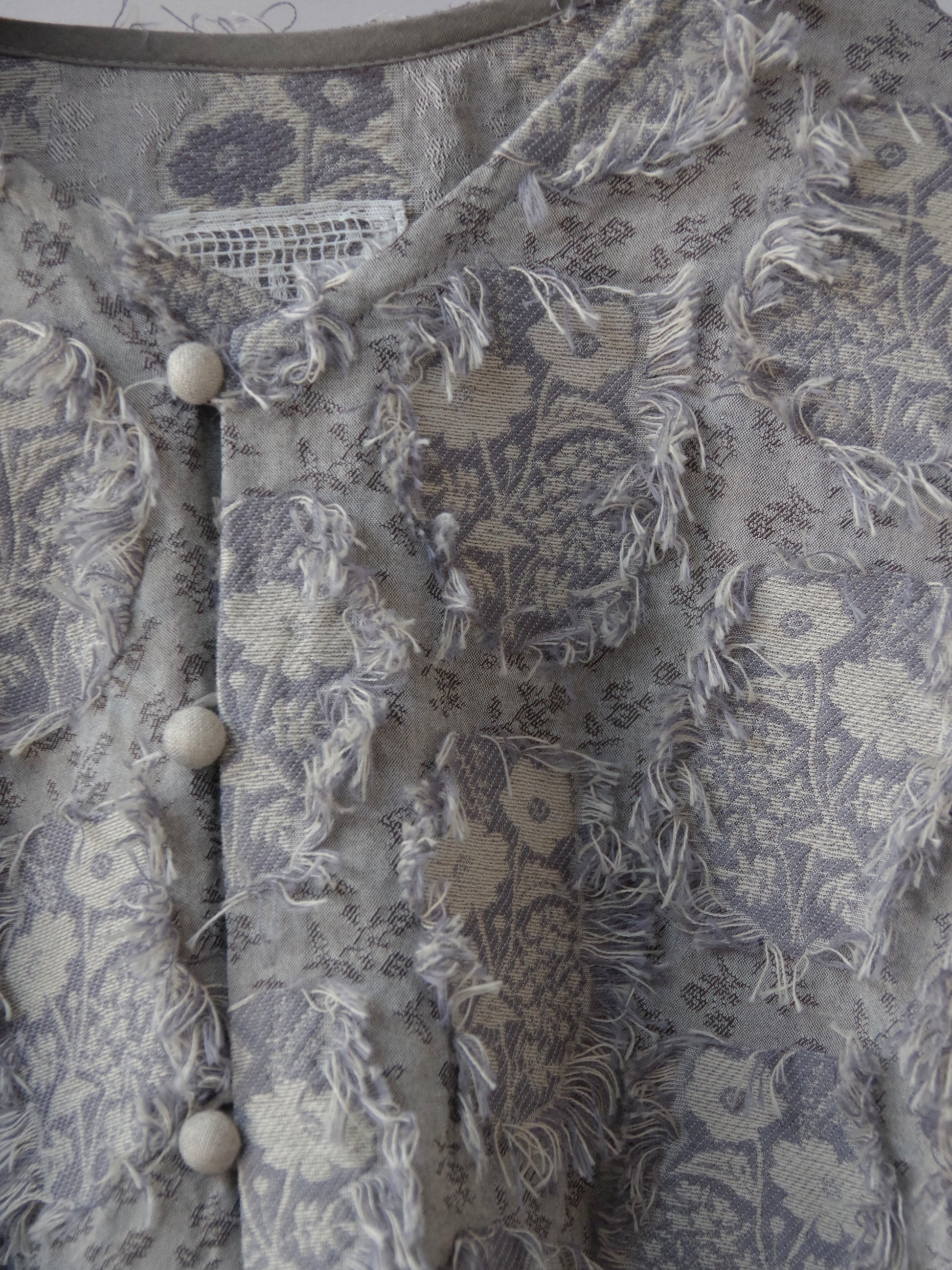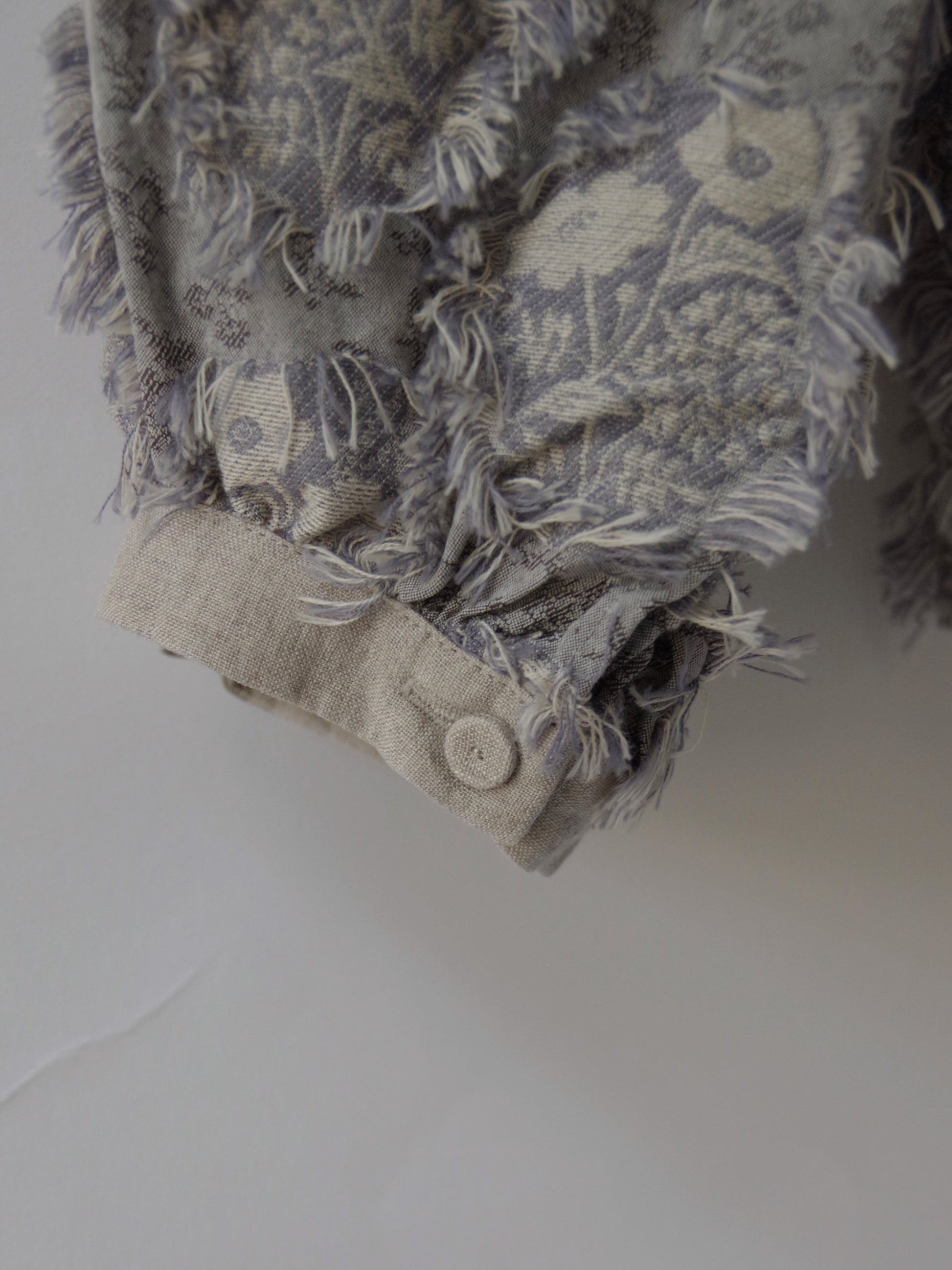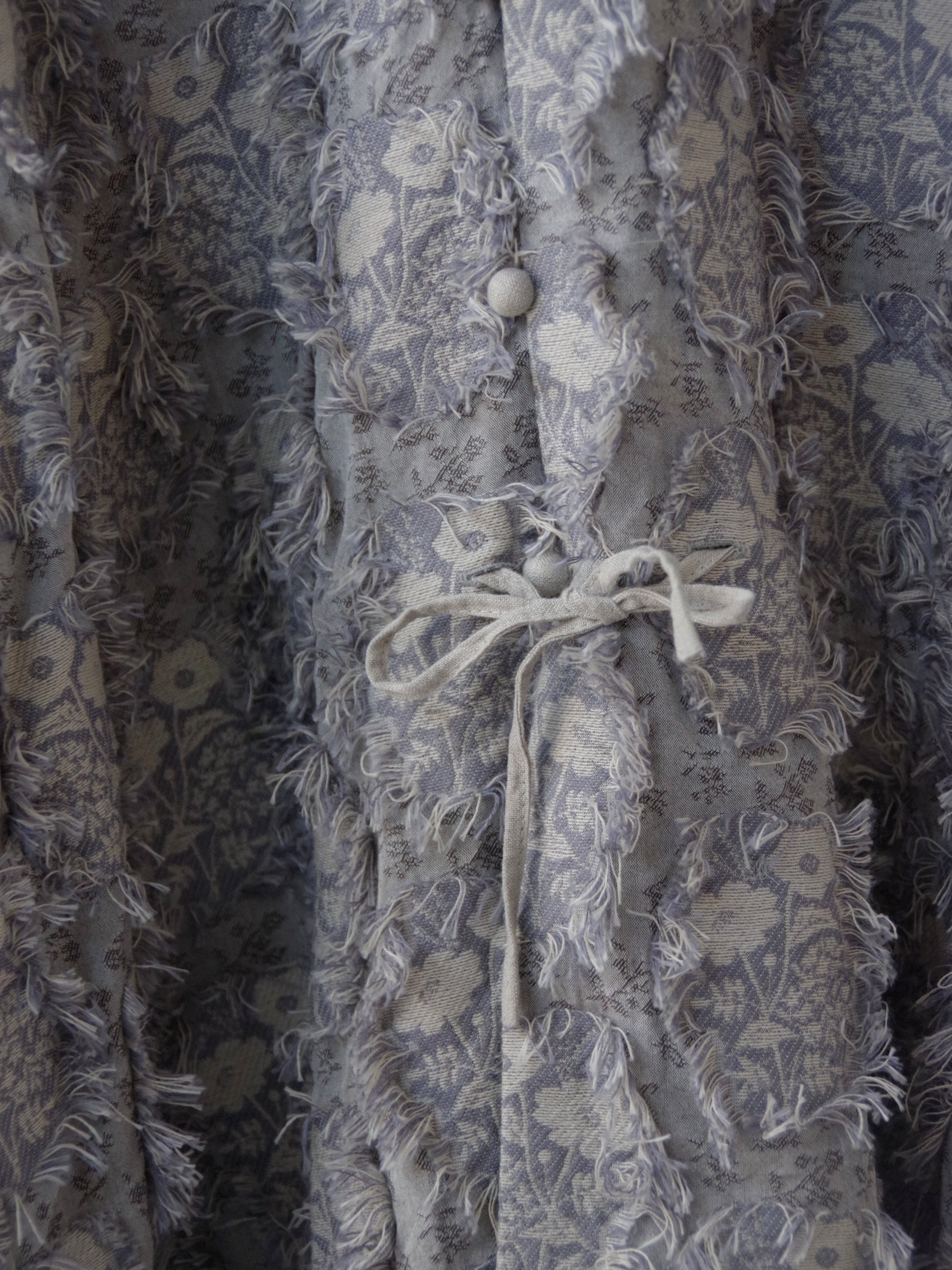 リネン生地のクルミボタンは、ボタンループでとめるデザインです。