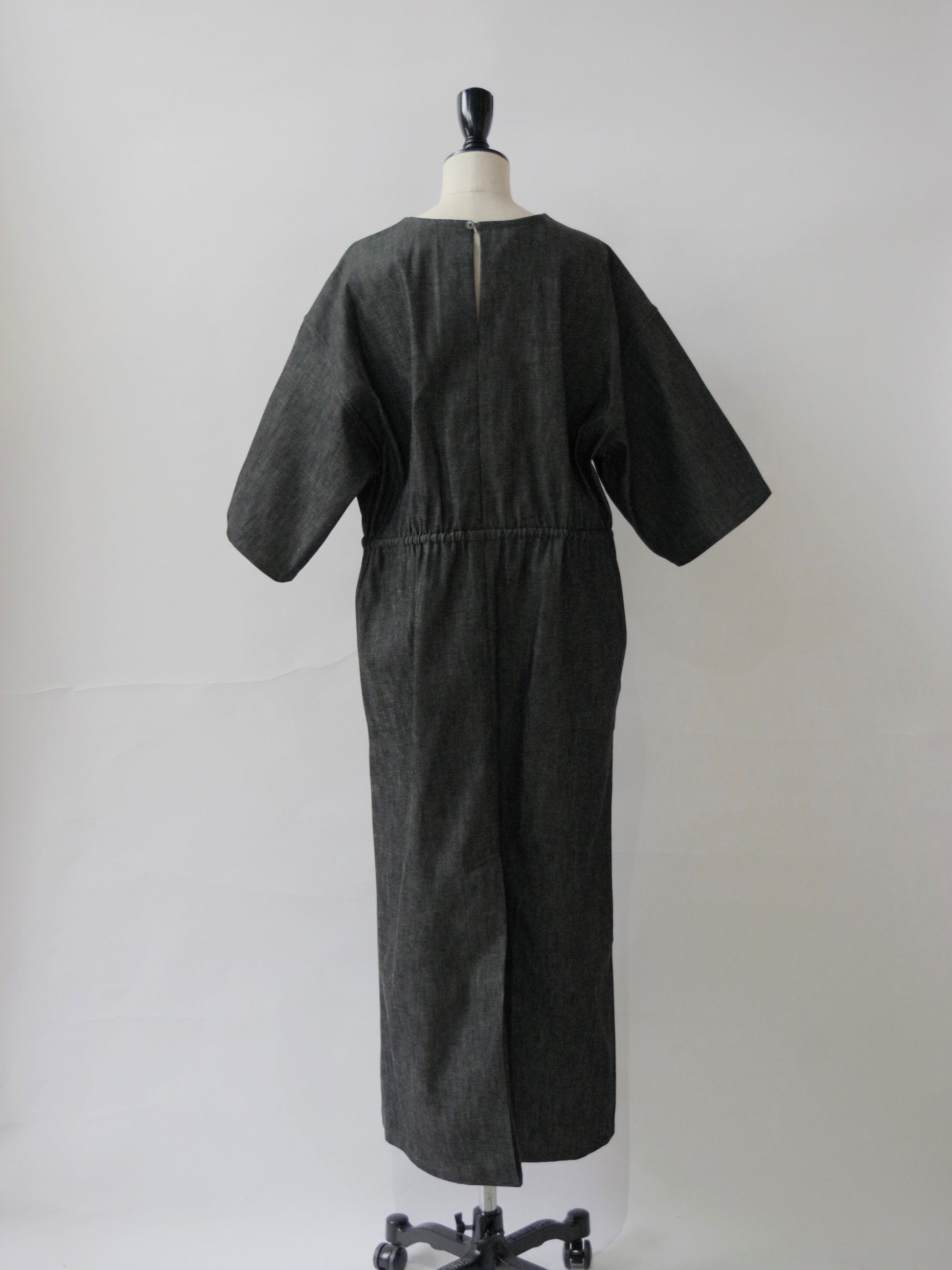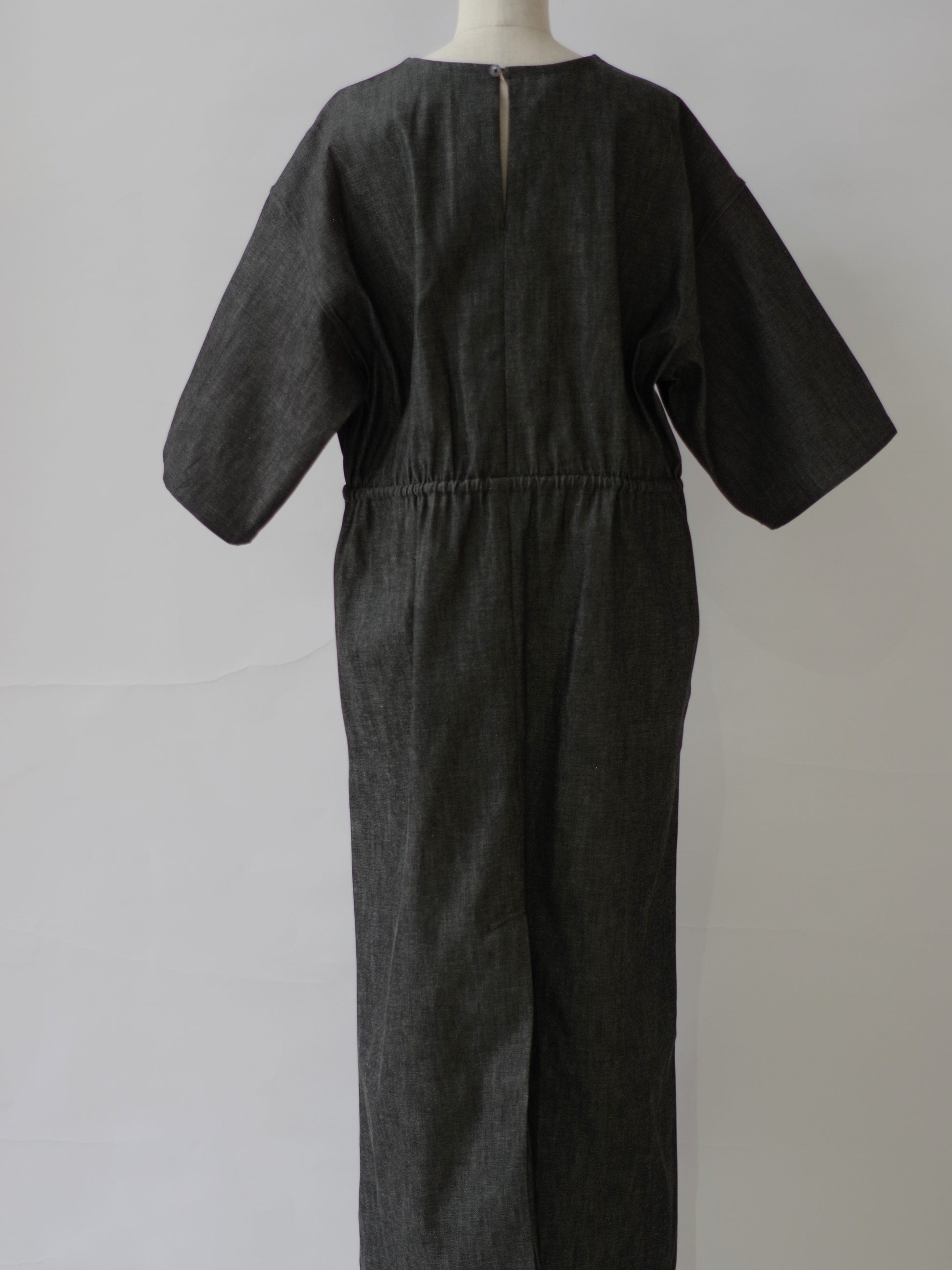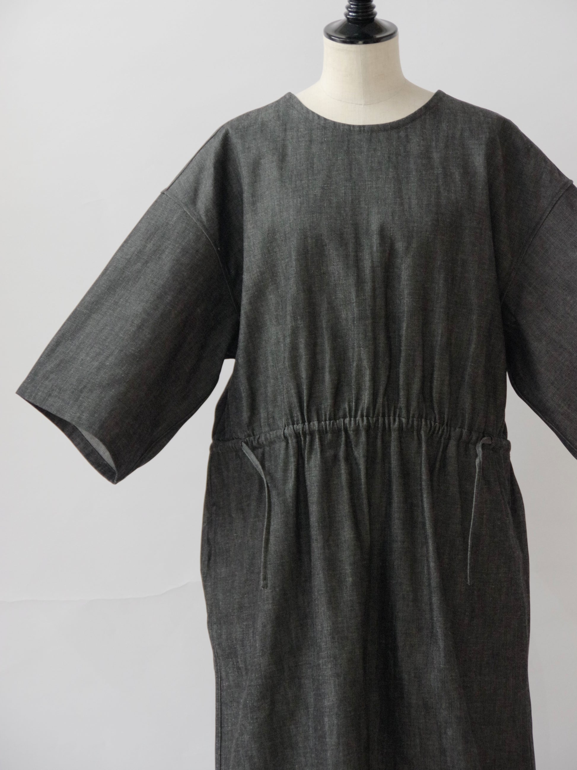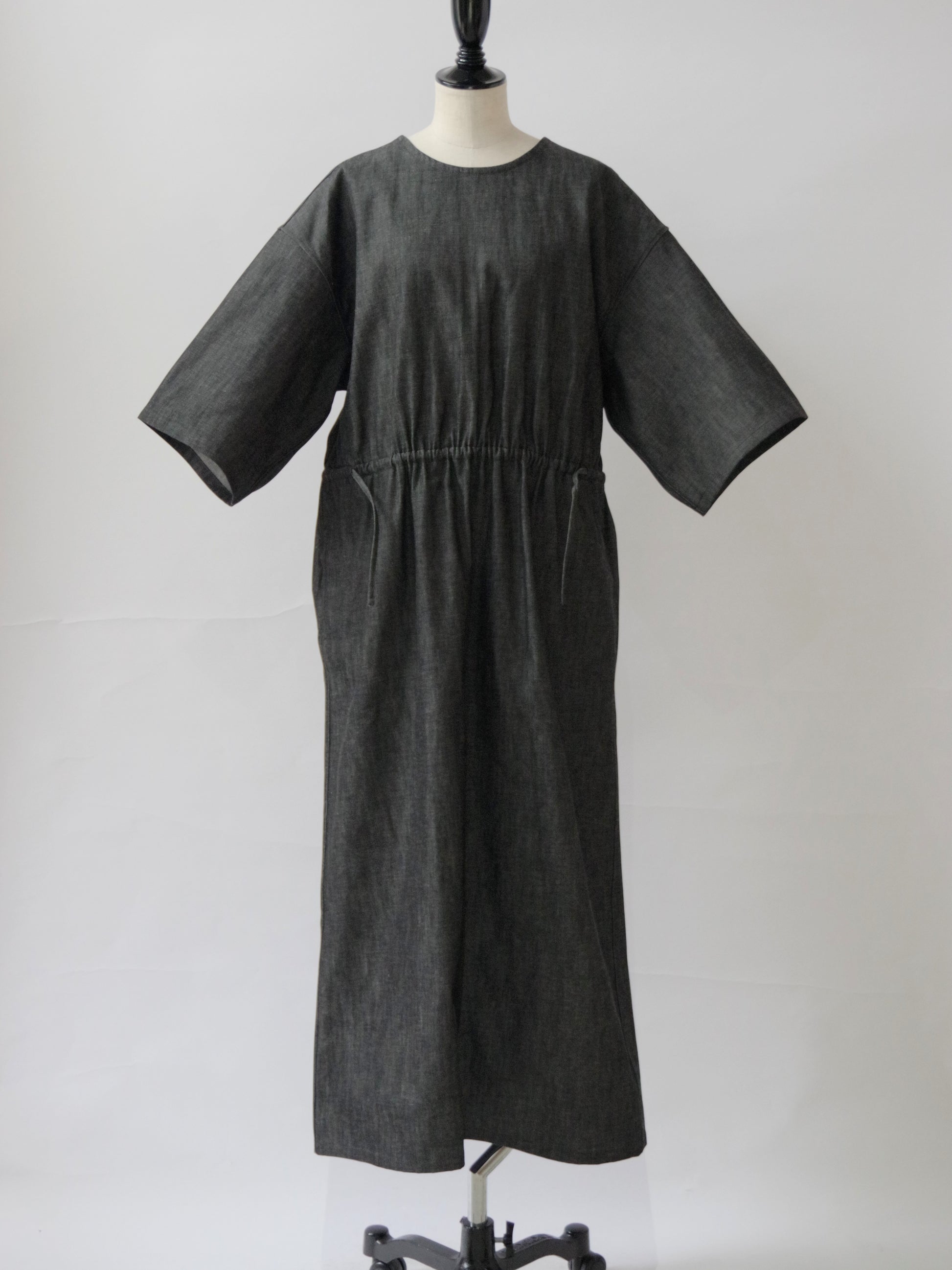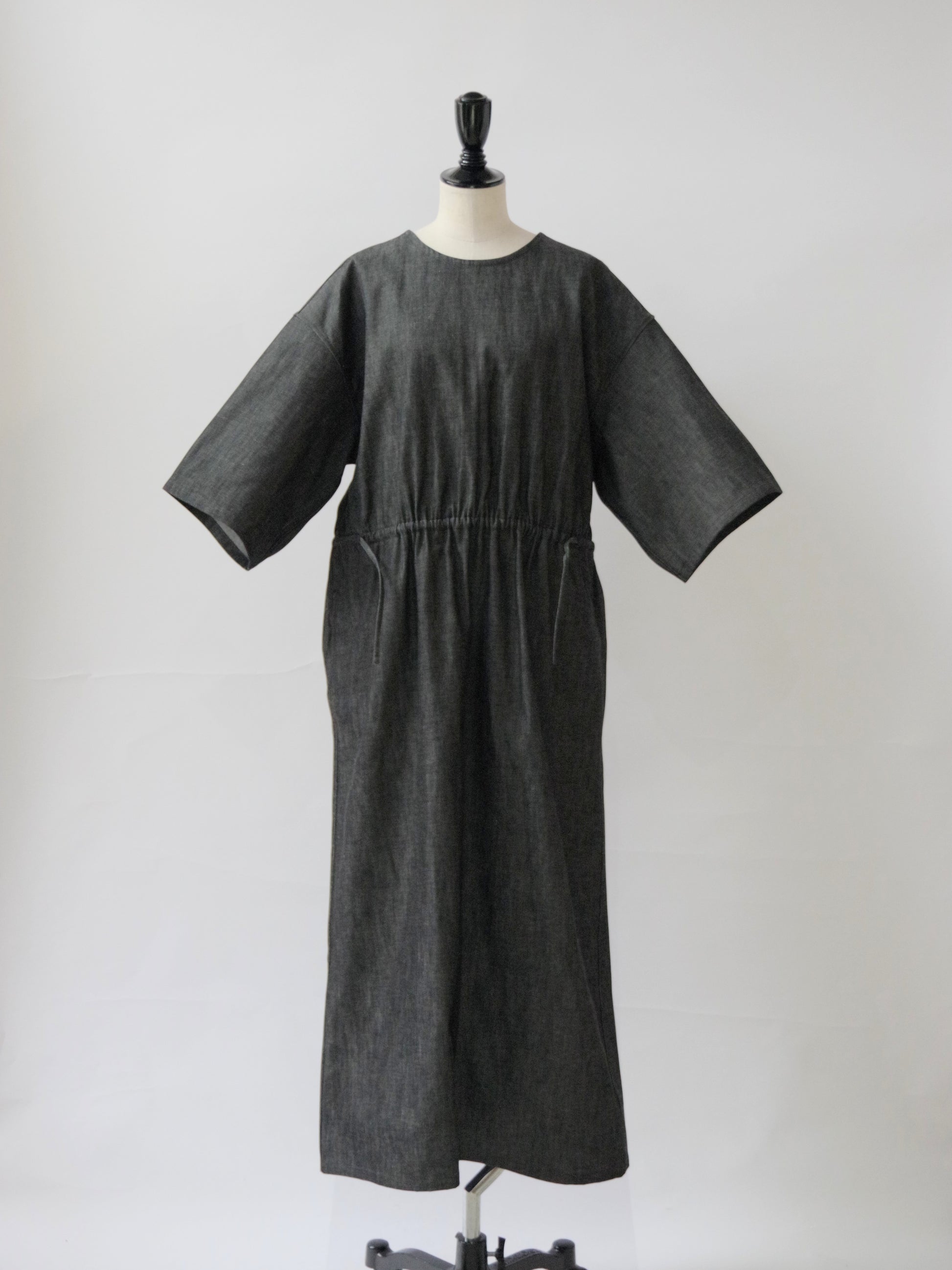8.5ozライトデニムを使用した5分袖ロングワンピース。