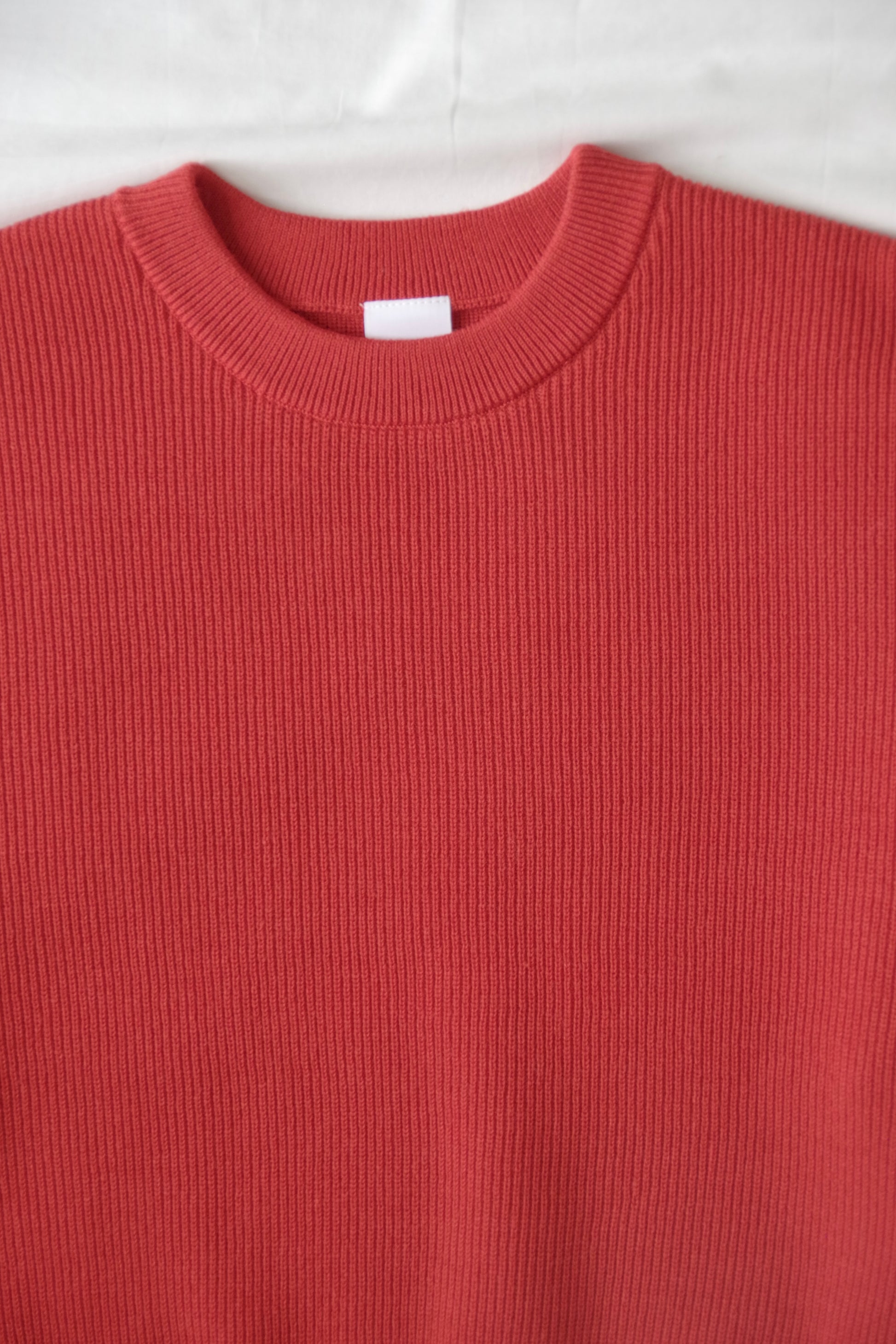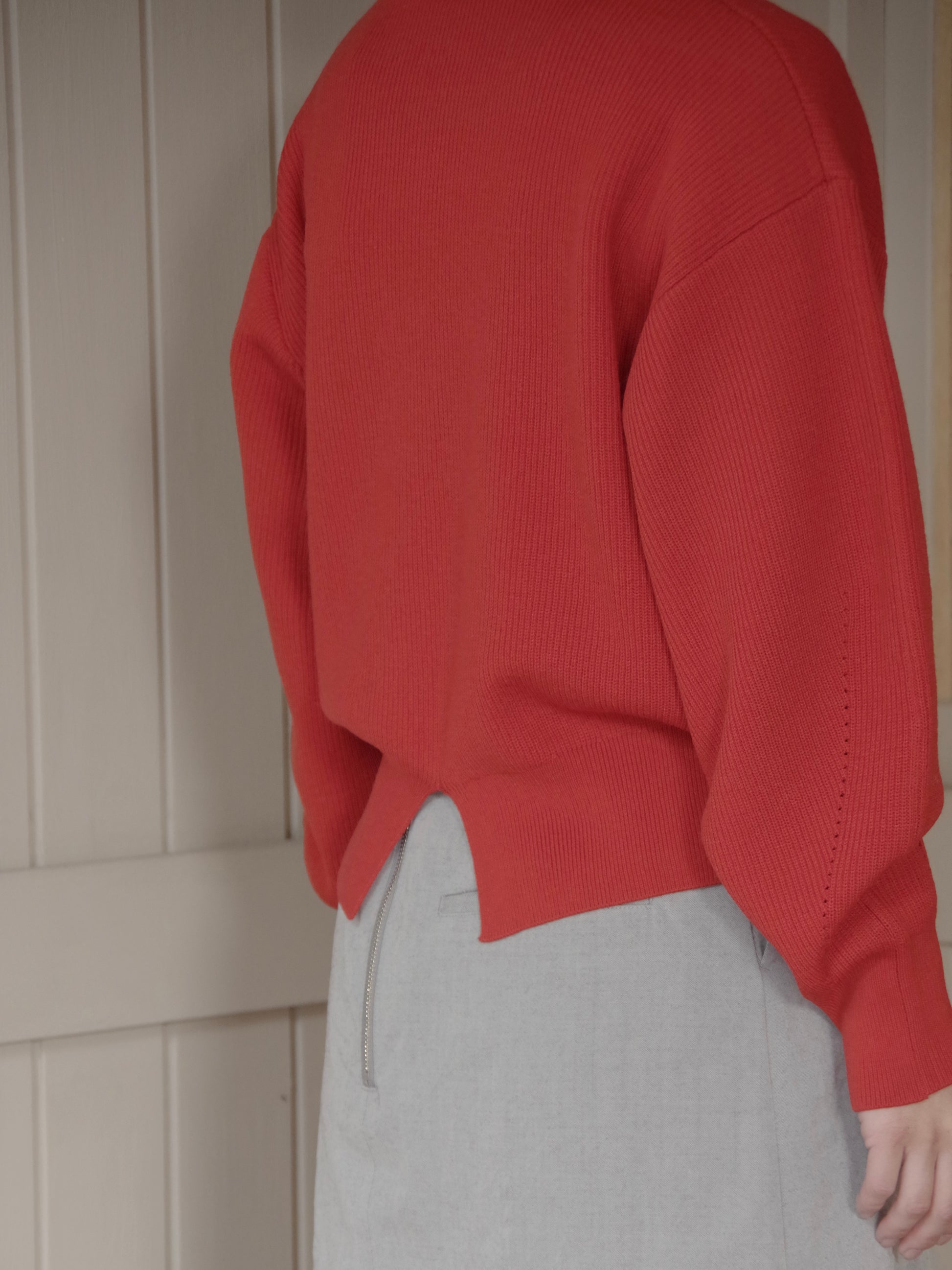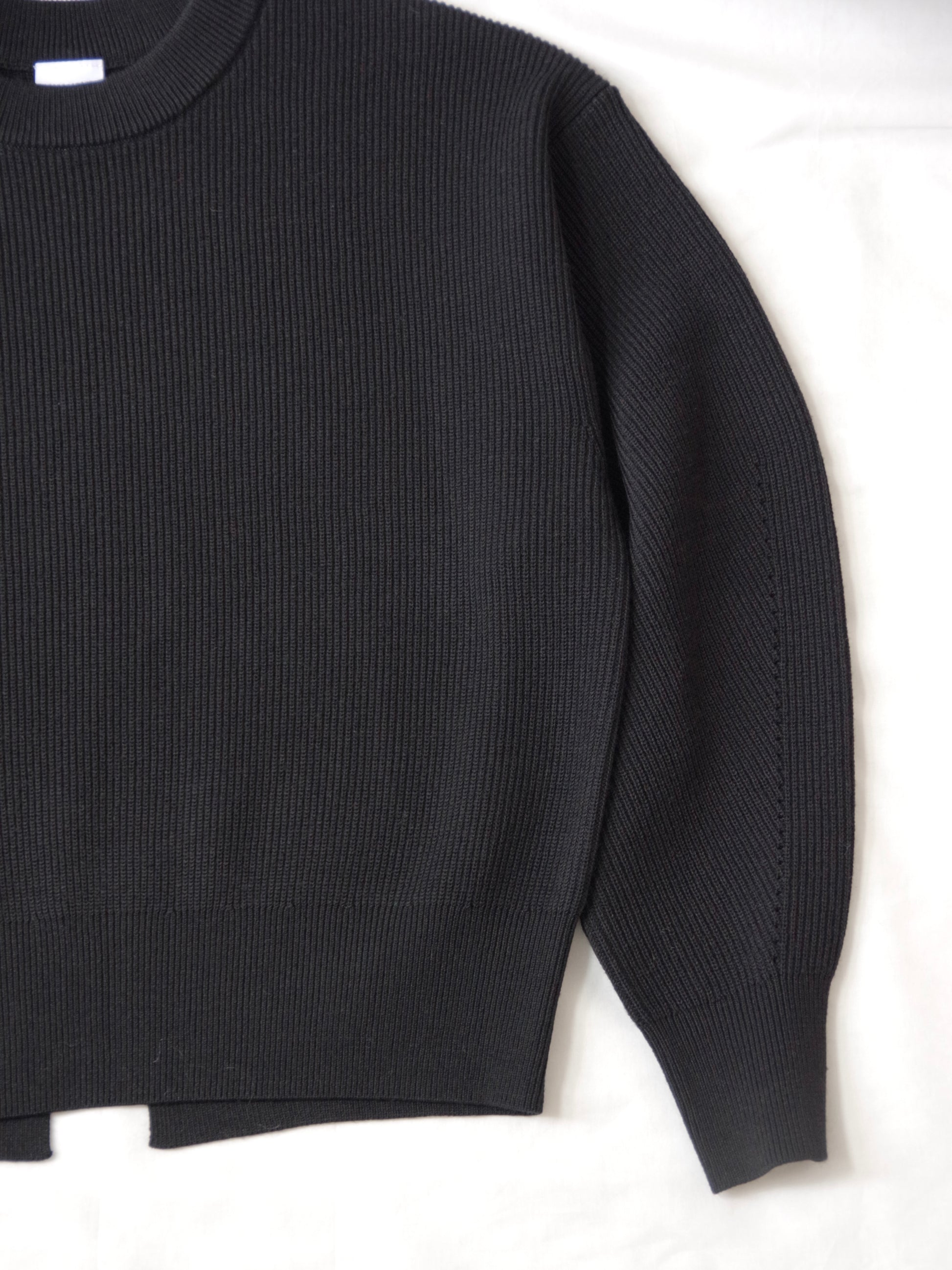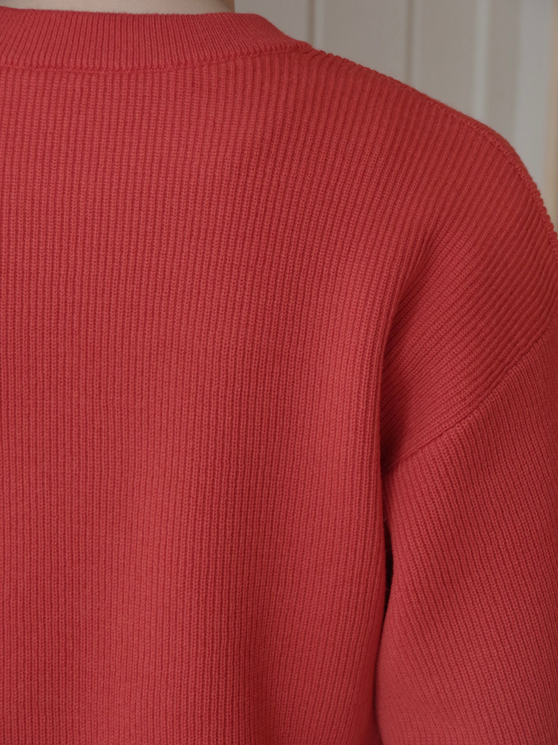 上質なウールポリエステル糸を使用したクルーネックプルオーバー。
