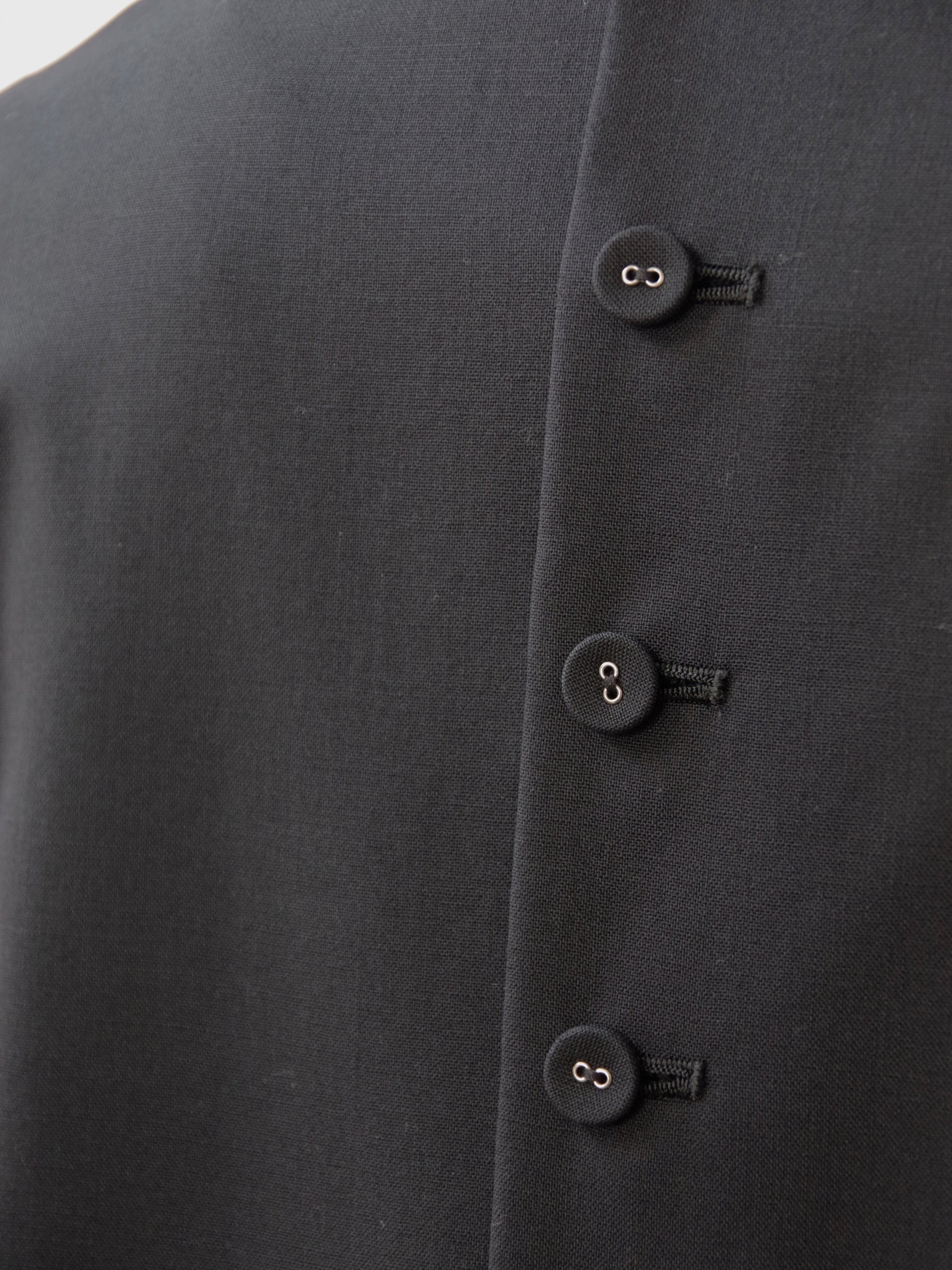 生地は、スーツやフォーマル服に使われるトロピカルウールを使用しており、ウールでもさらりとした肌当たりで季節を通して長く着用することができる布地です。