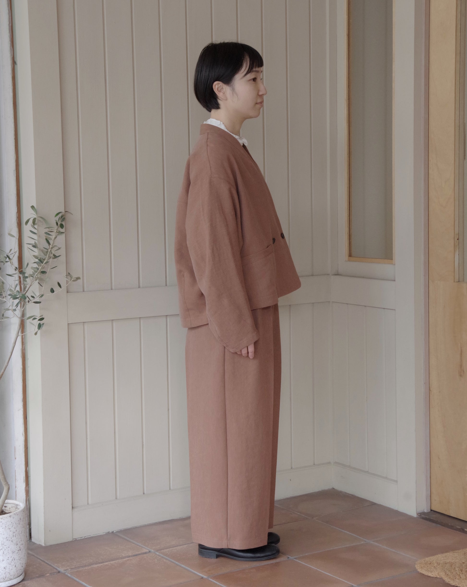 Linen/Polyester double cocoon no collar ジャケット | yuni