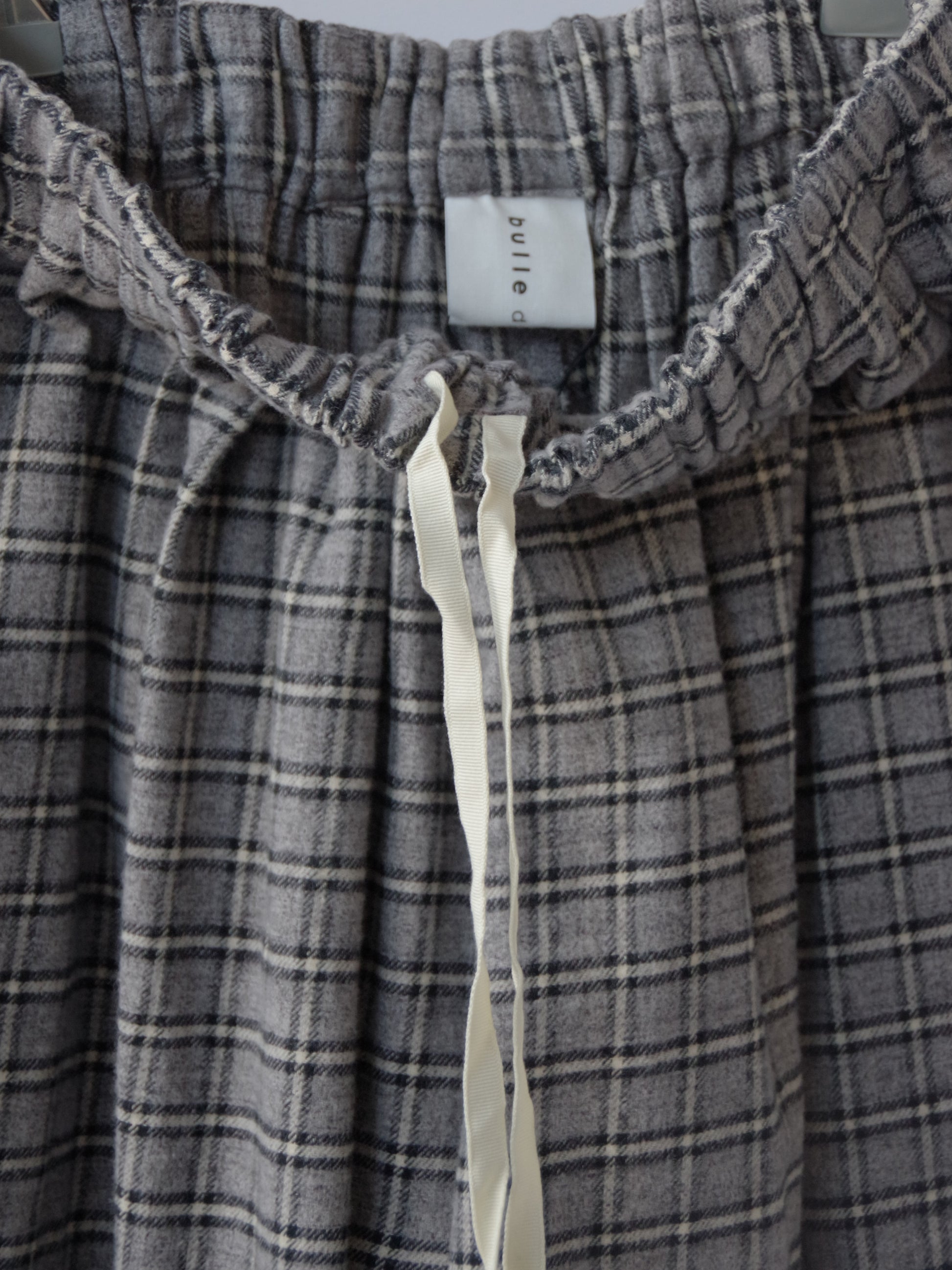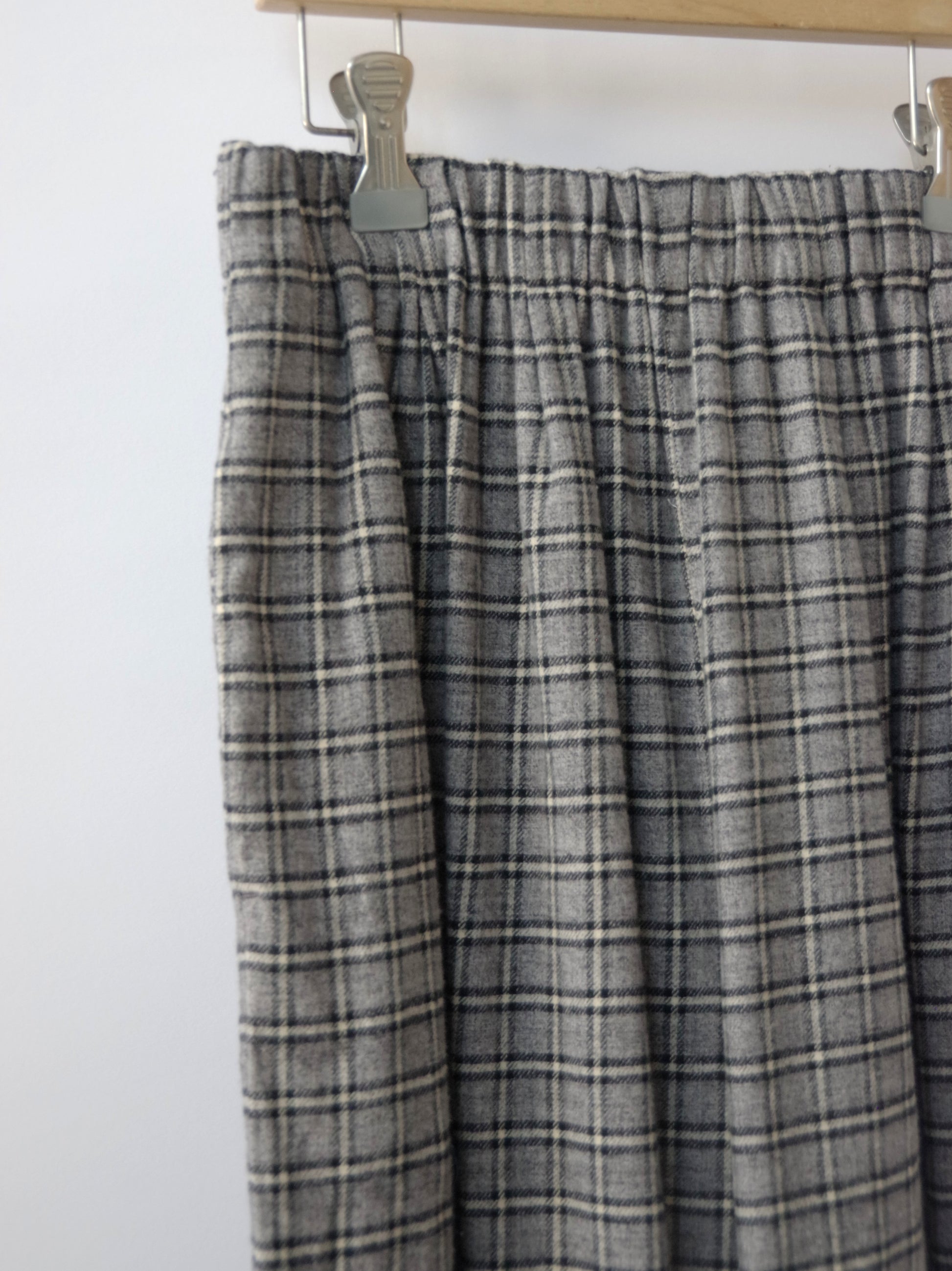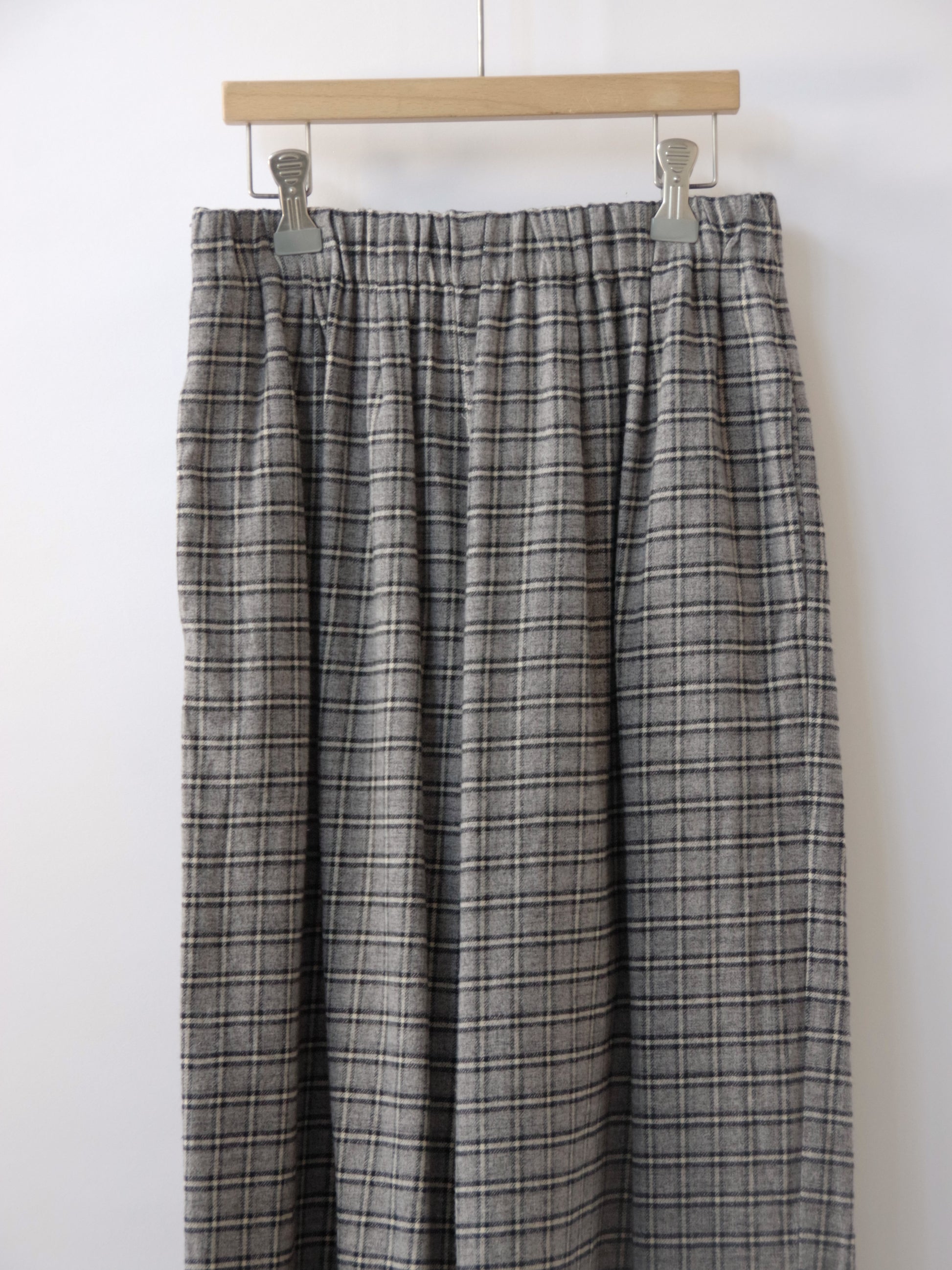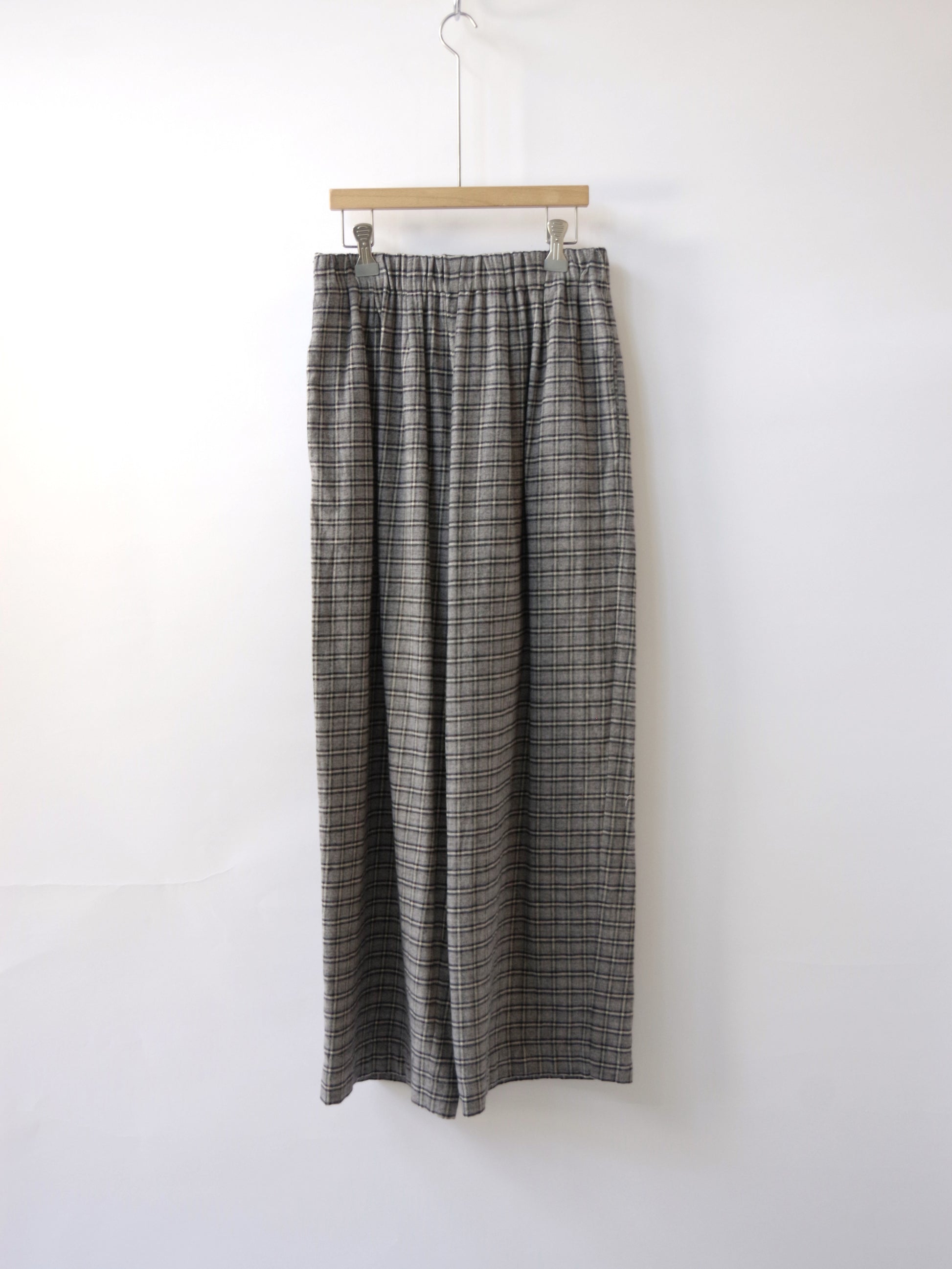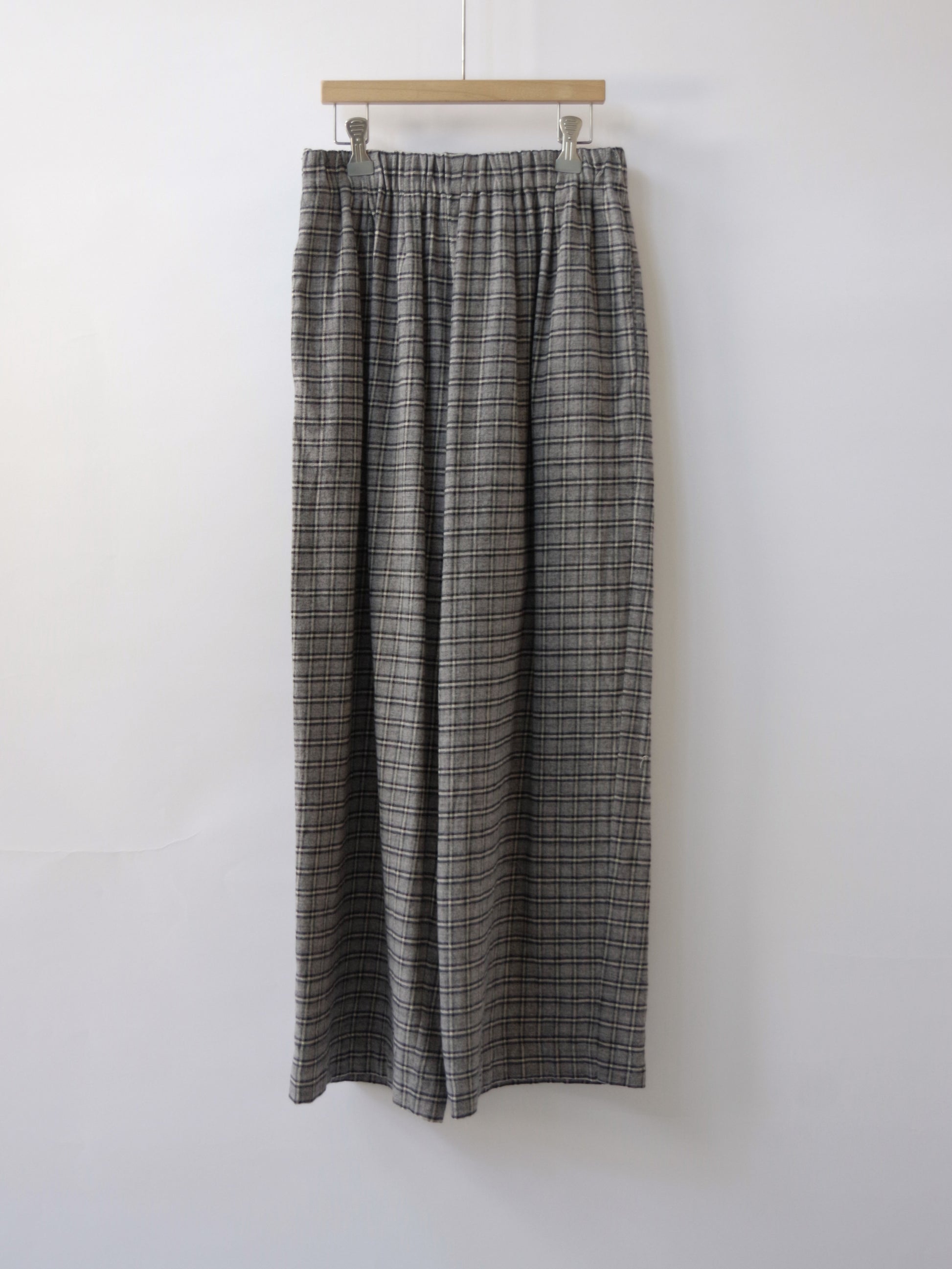 どこかなつかしい雰囲気の起毛チェックのイージーパンツ。