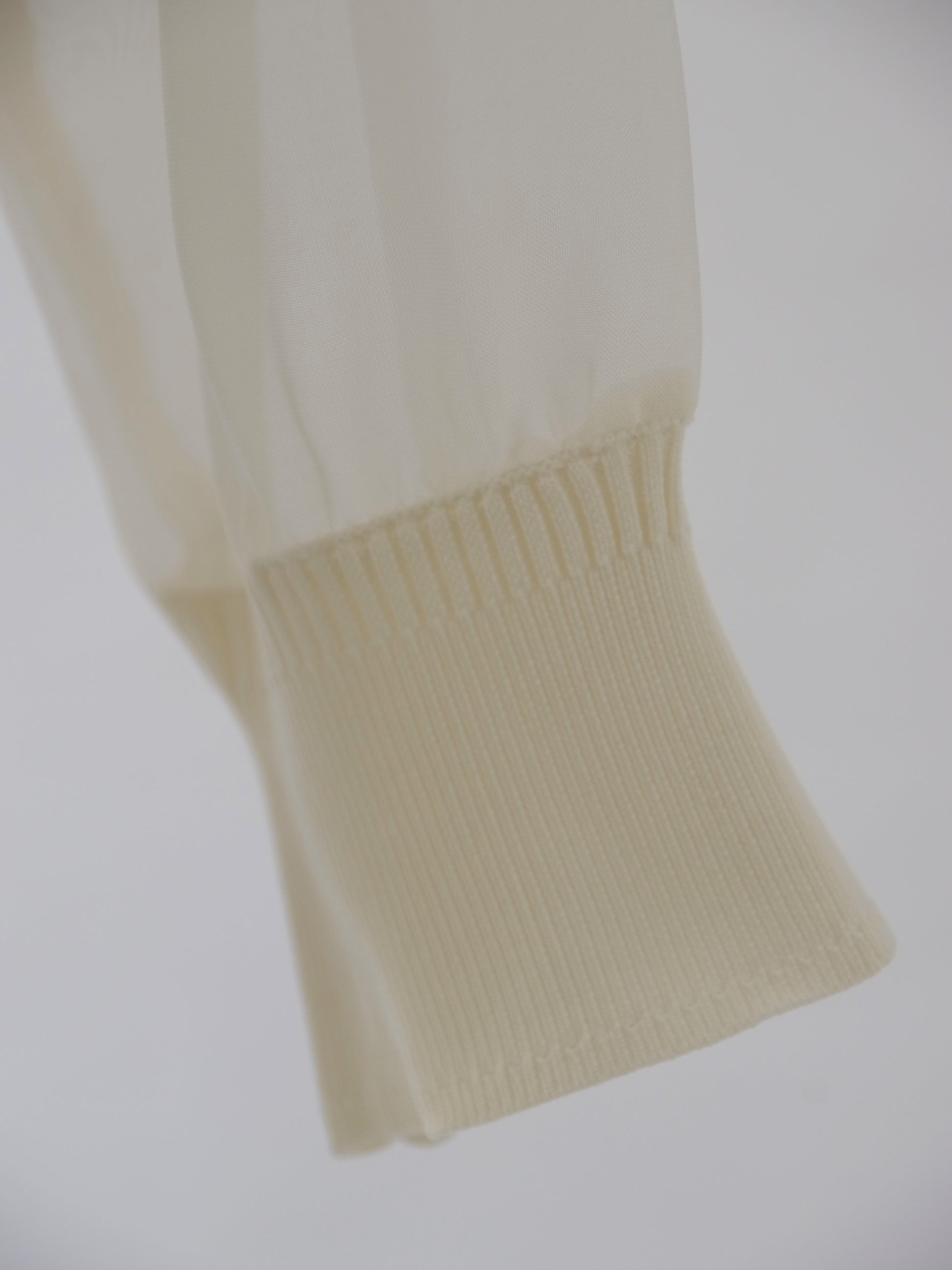 編立て部分はアイレットやリブ組織を入れることでさりげない凹凸ある表現でポイントになっています。