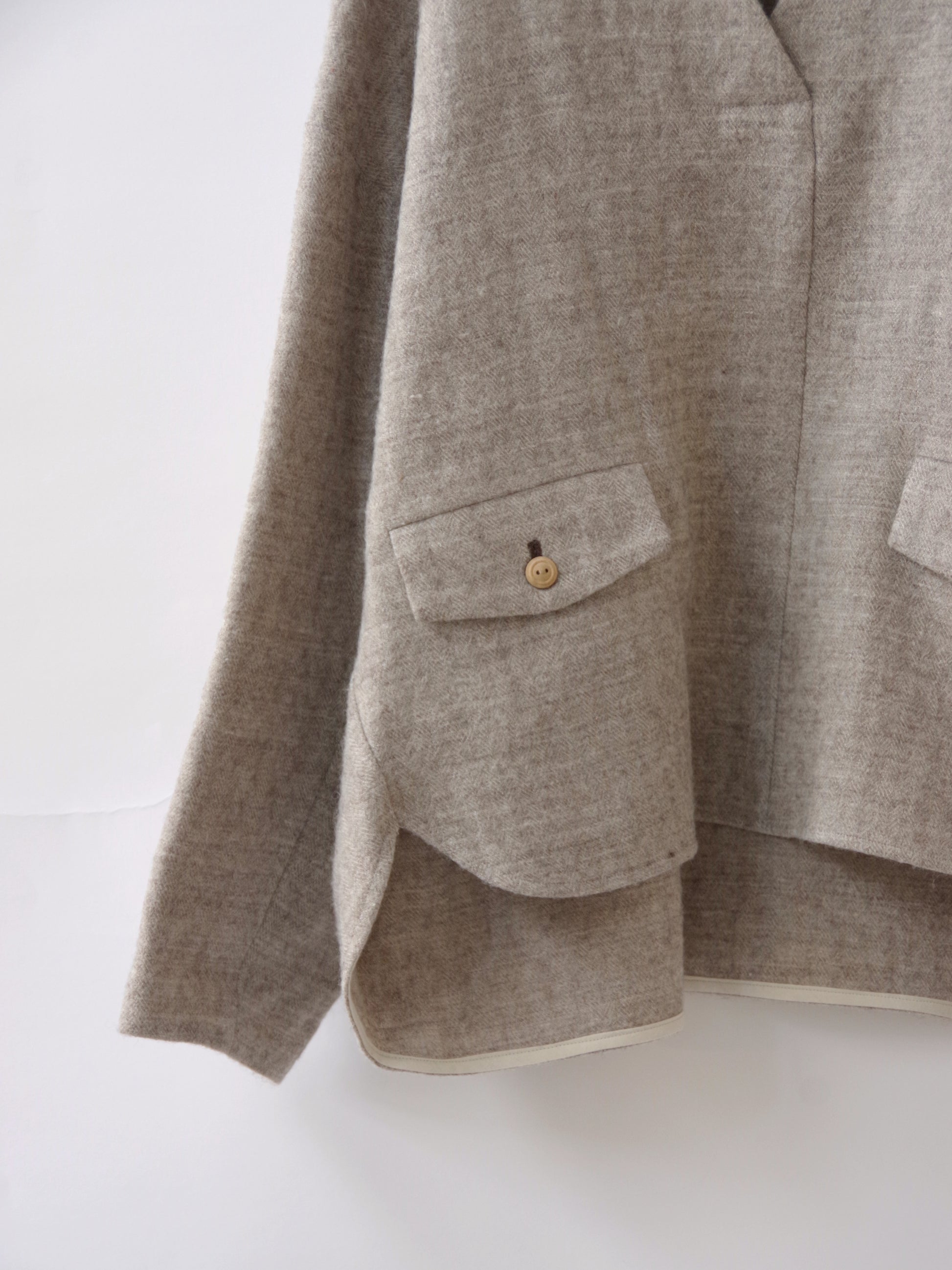 ゆったりしたサイズ感で、アウターのように着ることのできるスモックジャケットとしても、コーディネート次第でカジュアルでもモードでも活躍する1枚です。