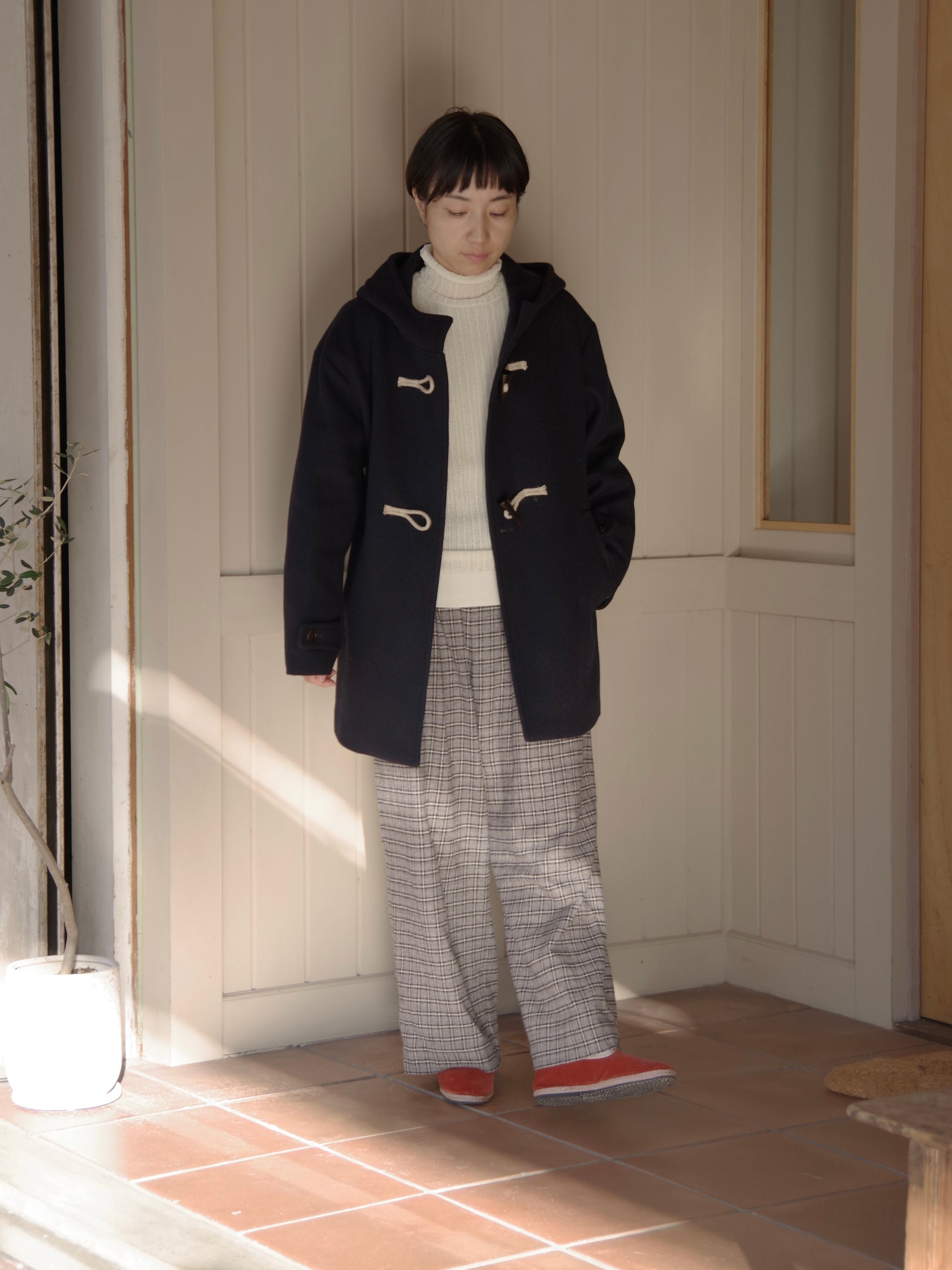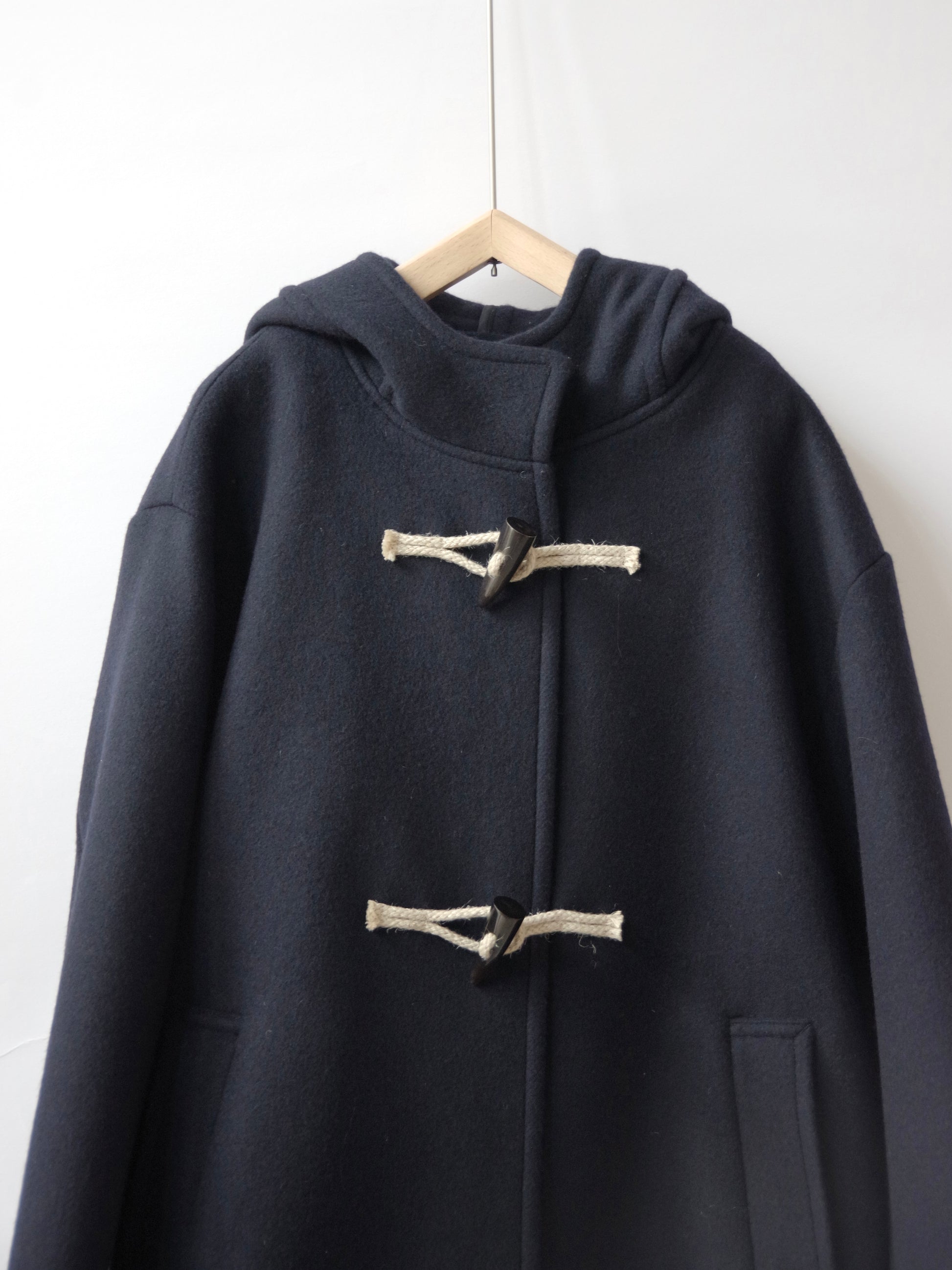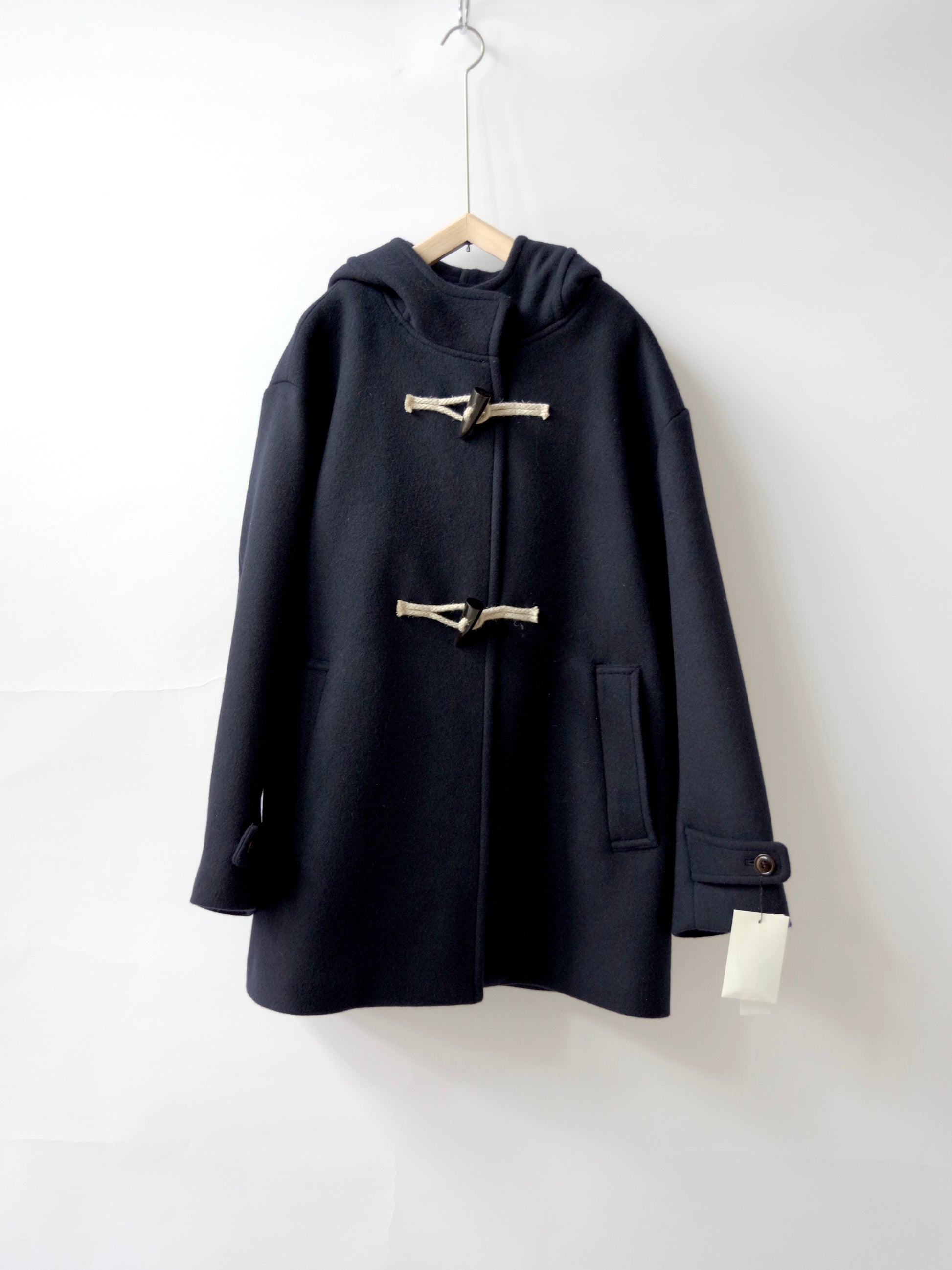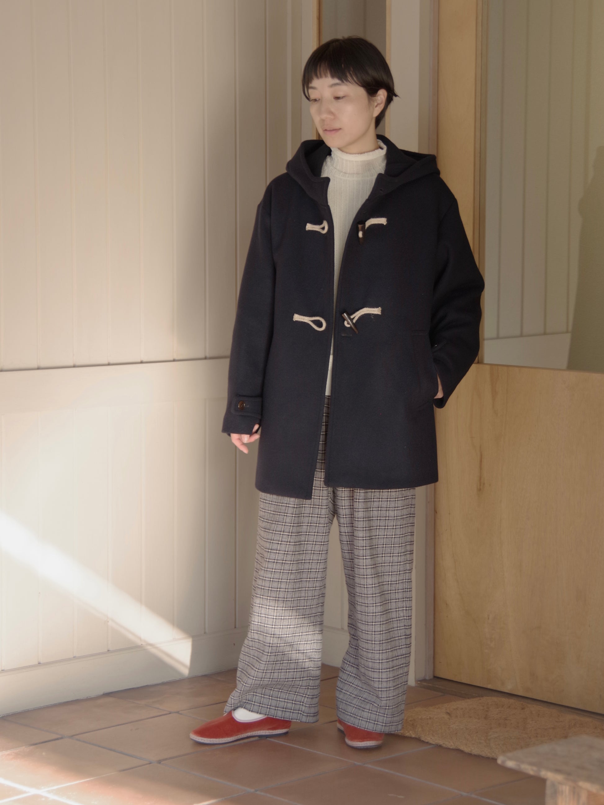 ベーシックな形ですが、わずかに裾に広がるAラインシルエットや、2つのトグルボタンのバランス、ミドル丈など着やすくあたたかく着れてバランスの良いデザインが素敵なコートです。
