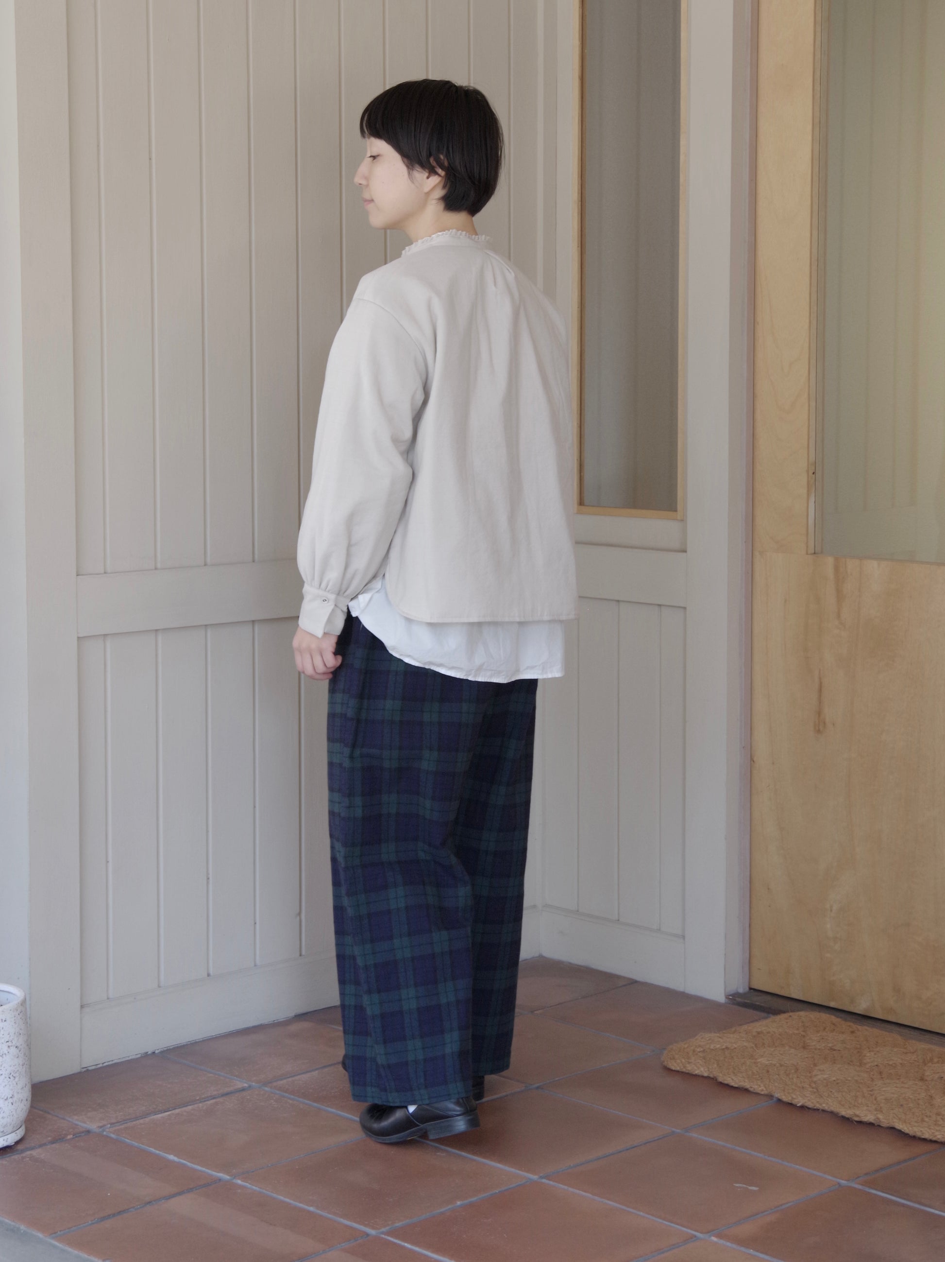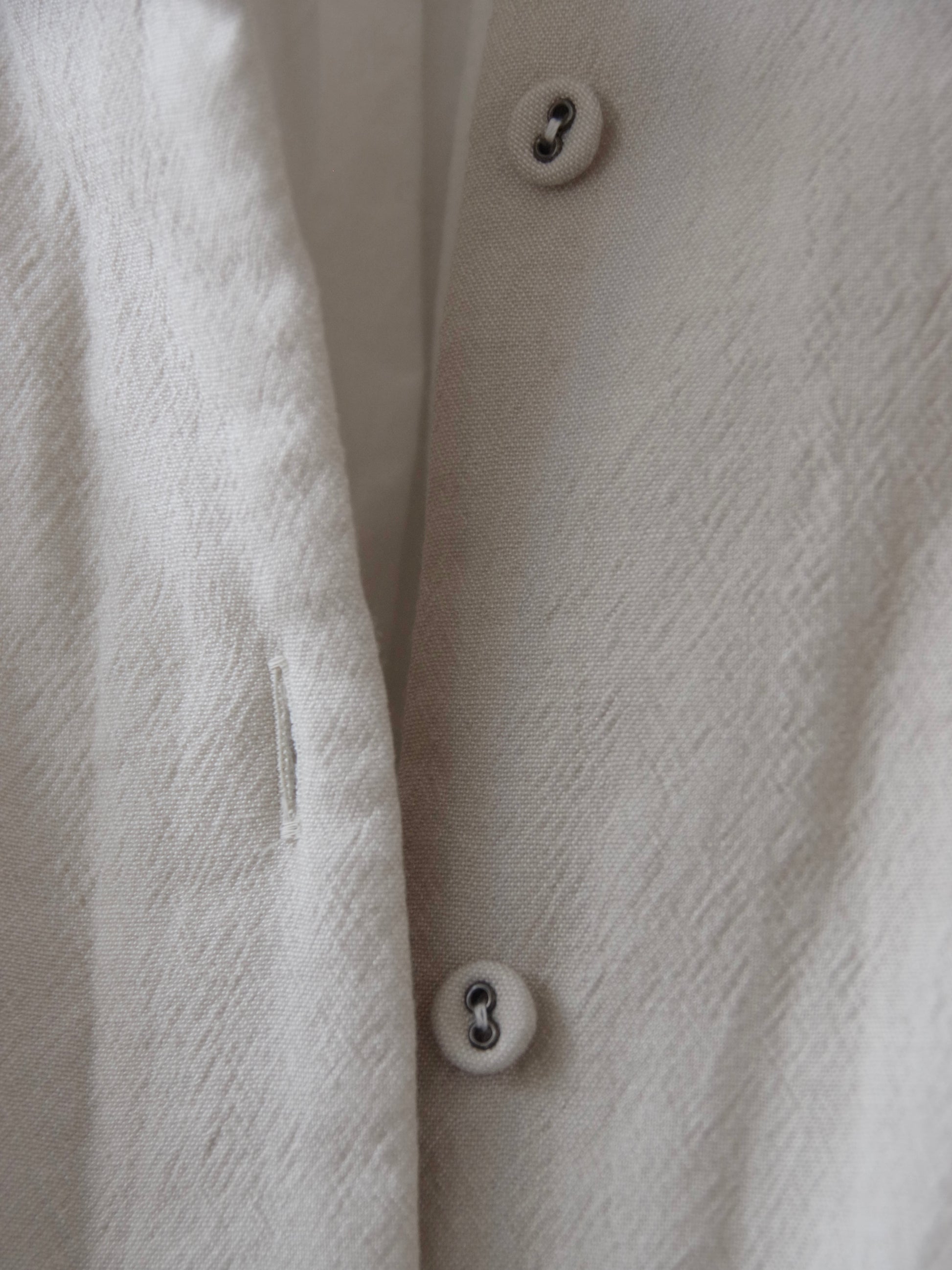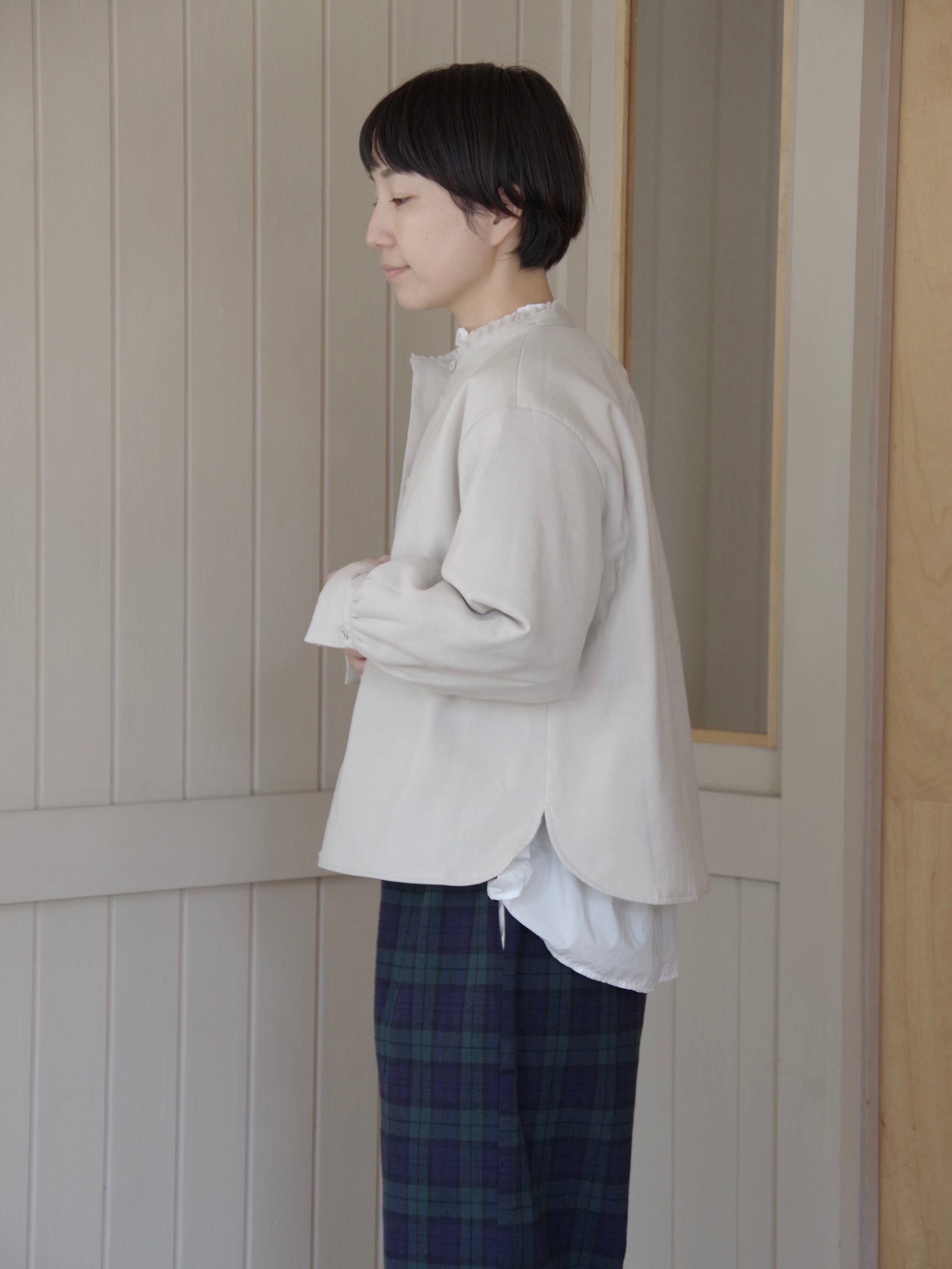シャツのような軽やかな見た目、Gauzeらしい小さなフリルにクルミボタンなど細かな部分にこだわりの詰まったジャケットです。