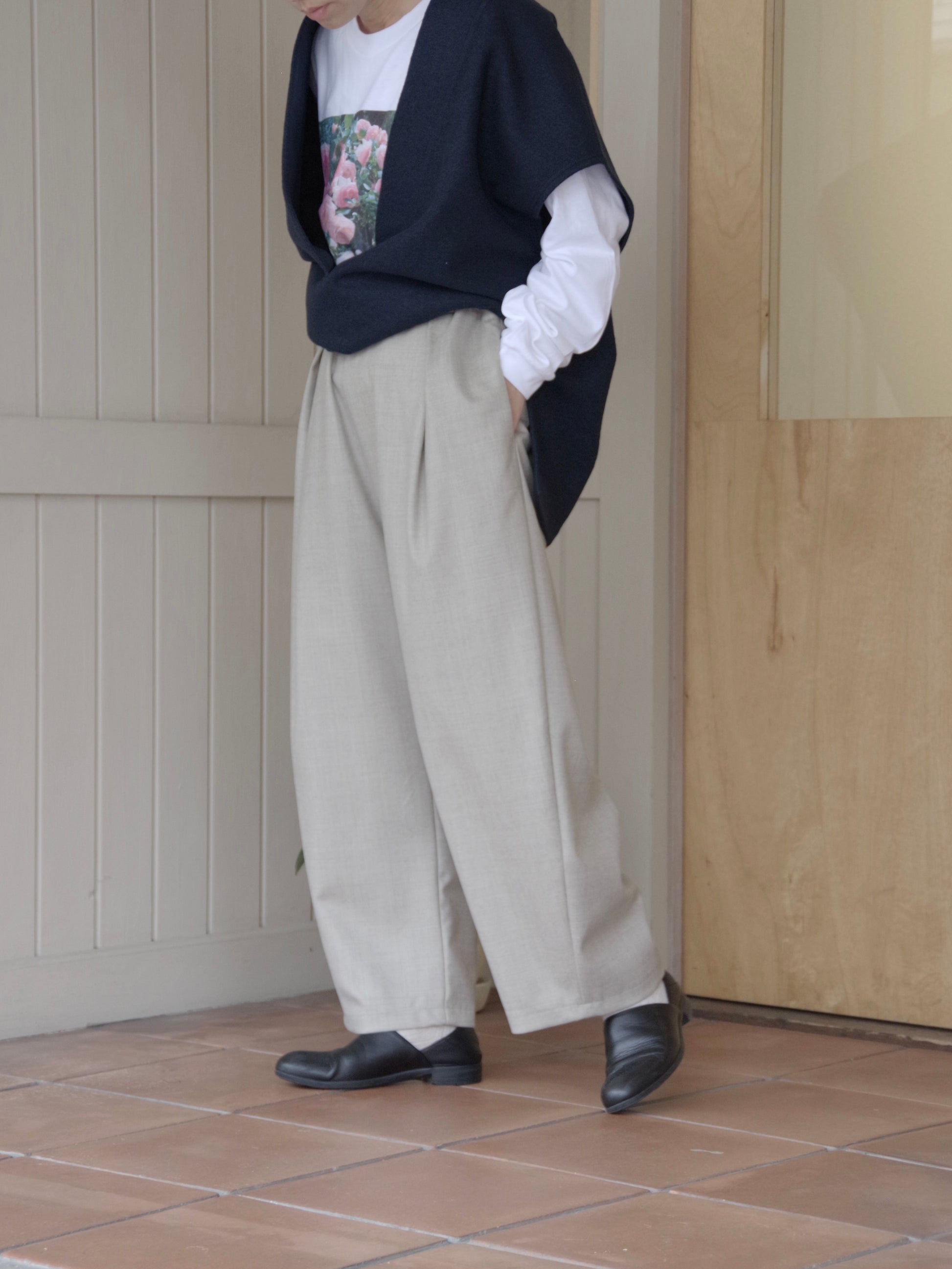 尾州の産地で織り上げた、ウールサキソニー素材のイージーパンツ。