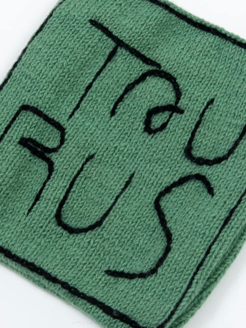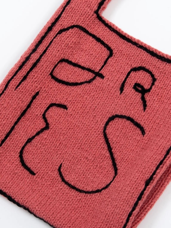 星座の文字をひとつひとつ手刺繍で施した手編みのニットバッグ。